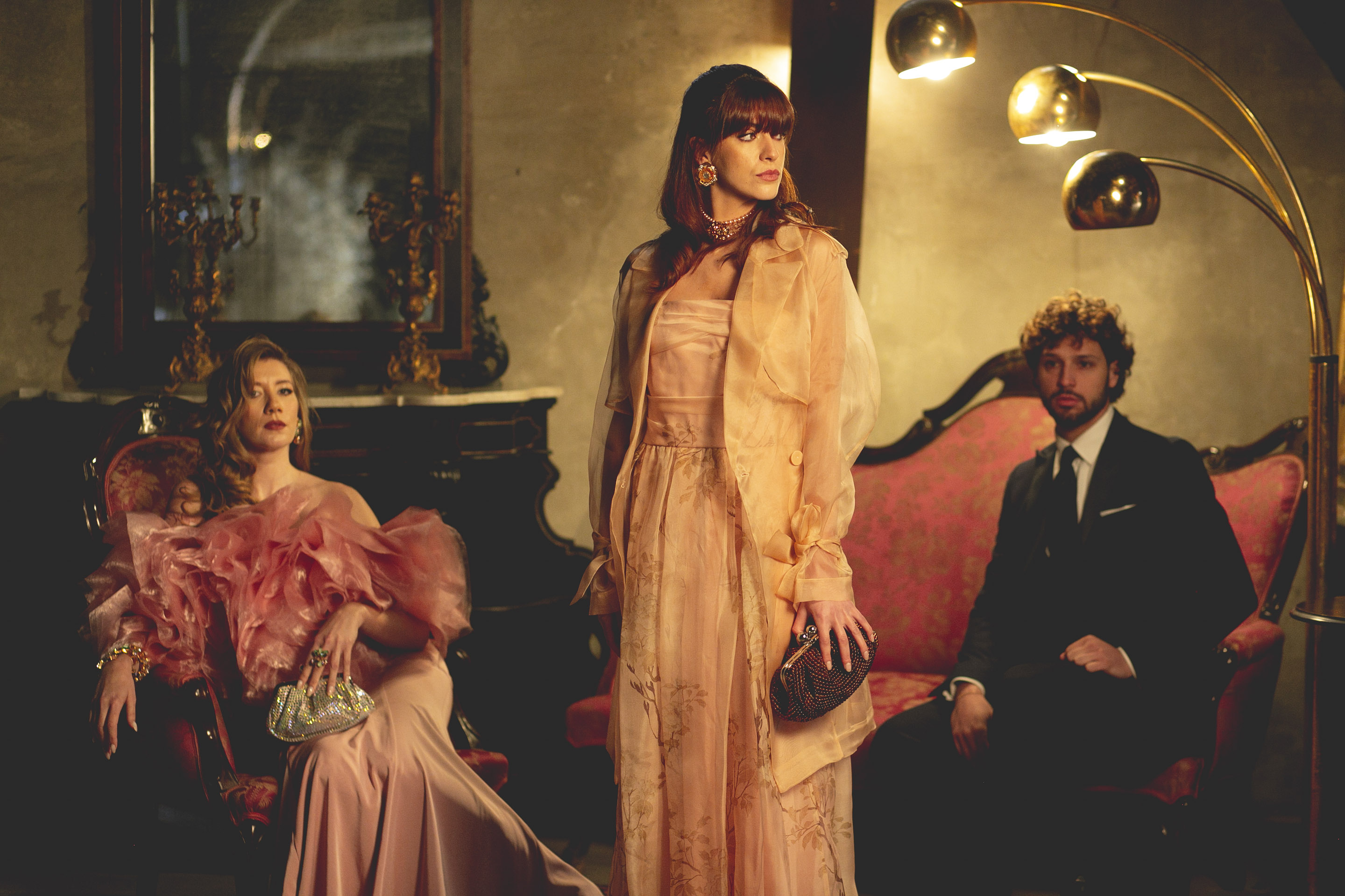 Borsa a spalla Trinity Peach Small in suede e cuoio Biscotto