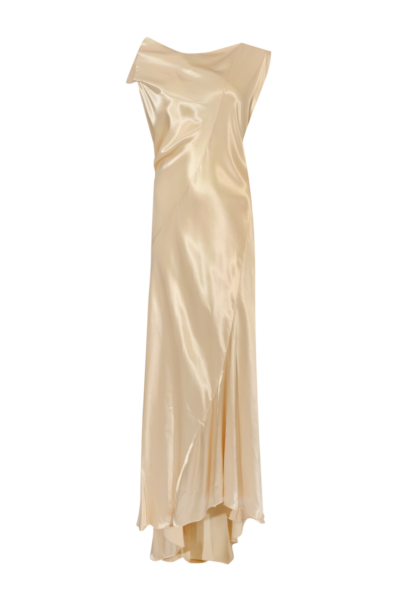 Abito lungo in raso con scollo drappeggiato, Alberta Ferretti