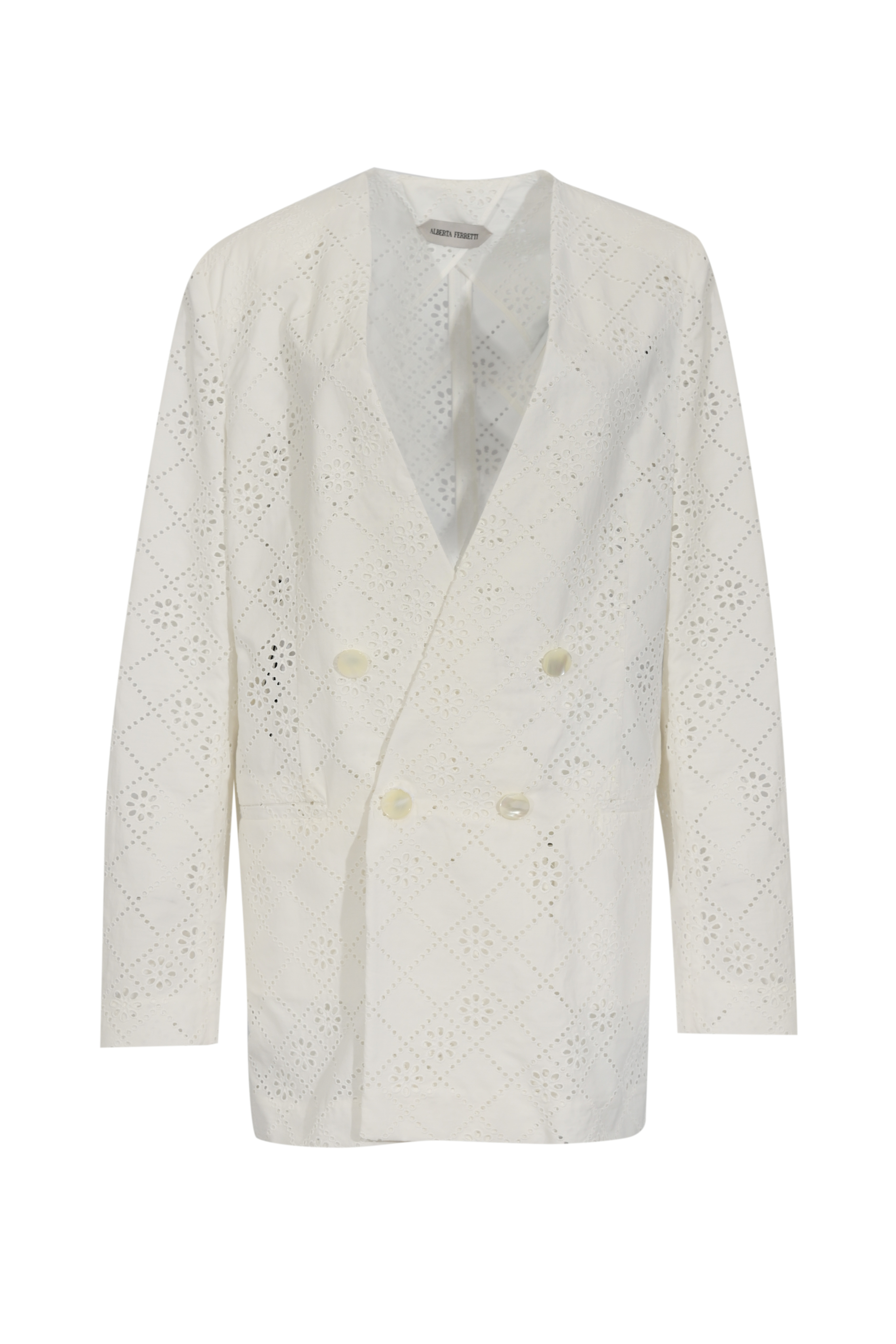 Blazer da donna in pizzo Sangallo di misto cotone, Alberta Ferretti, modello doppiopetto