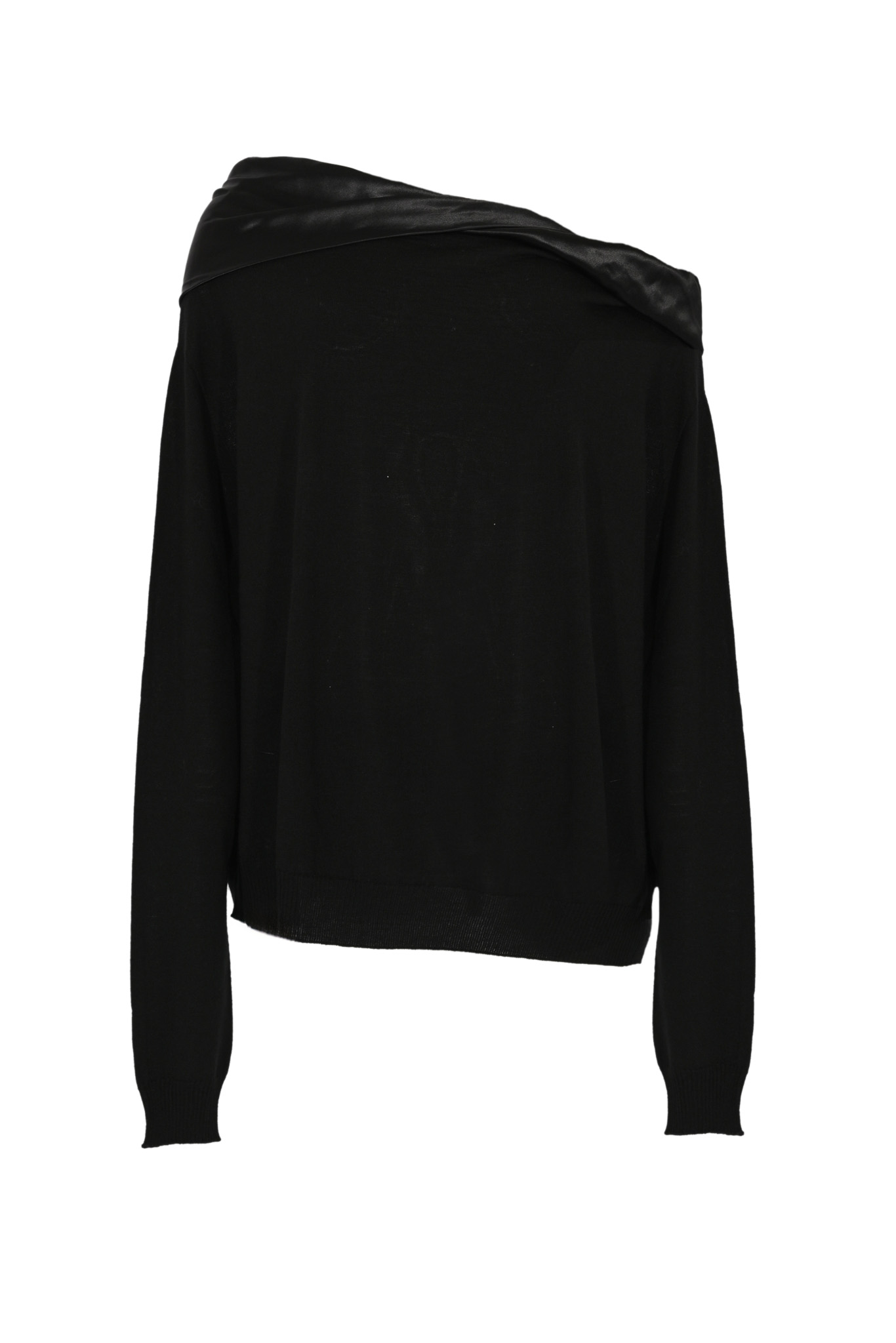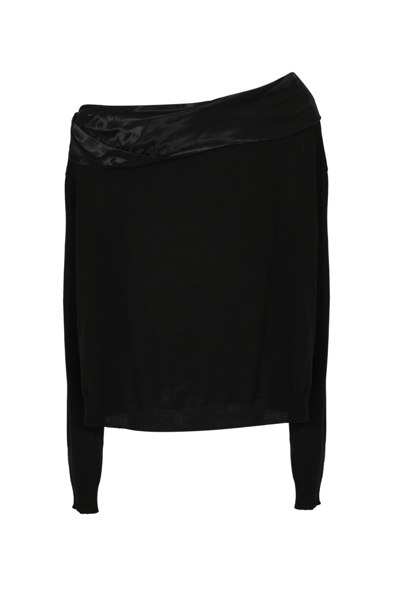 Maglione in lana con scollo in satin, Alberta Ferretti