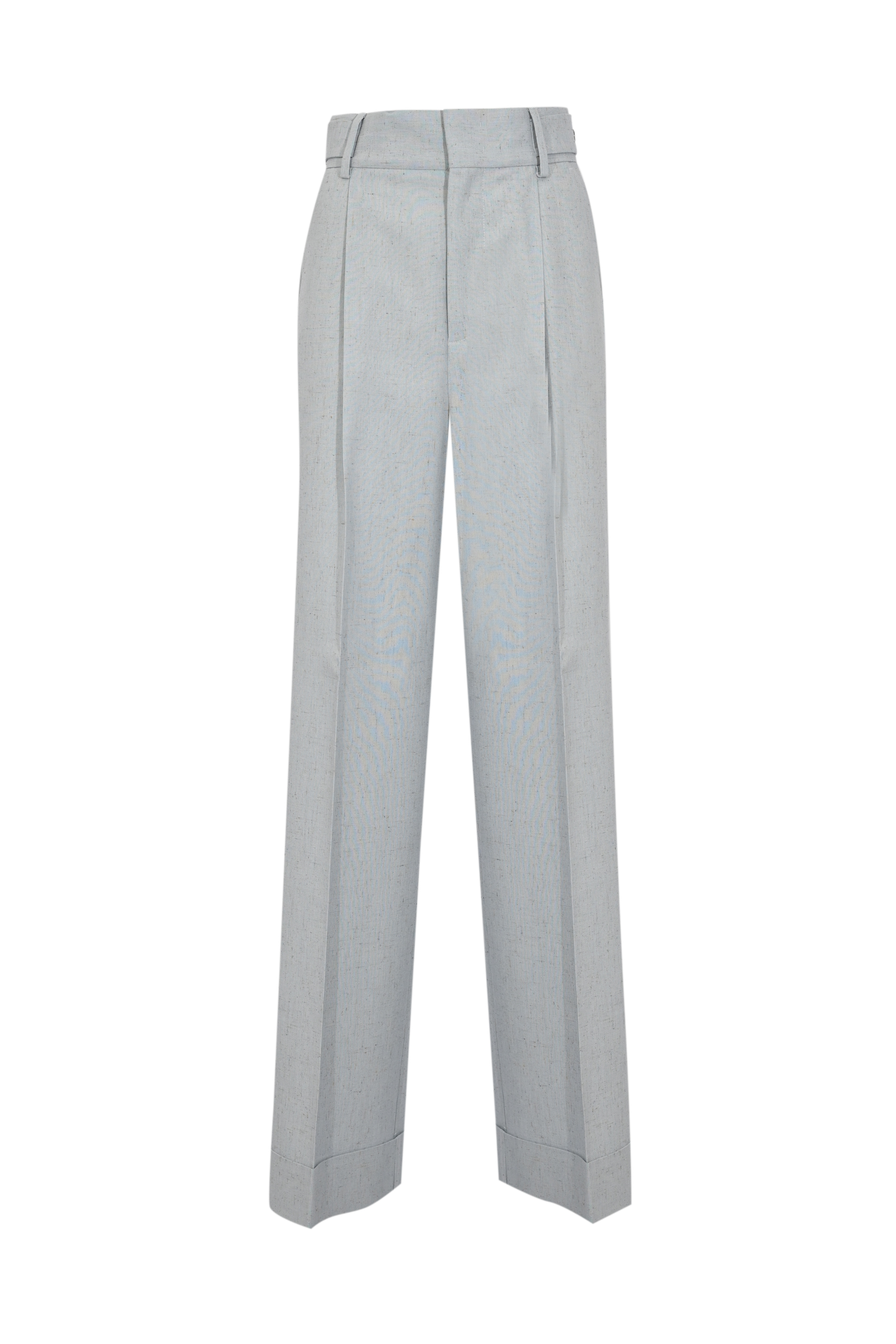 - Dettagli: pince frontali, risvolto al fondo, cuciture sartoriali