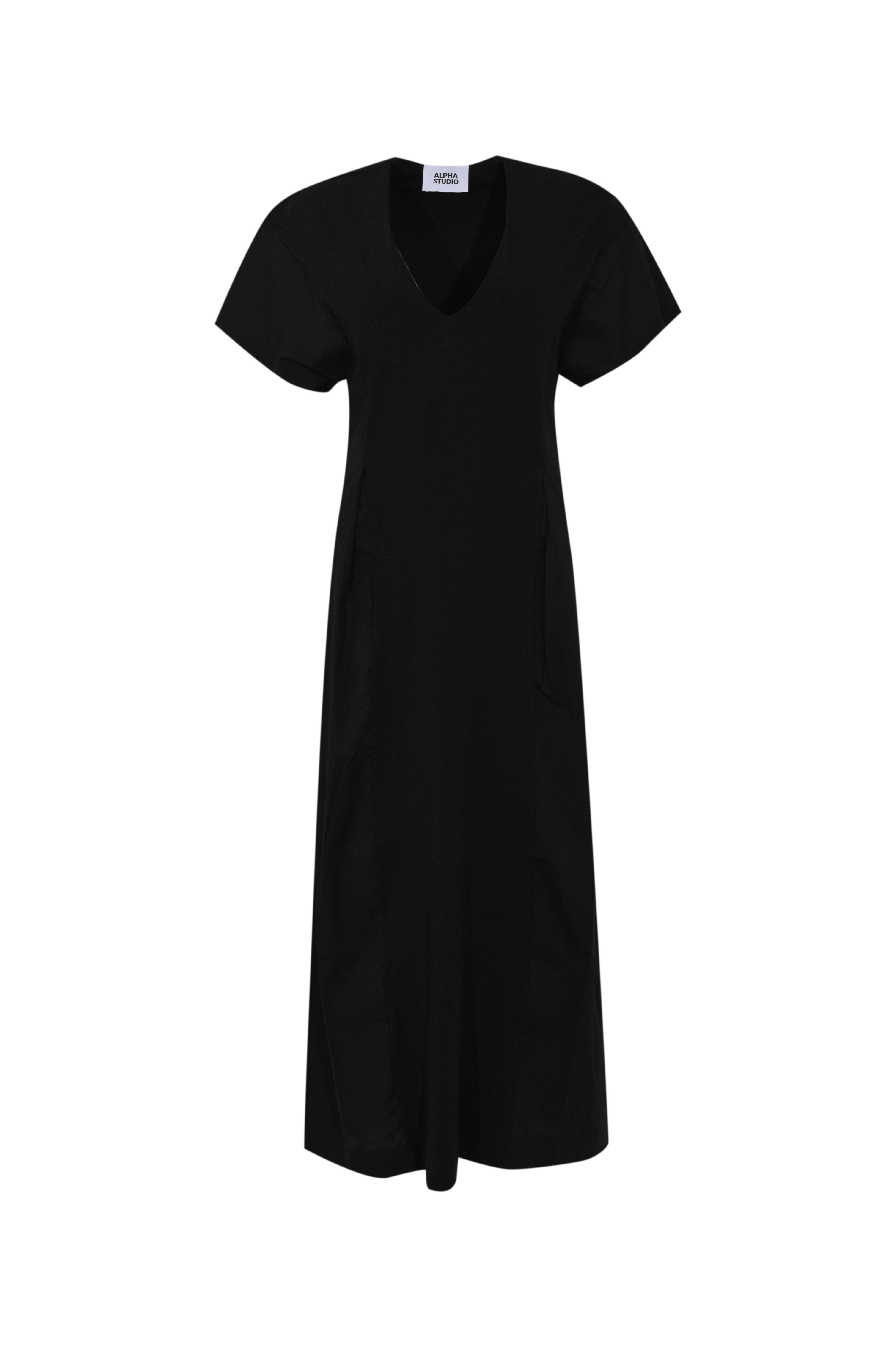 Abito midi New Shapes in cotone stretch con inserti in popeline Nero