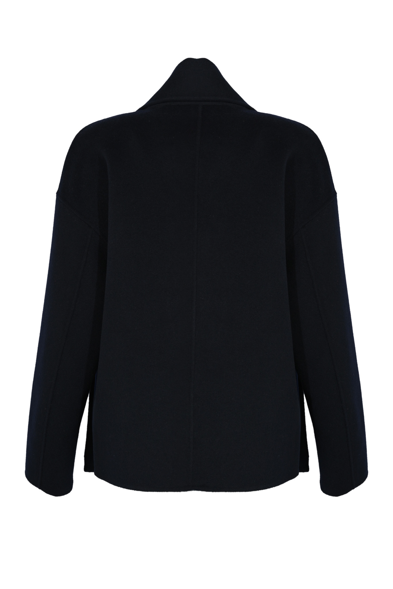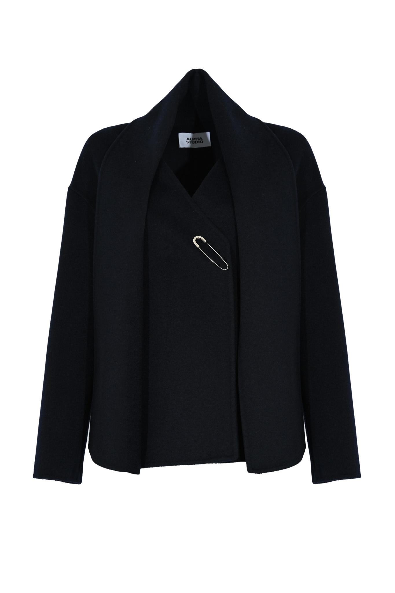 - Collo: Ampio collo a sciarpa che avvolge il décolleté