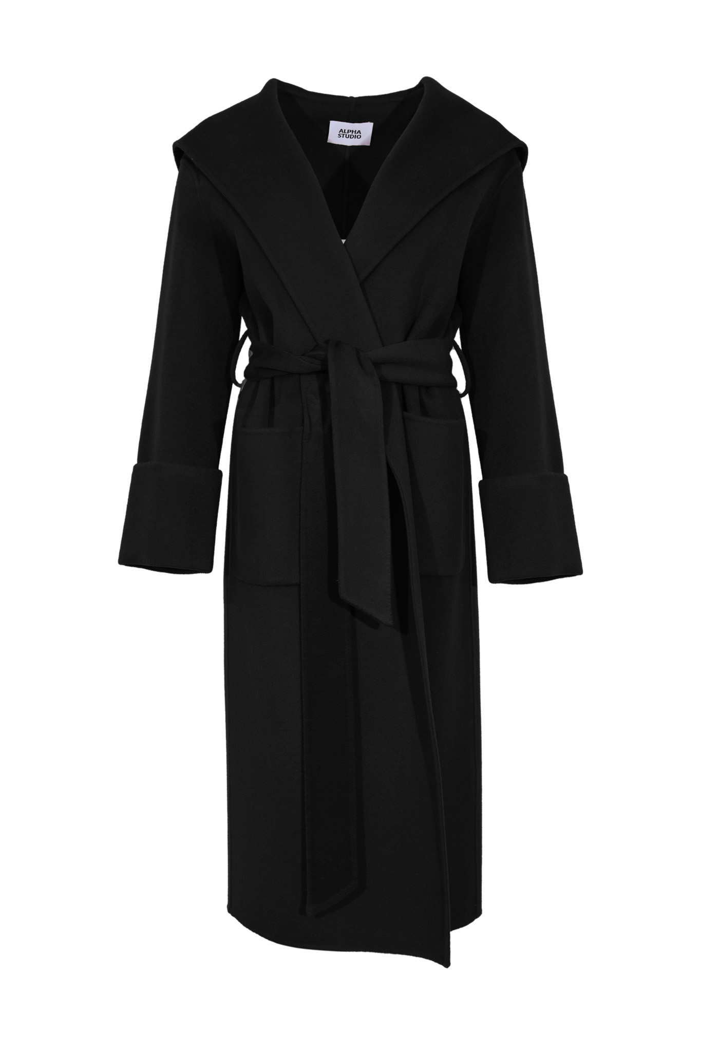 Cappotto lungo da donna in double di lana con cappuccio Alpha Studio