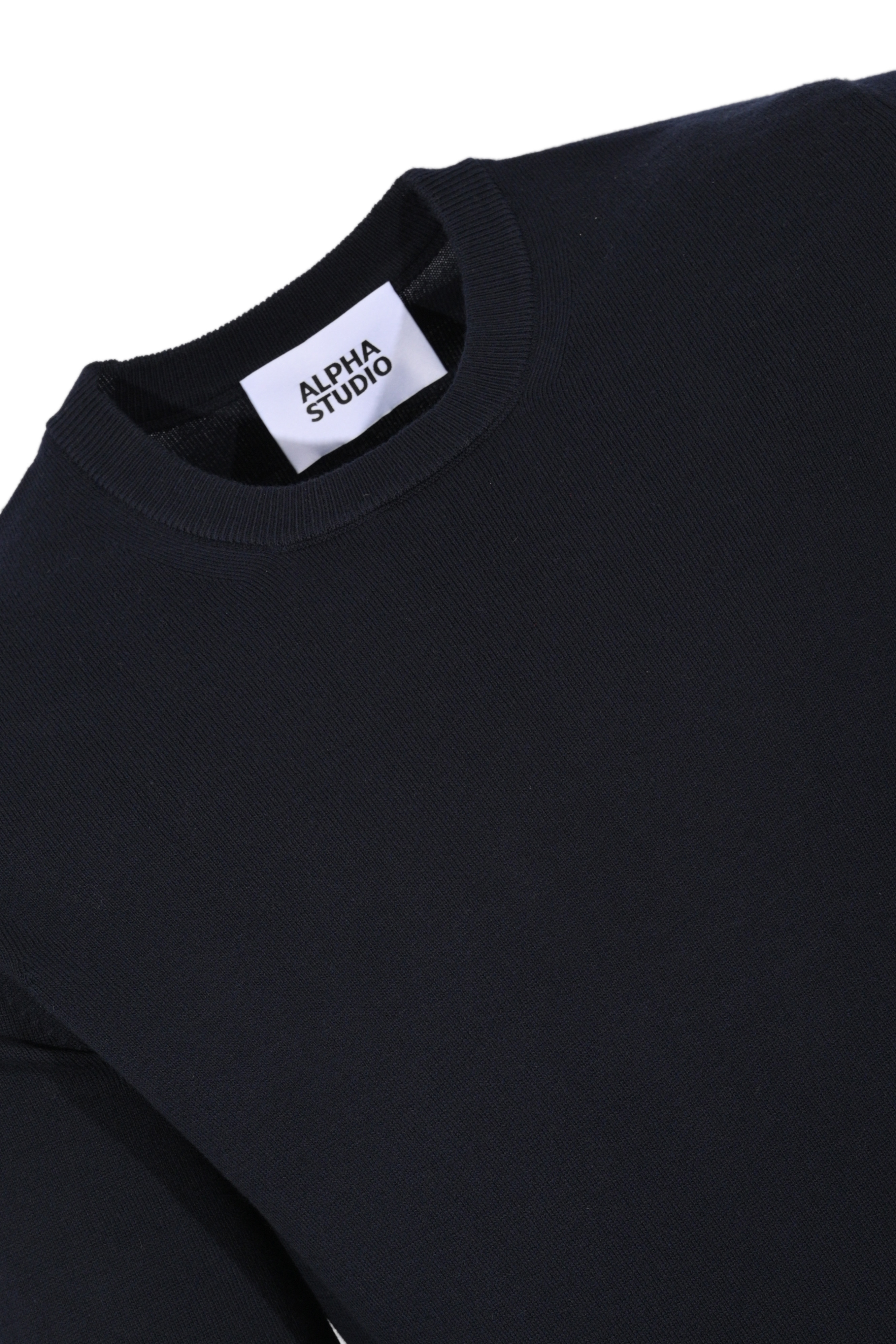 - Dettagli: lavorazione a maglia rasata, bordi a coste su collo, fondo e polsini, etichetta interna con logo