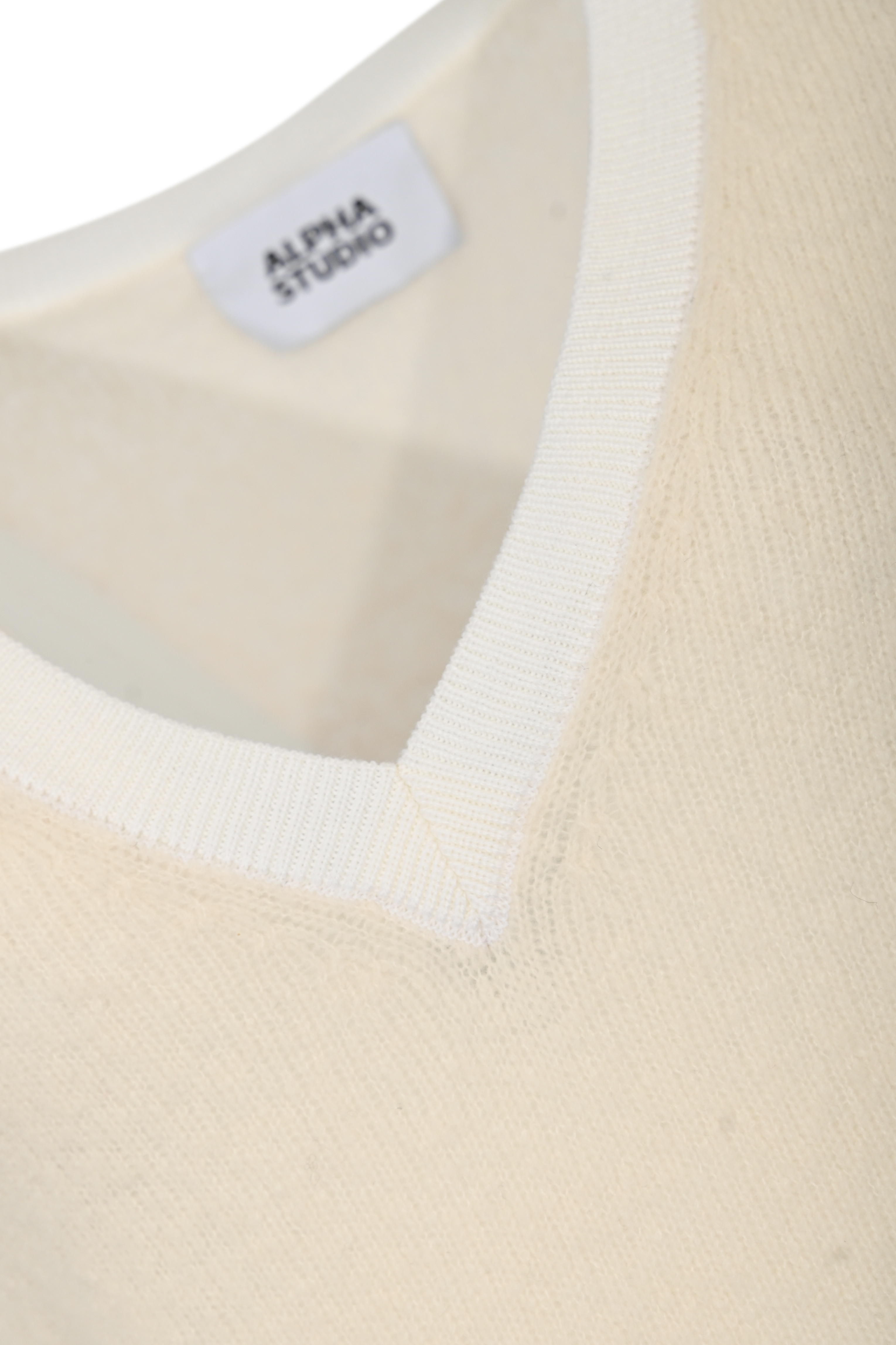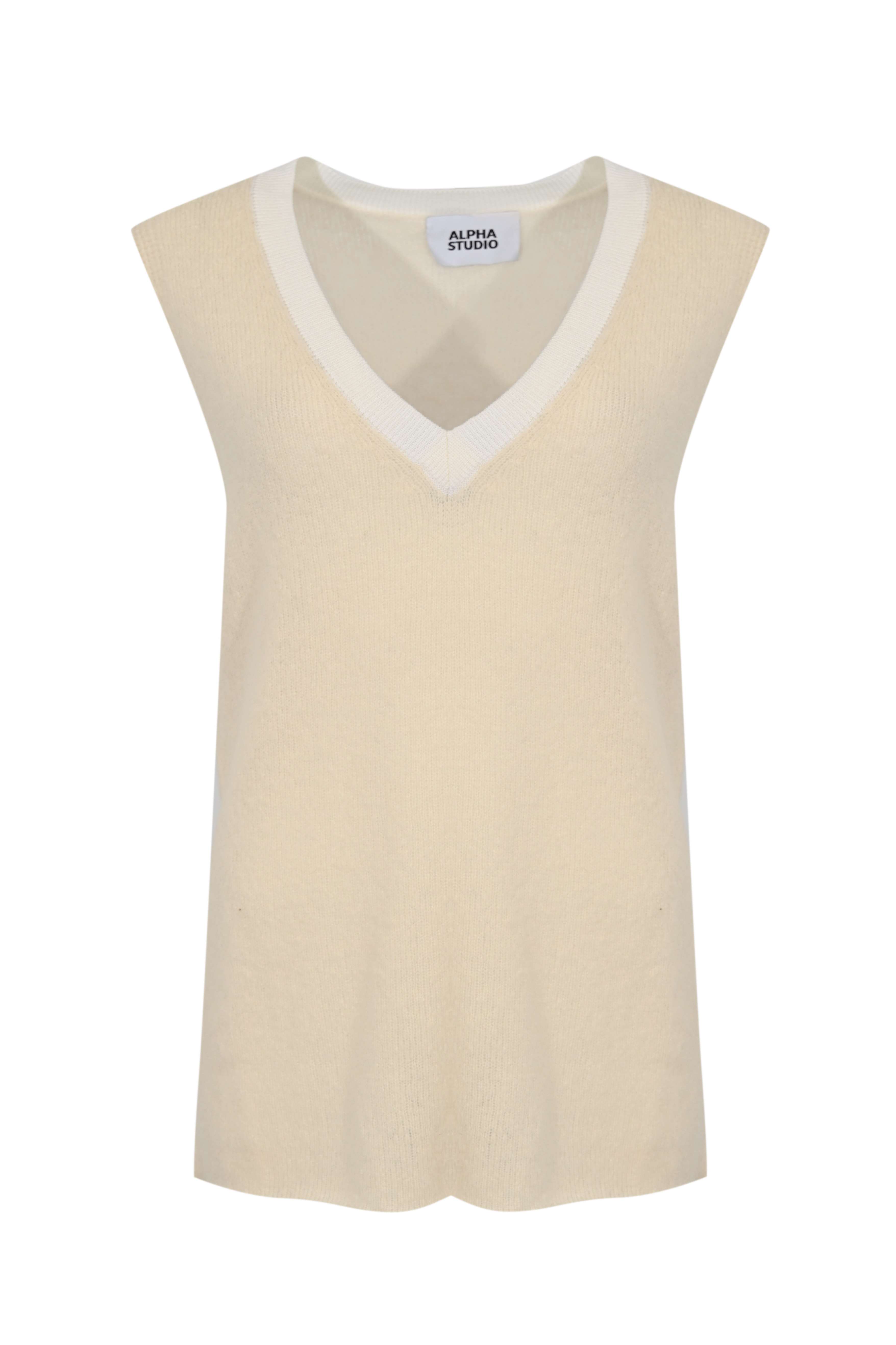 Maglia smanicata da donna in misto lana con effetto punzonato, Alpha Studio