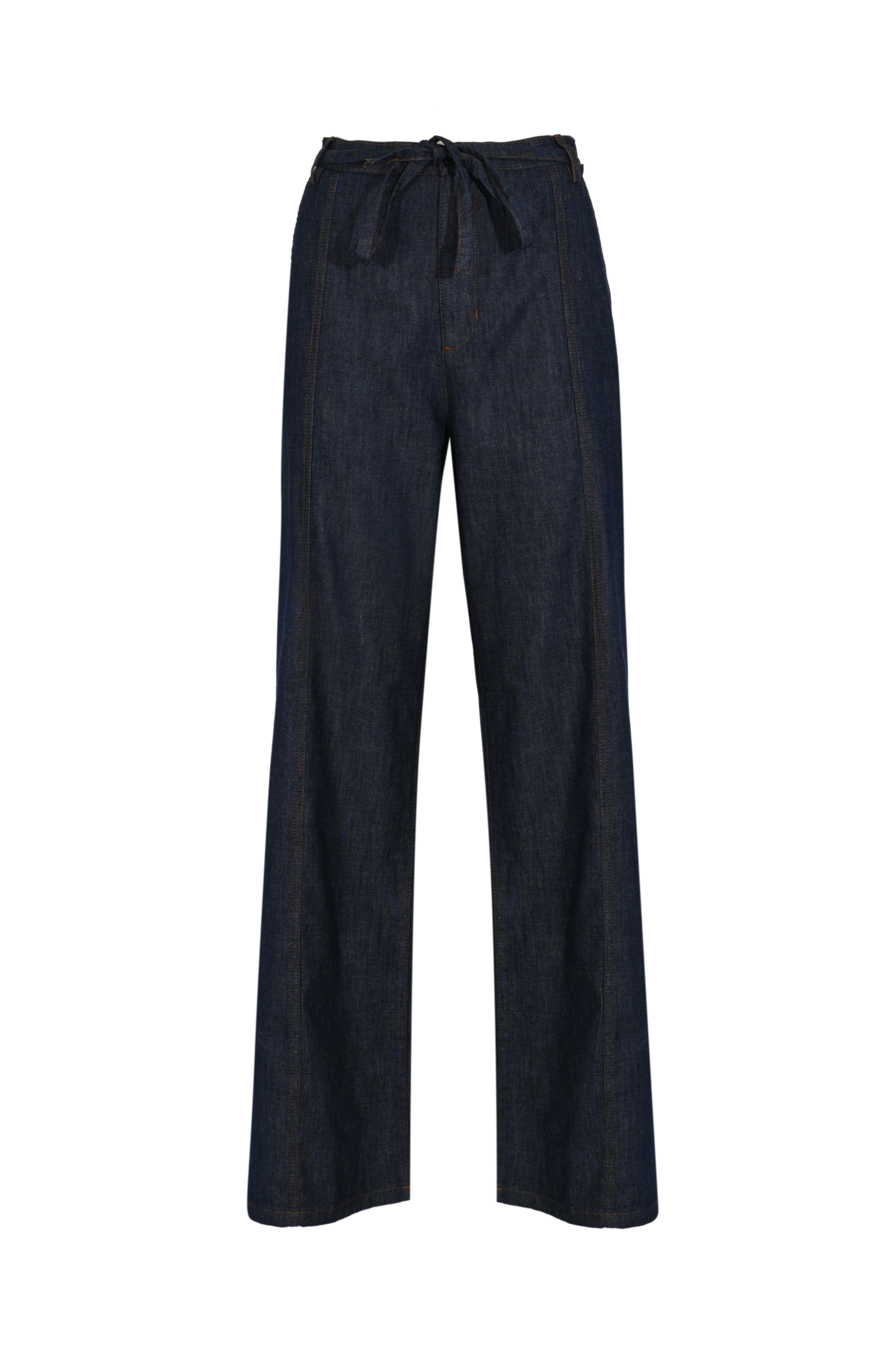 Pantalone flare in cotone chambray