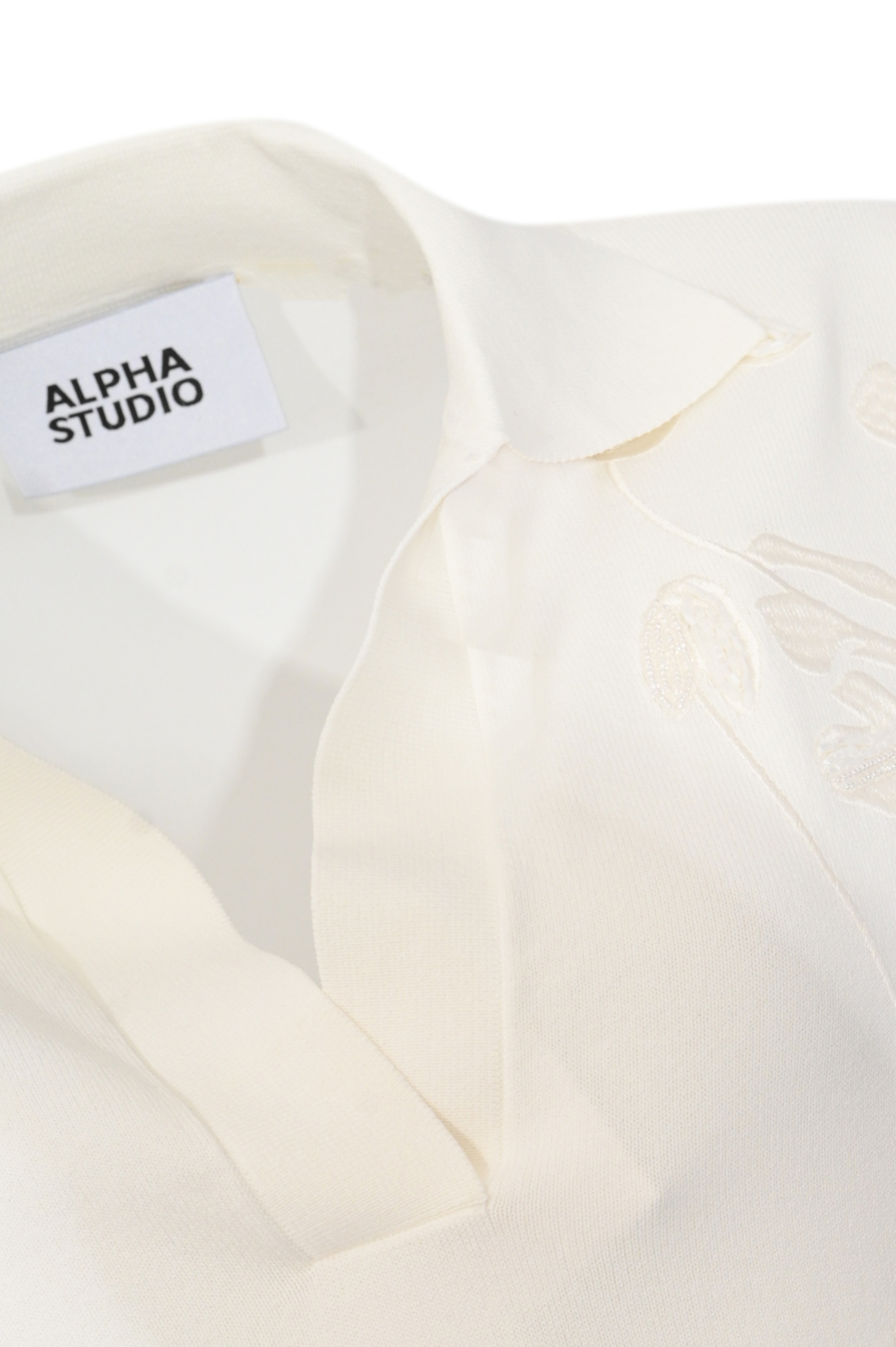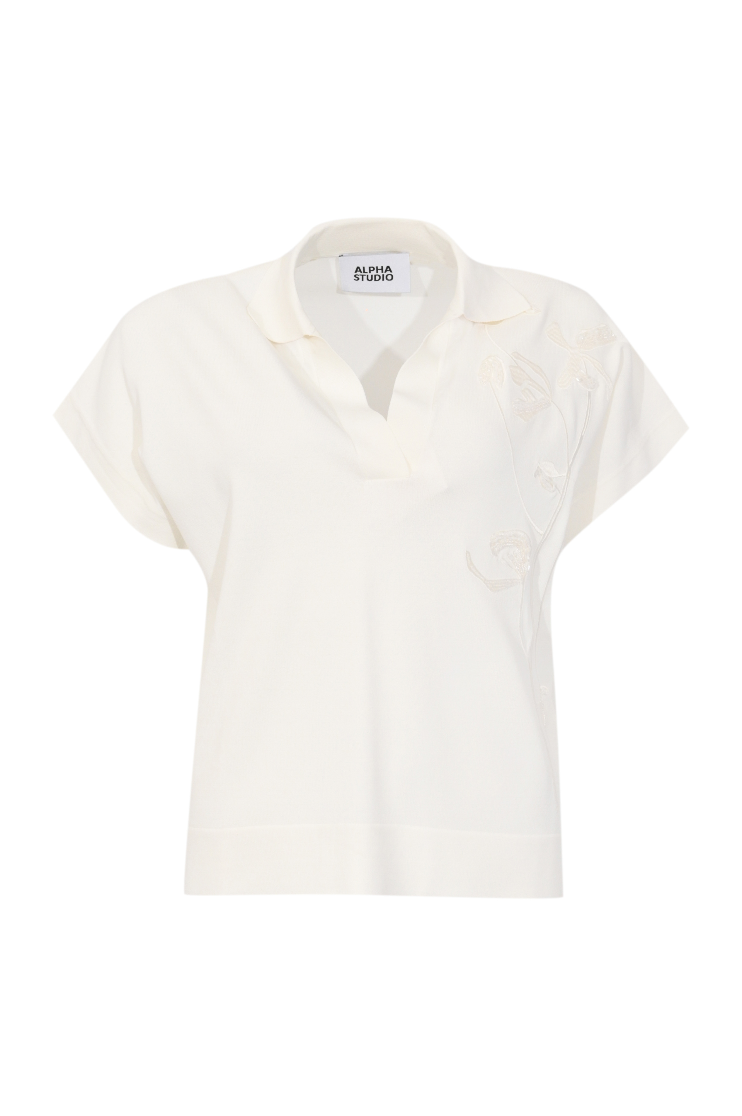 Polo manica kimono in viscosa con ricamo Latte