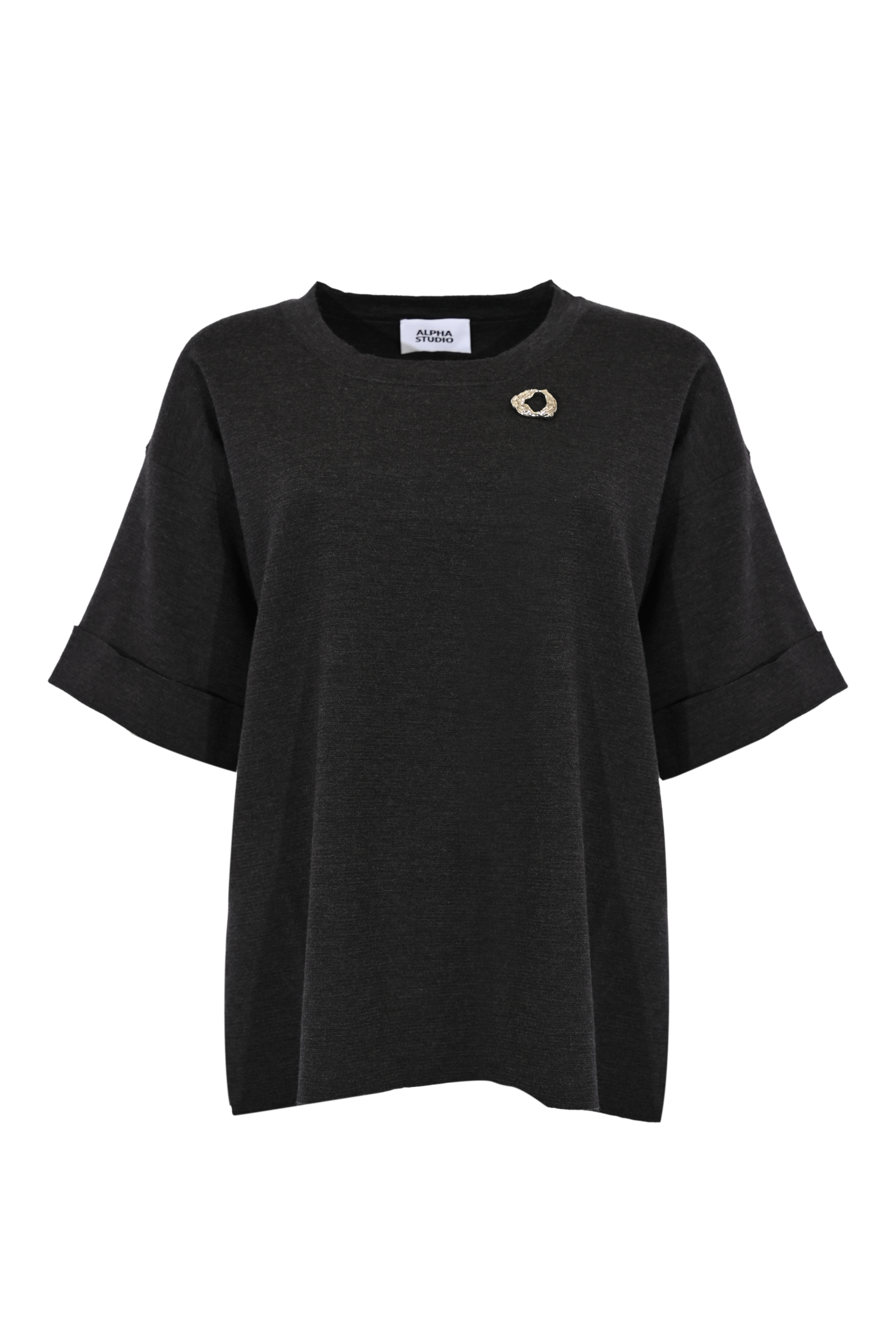 T-shirt da donna in punto stoffa di lana, Alpha Studio, modello con dettaglio gioiello