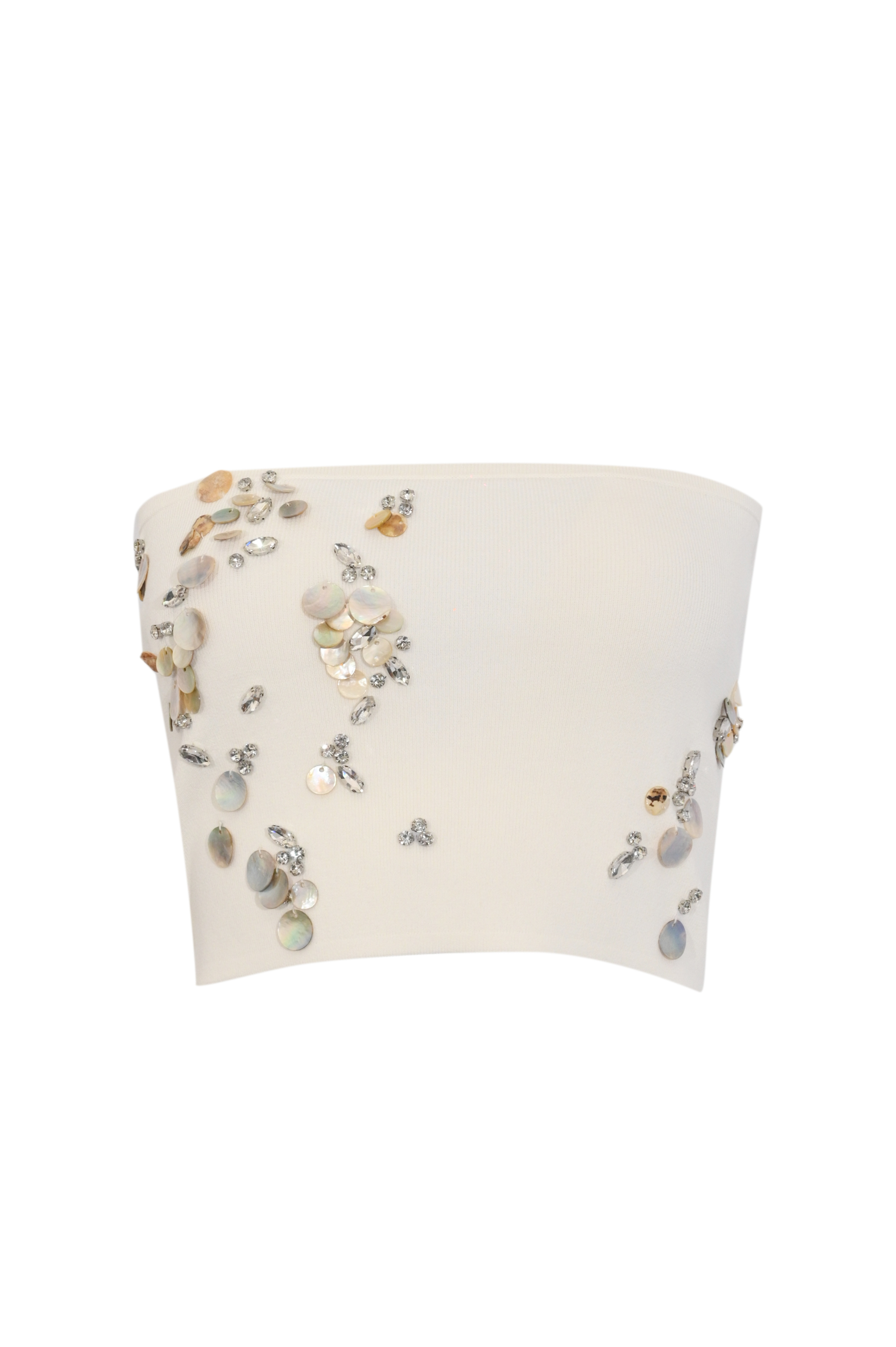 Top a fascia in viscosa con ricamo strass
