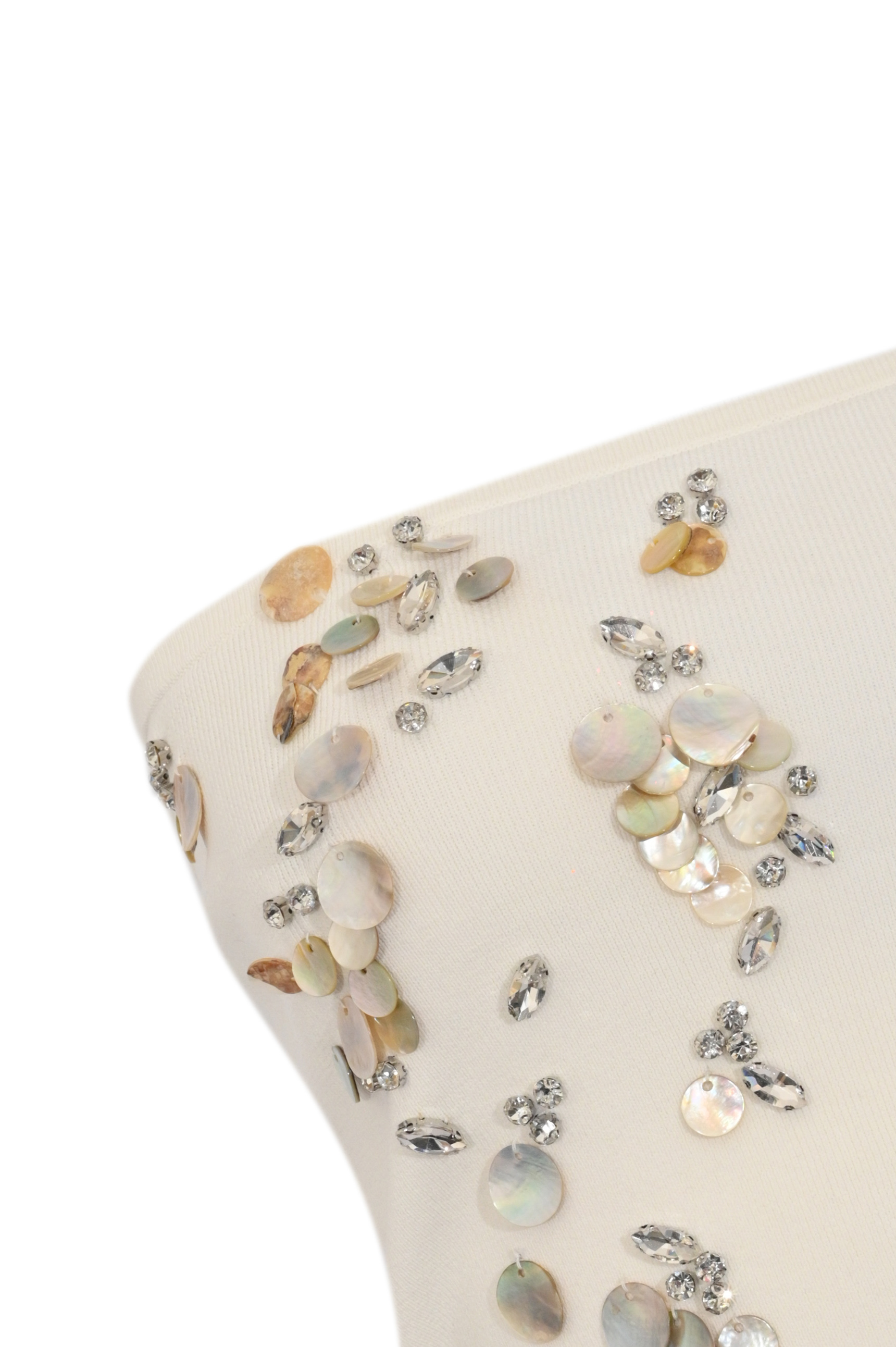 - Dettagli: applicazioni di strass e paillettes con effetto gioiello, lavorazione aderente