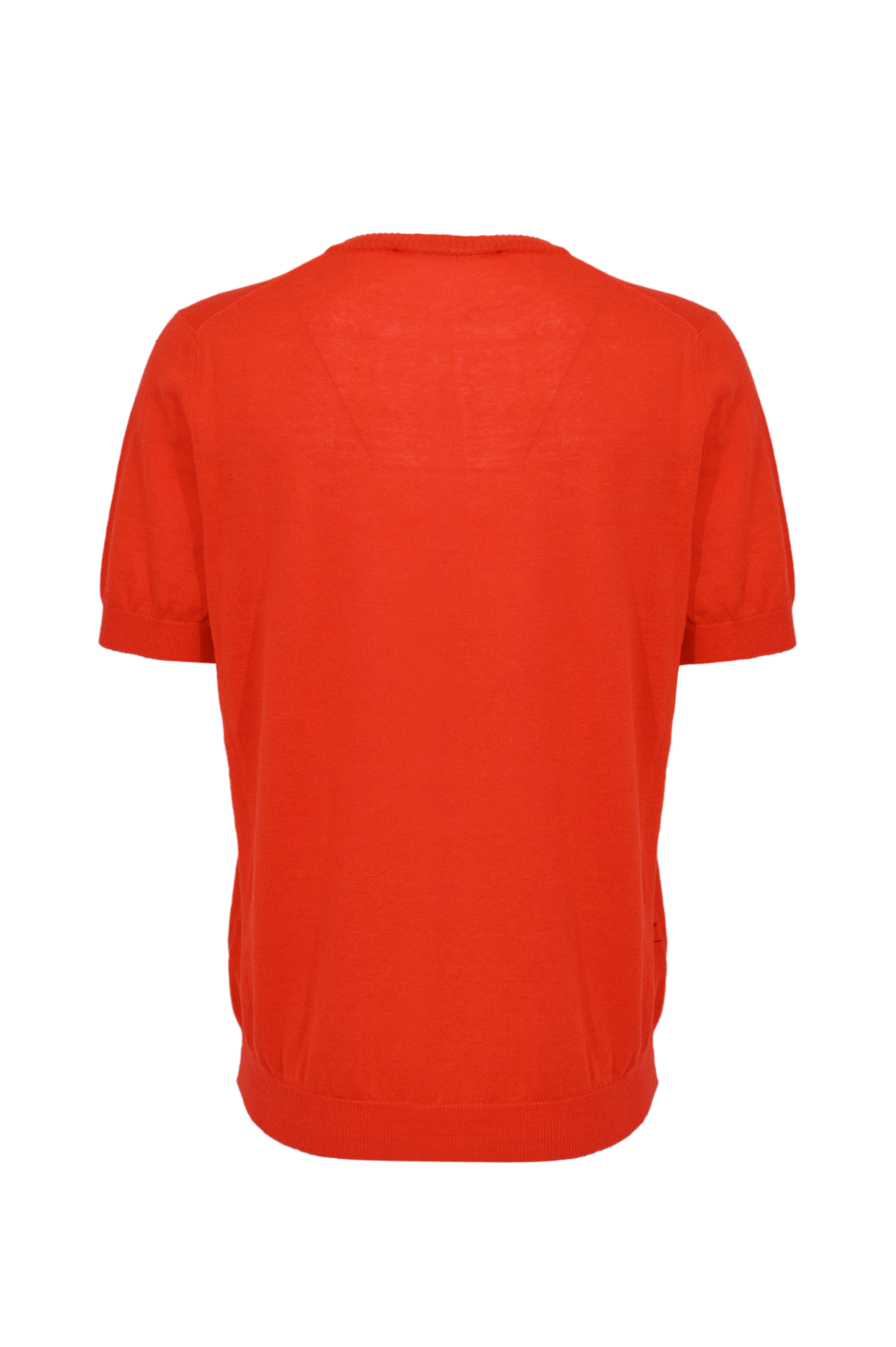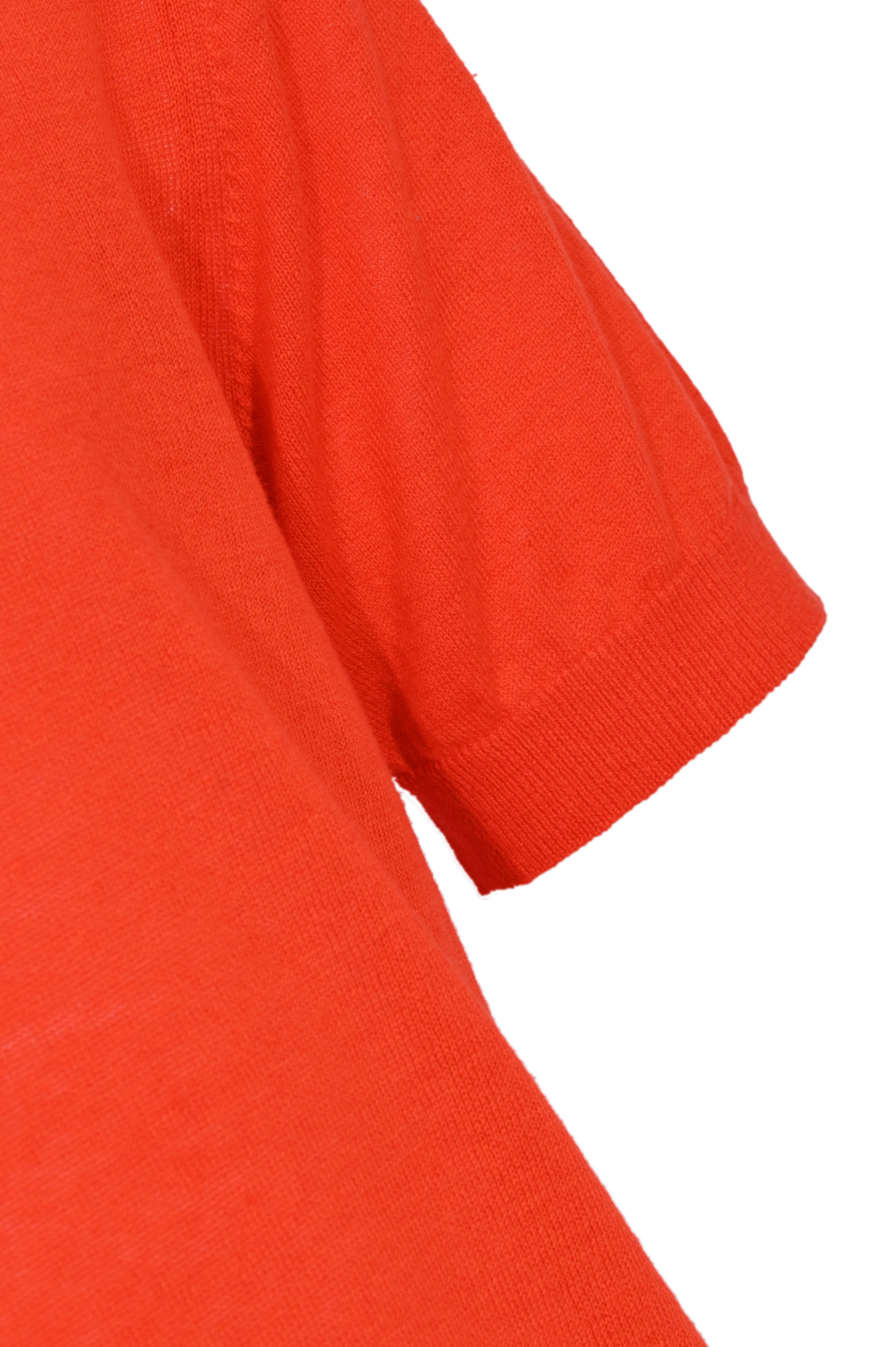 - Dettagli: lavorazione a maglia fine, bordi a costine su collo, maniche e fondo, colore corallo