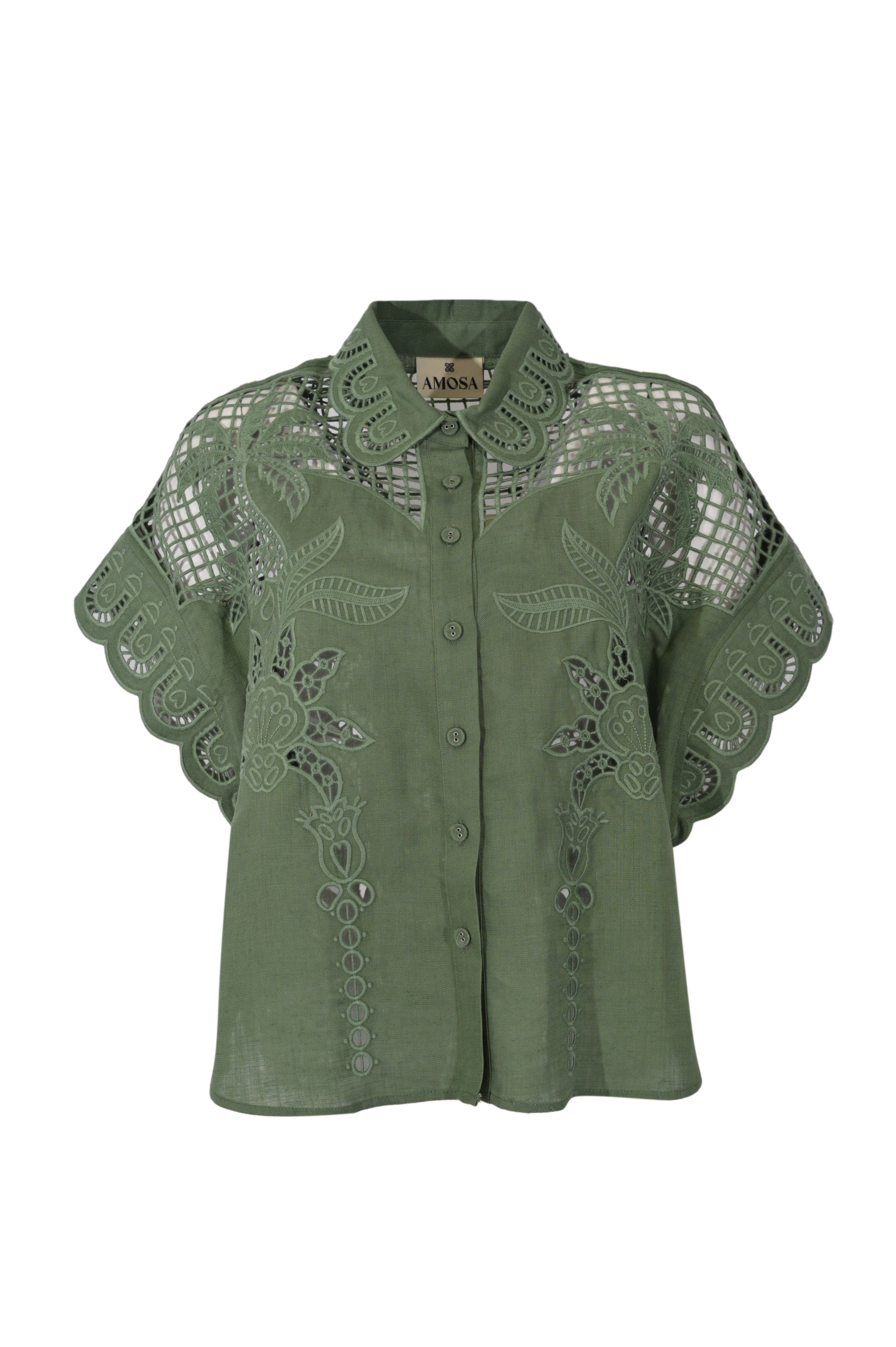 Camicia da donna in pizzo di misto lino e lyocell, Amosa, modello A26SSCA02