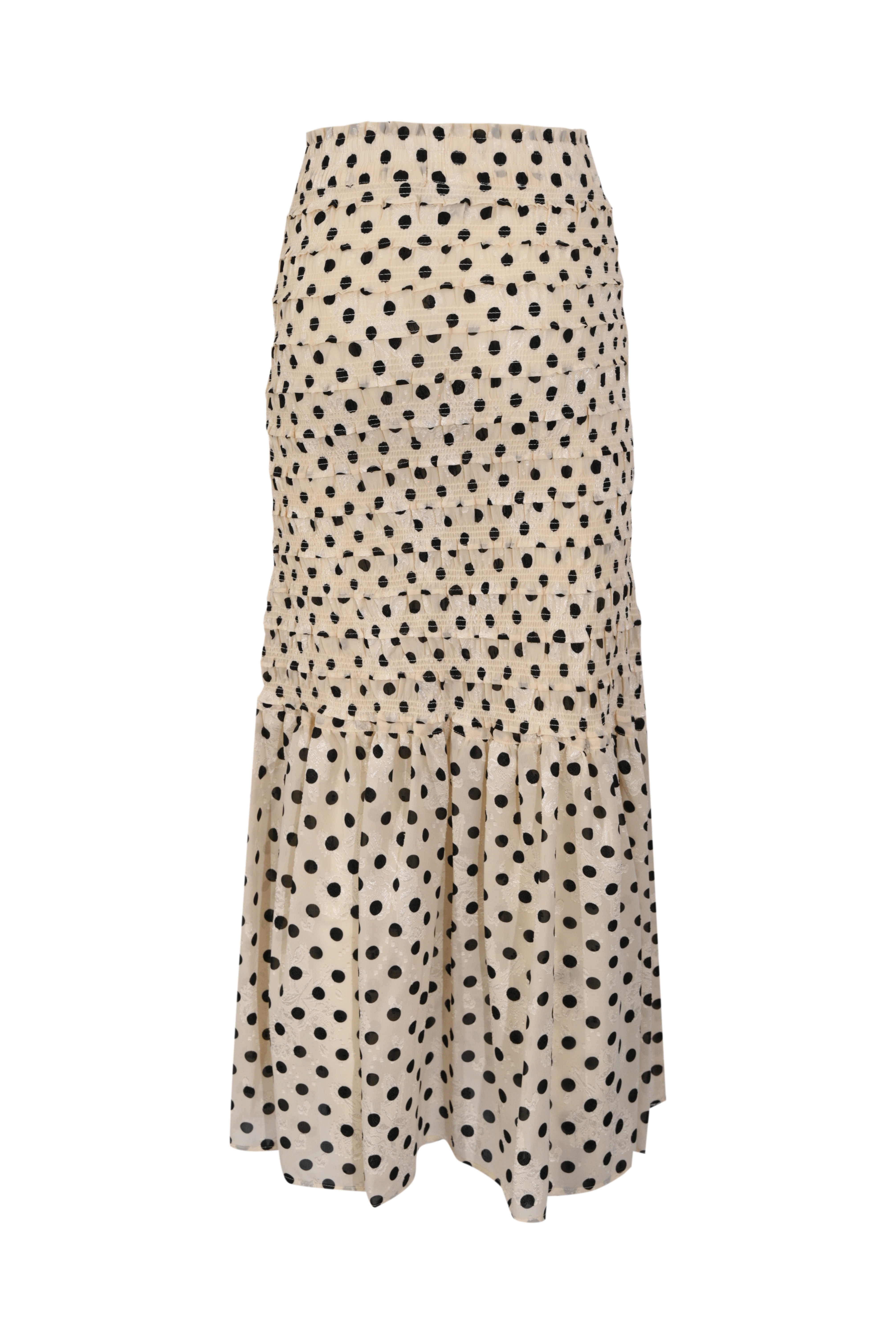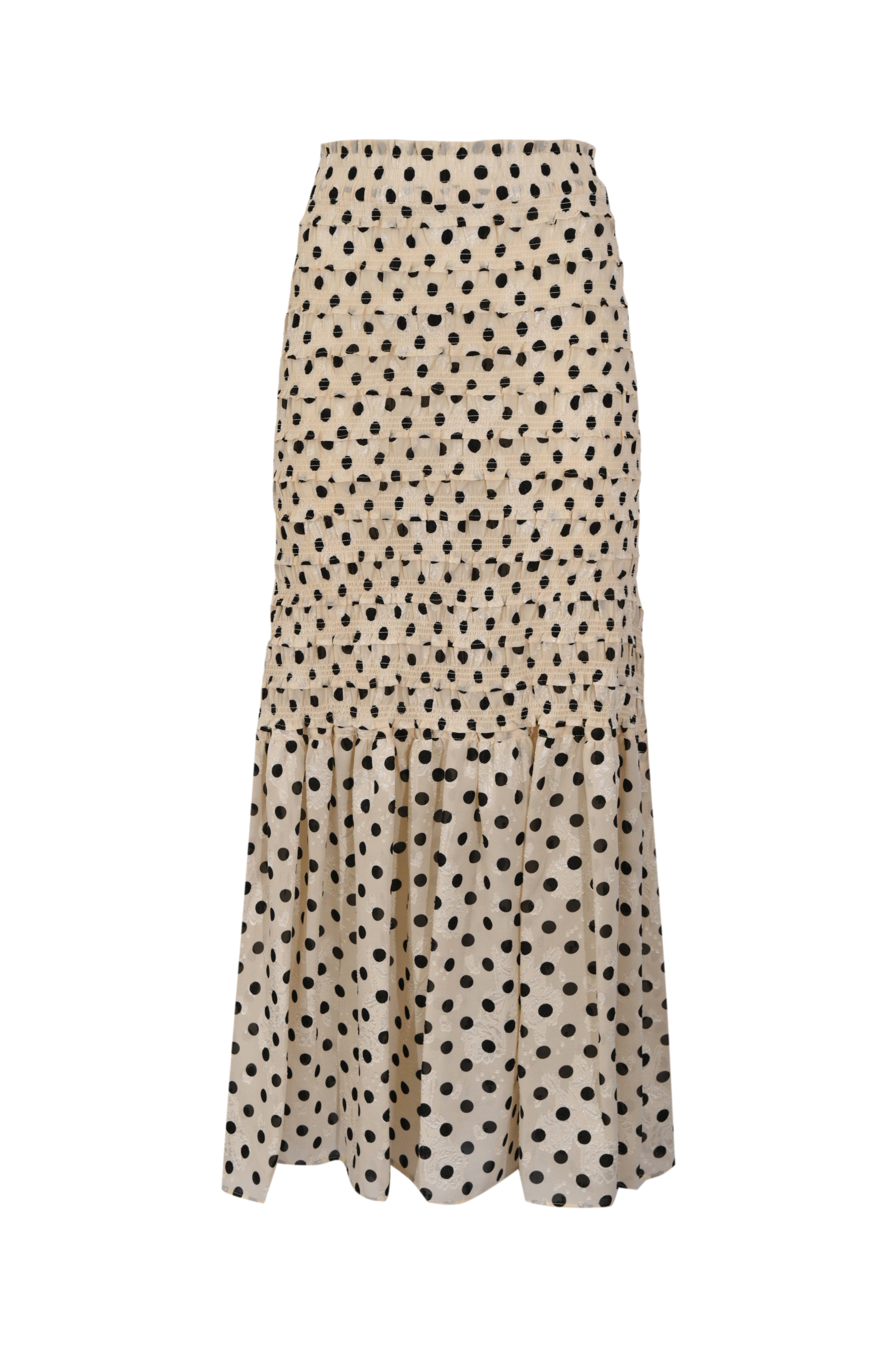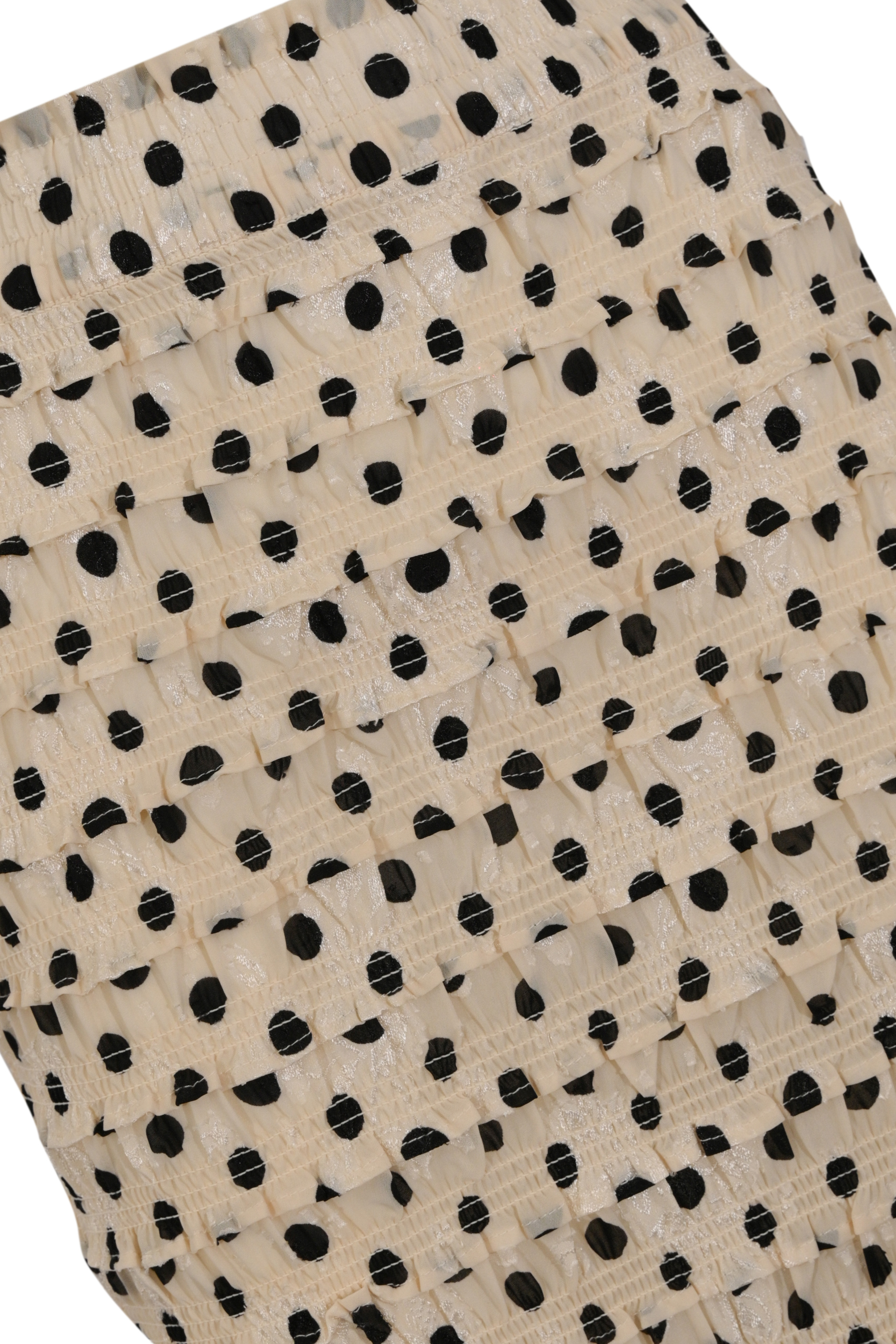 - Dettagli: lavorazione arricciata su tutta la parte superiore, balza ampia sul fondo, effetto mosso e voluminoso