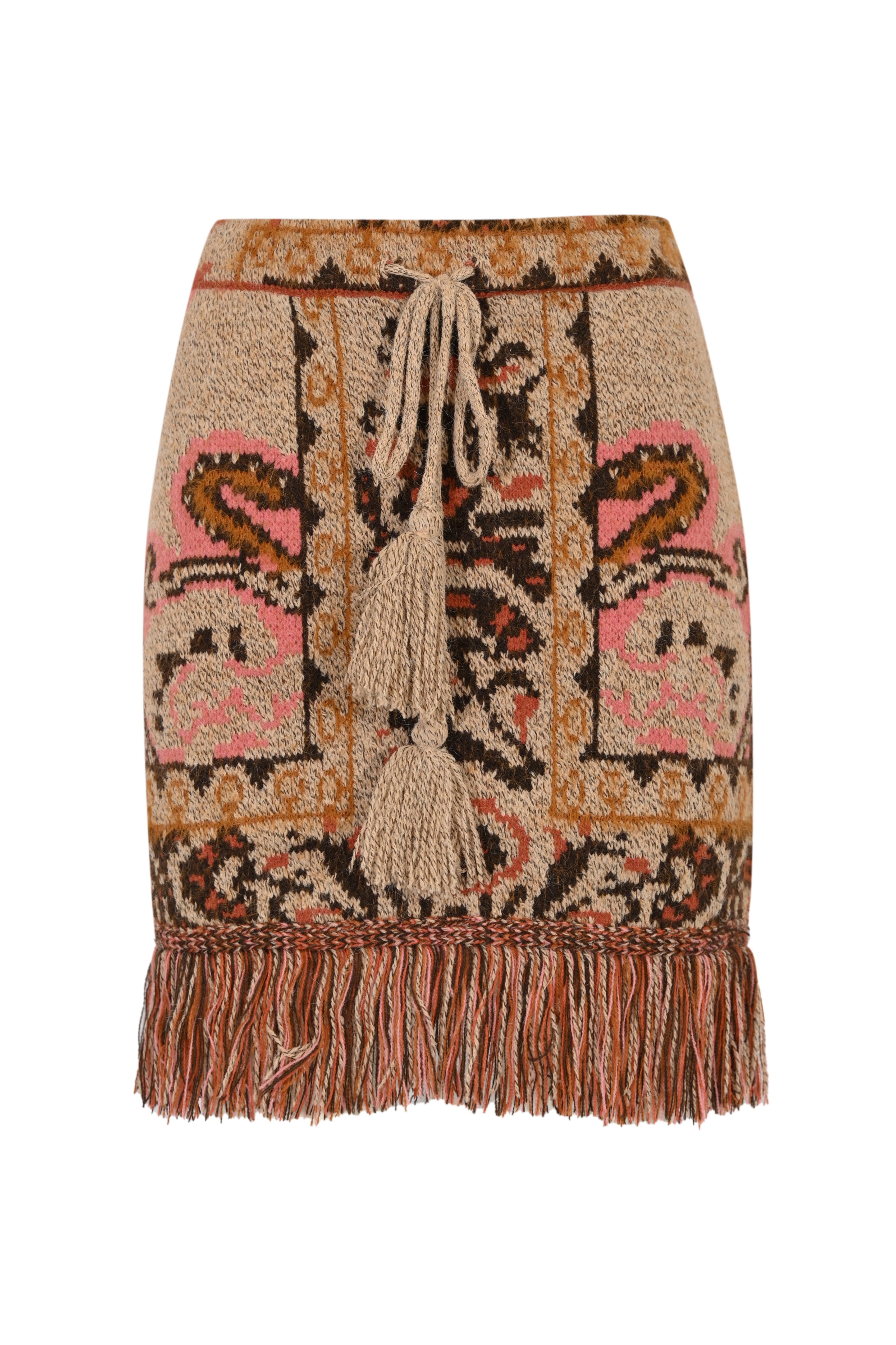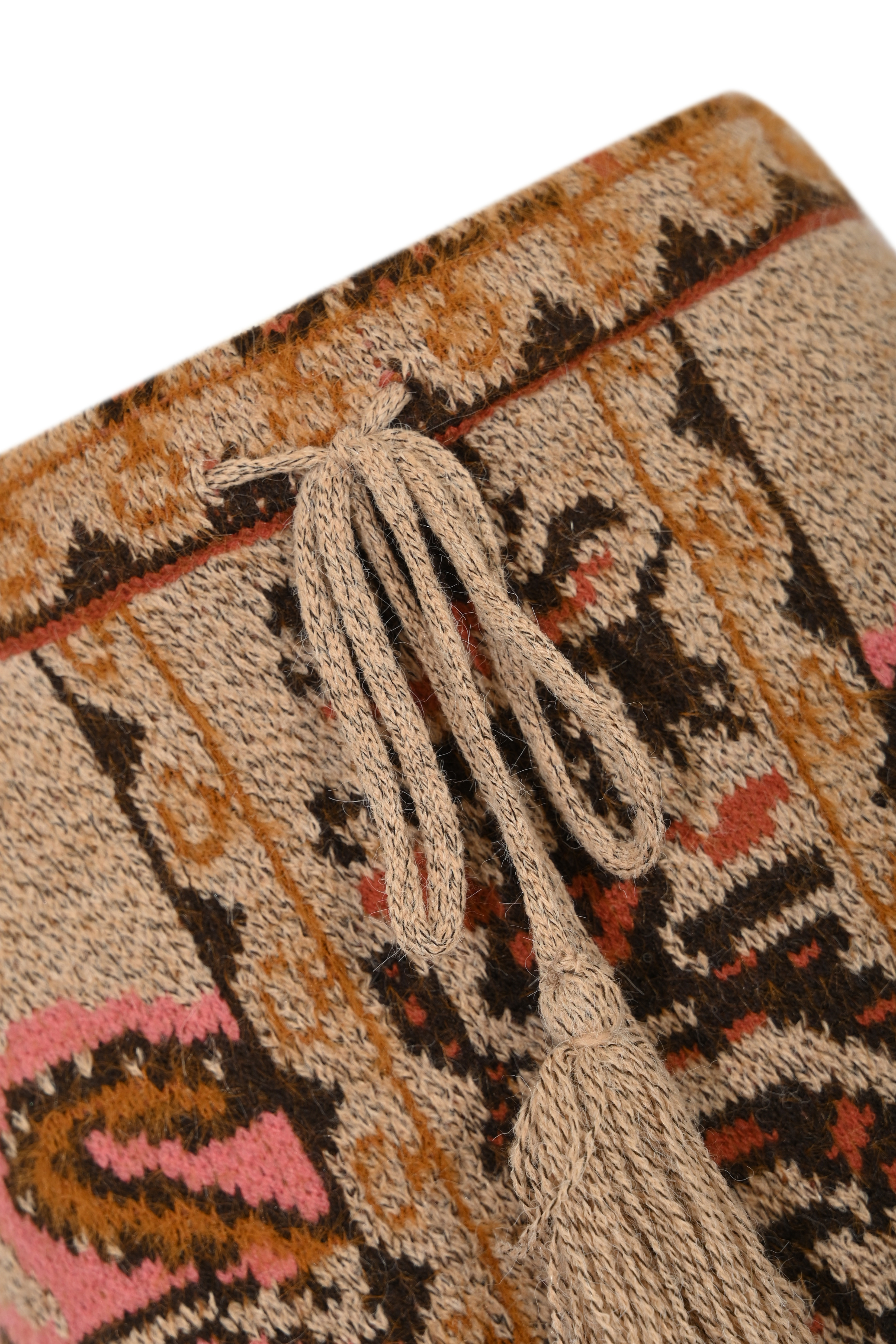 - Dettagli: frange multicolore, lavorazione jacquard a pannelli, cordino intrecciato con nappine