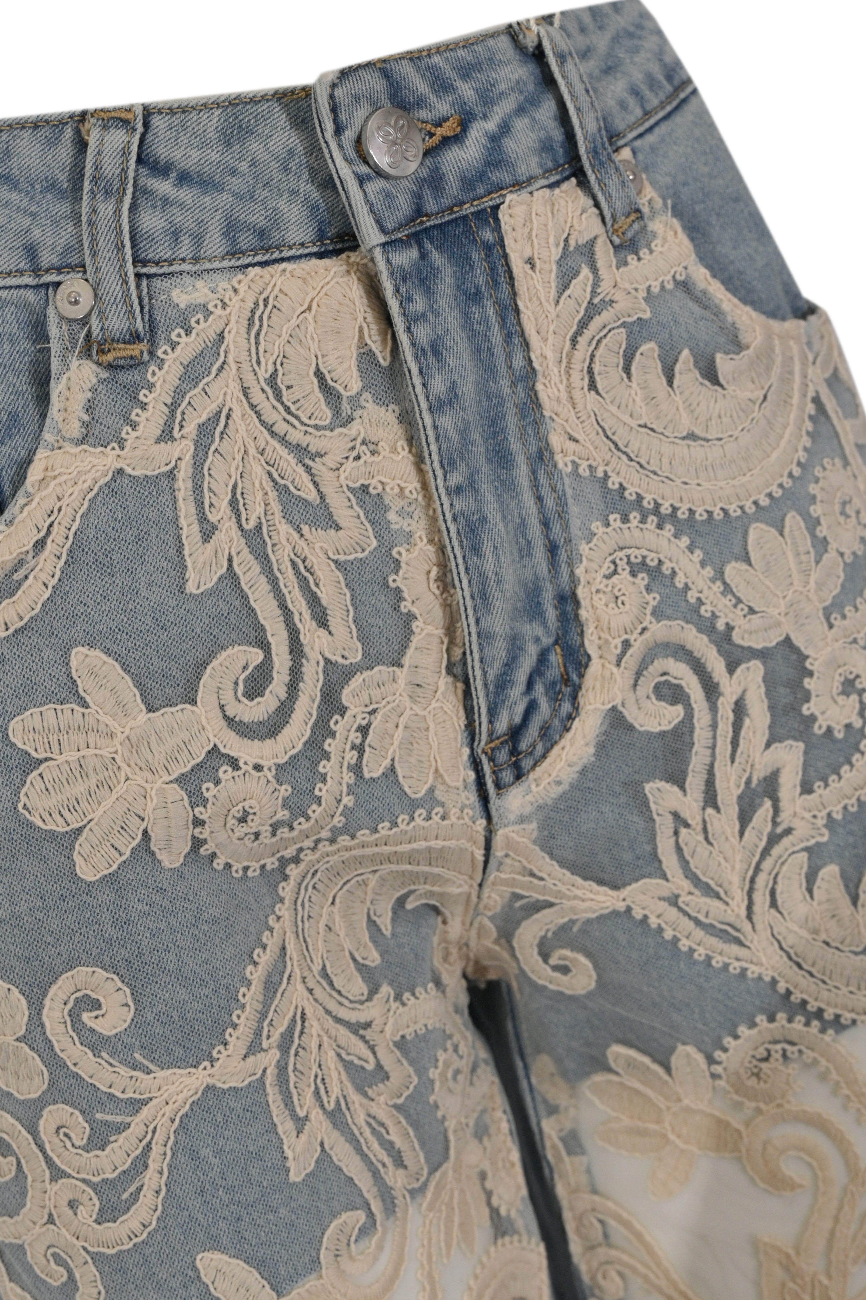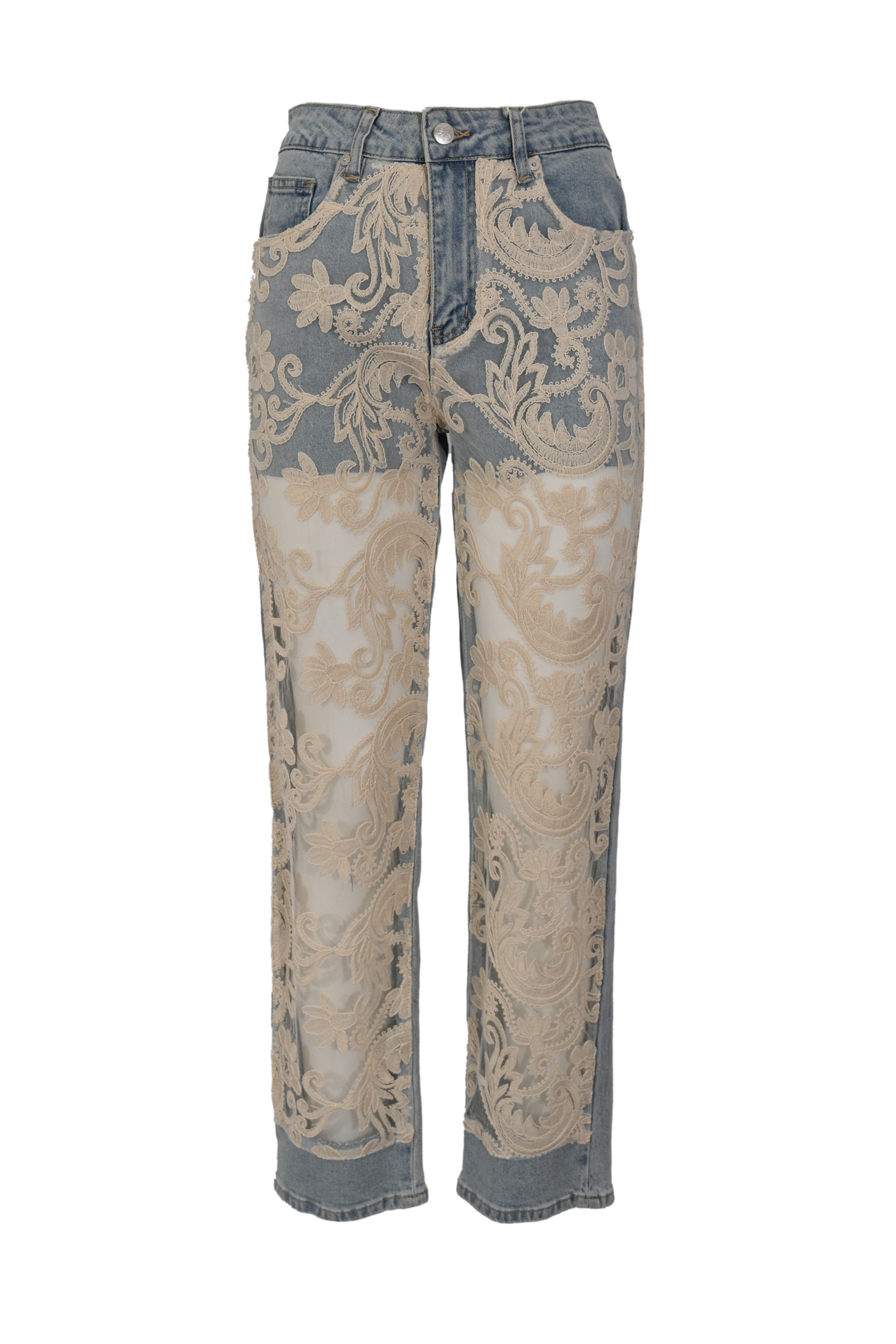 Jeans da donna in denim, Amosa, modello con inserti in pizzo