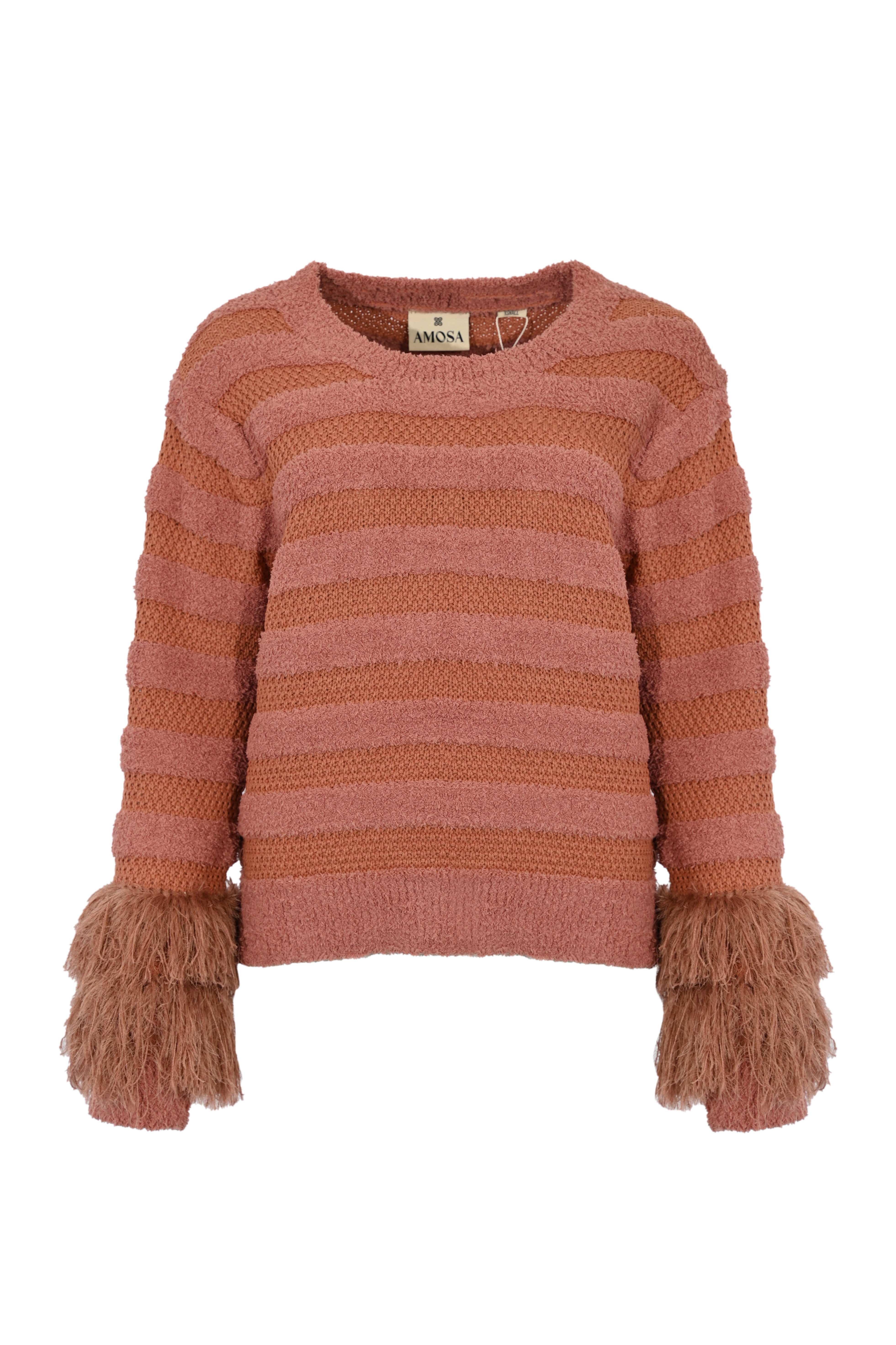 Maglia da donna a righe in misto cotone con frange, Amosa, modello A25FWMA44