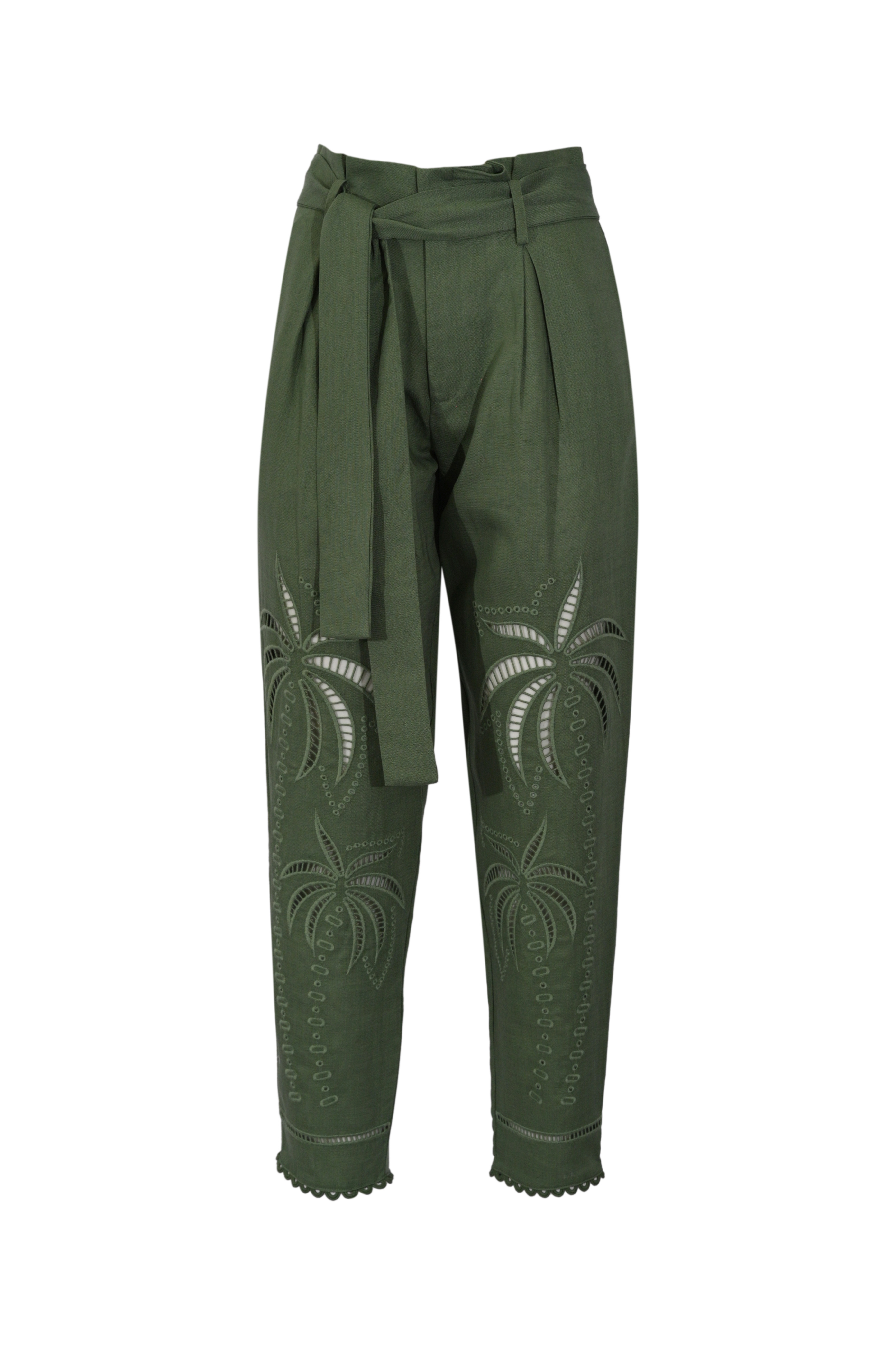 Pantalone in misto lino con ricamo palma
