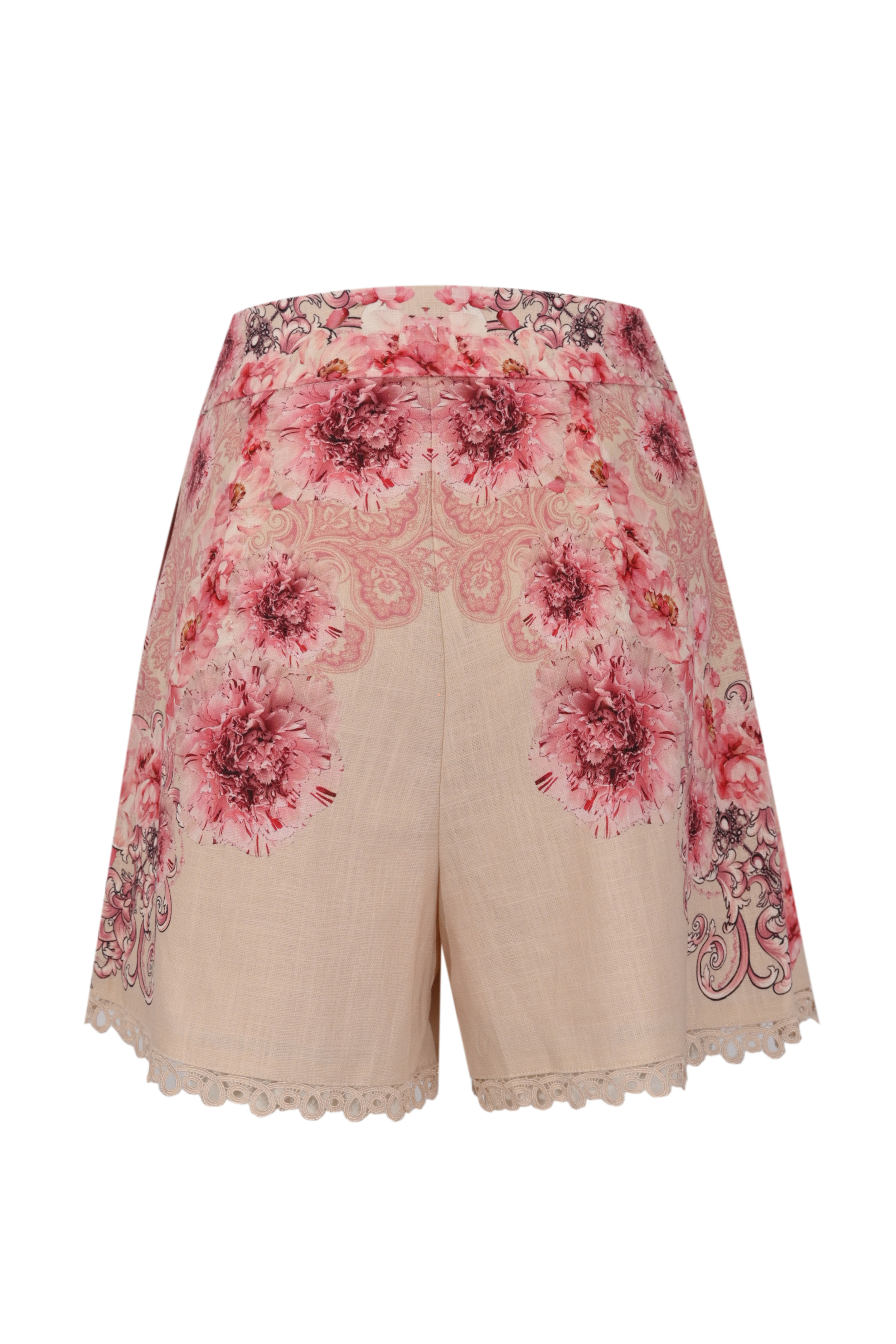 Shorts da donna in misto lino e cotone, Amosa, modello stampa floreale