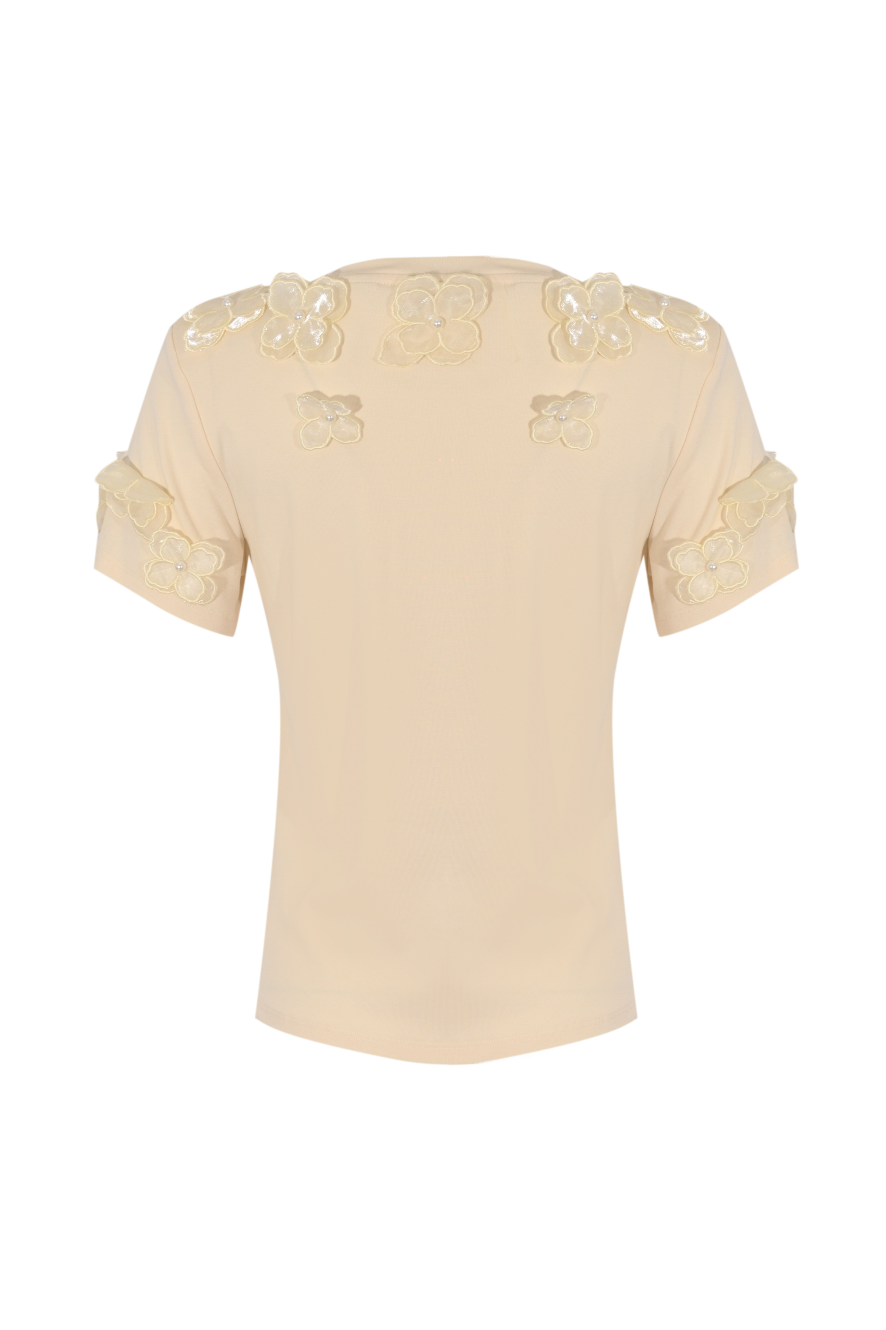 T-shirt in cotone con applicazioni floreali e perle