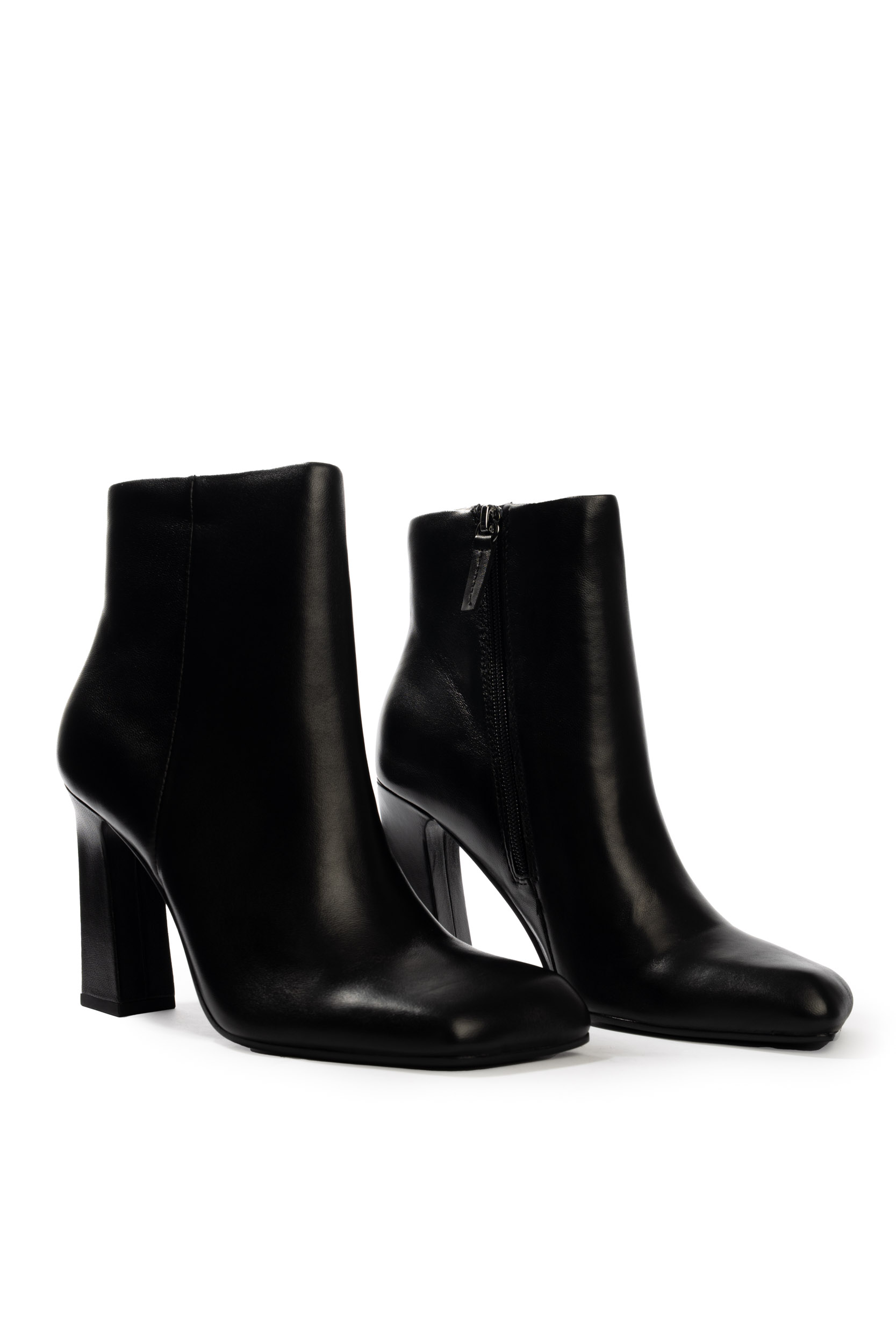 - Tacco: alto, squadrato, rivestito in pelle (circa 9 cm