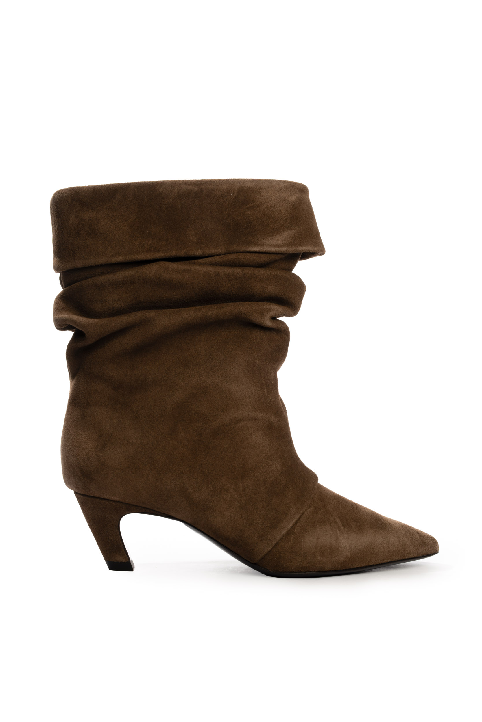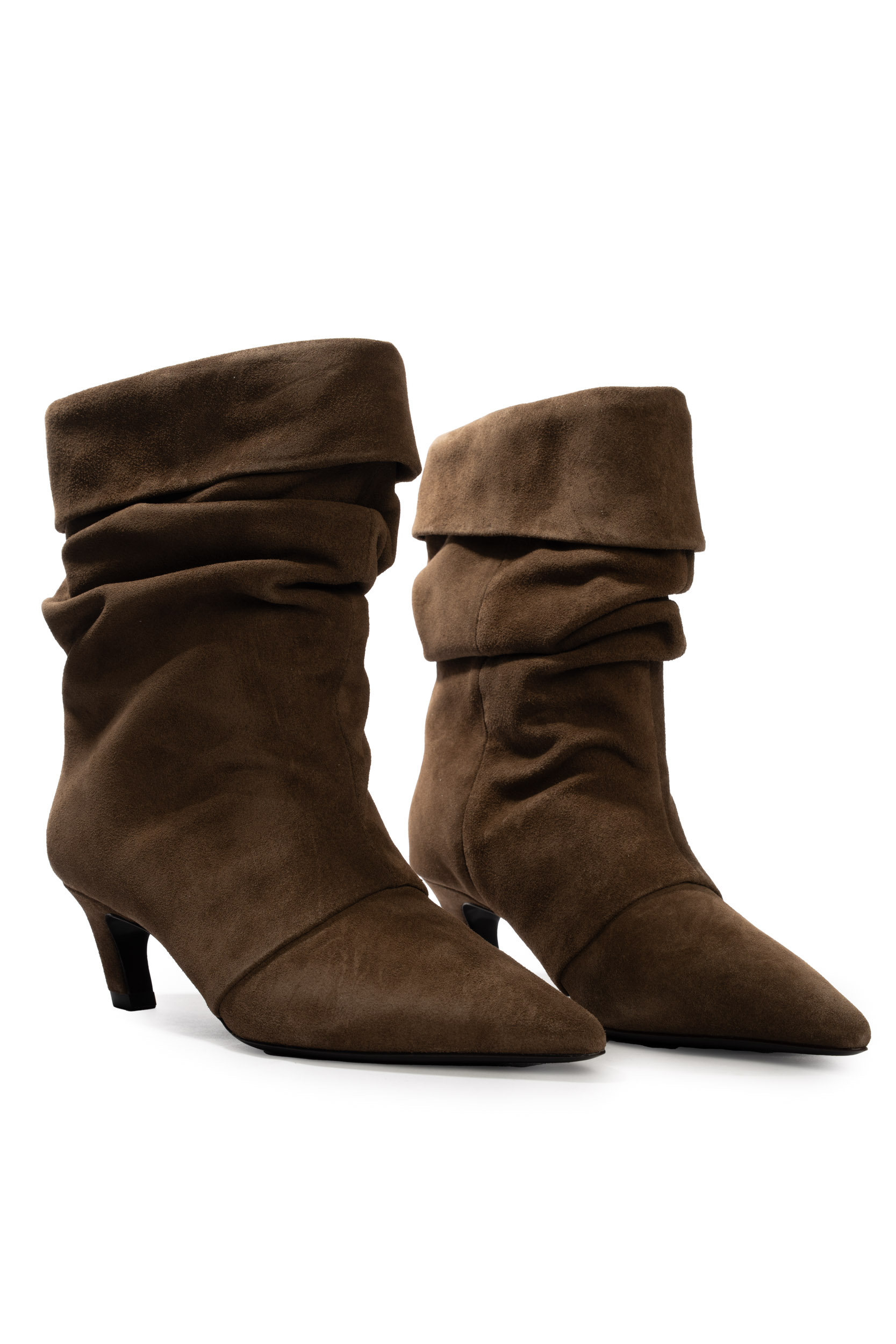 Stivaletto da donna realizzato in morbido suede color marrone.
