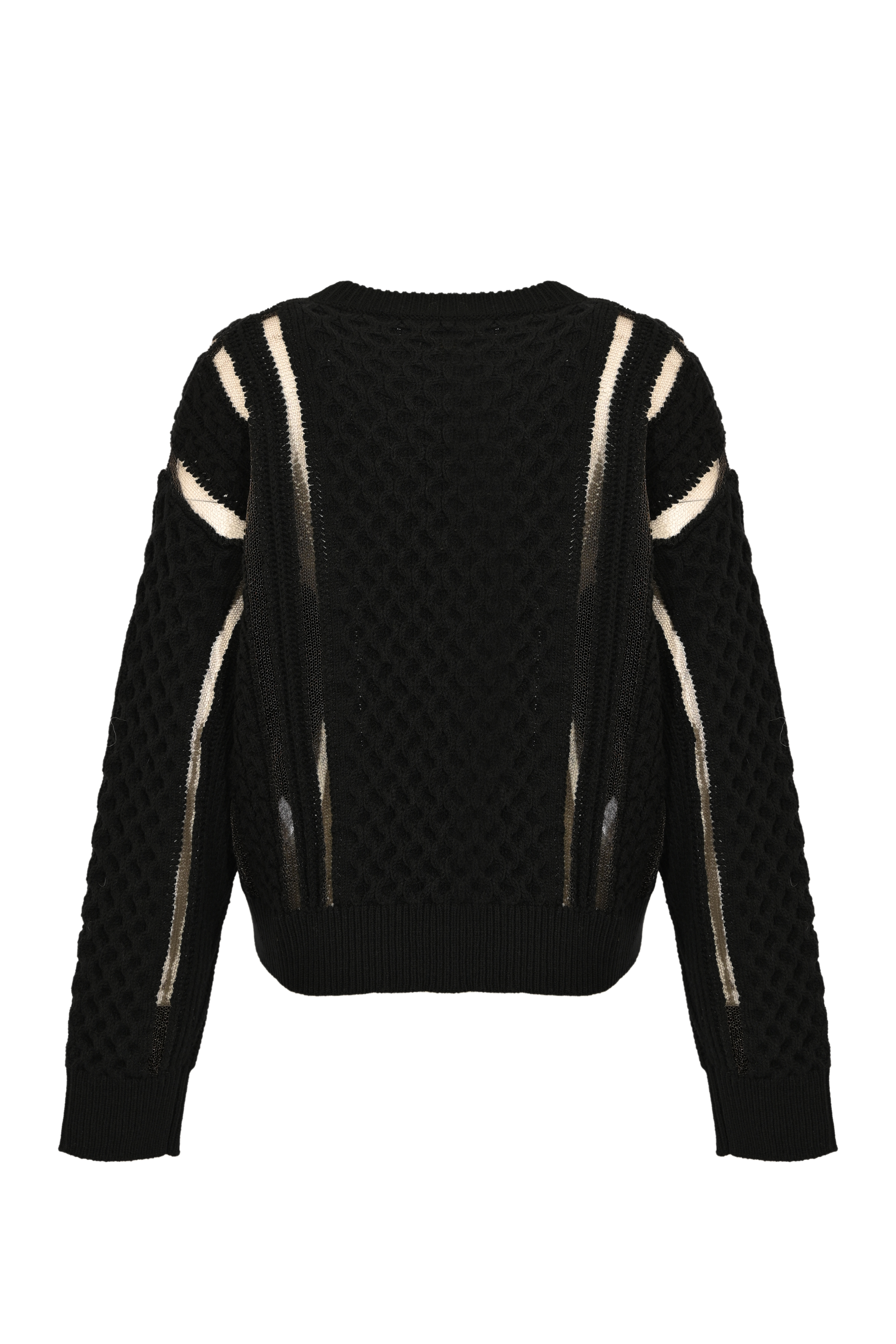 - Dettagli: Lavorazione intrecciata a trecce sul davanti e sul retro, bordi a coste su fondo e maniche, texture calda e morbida