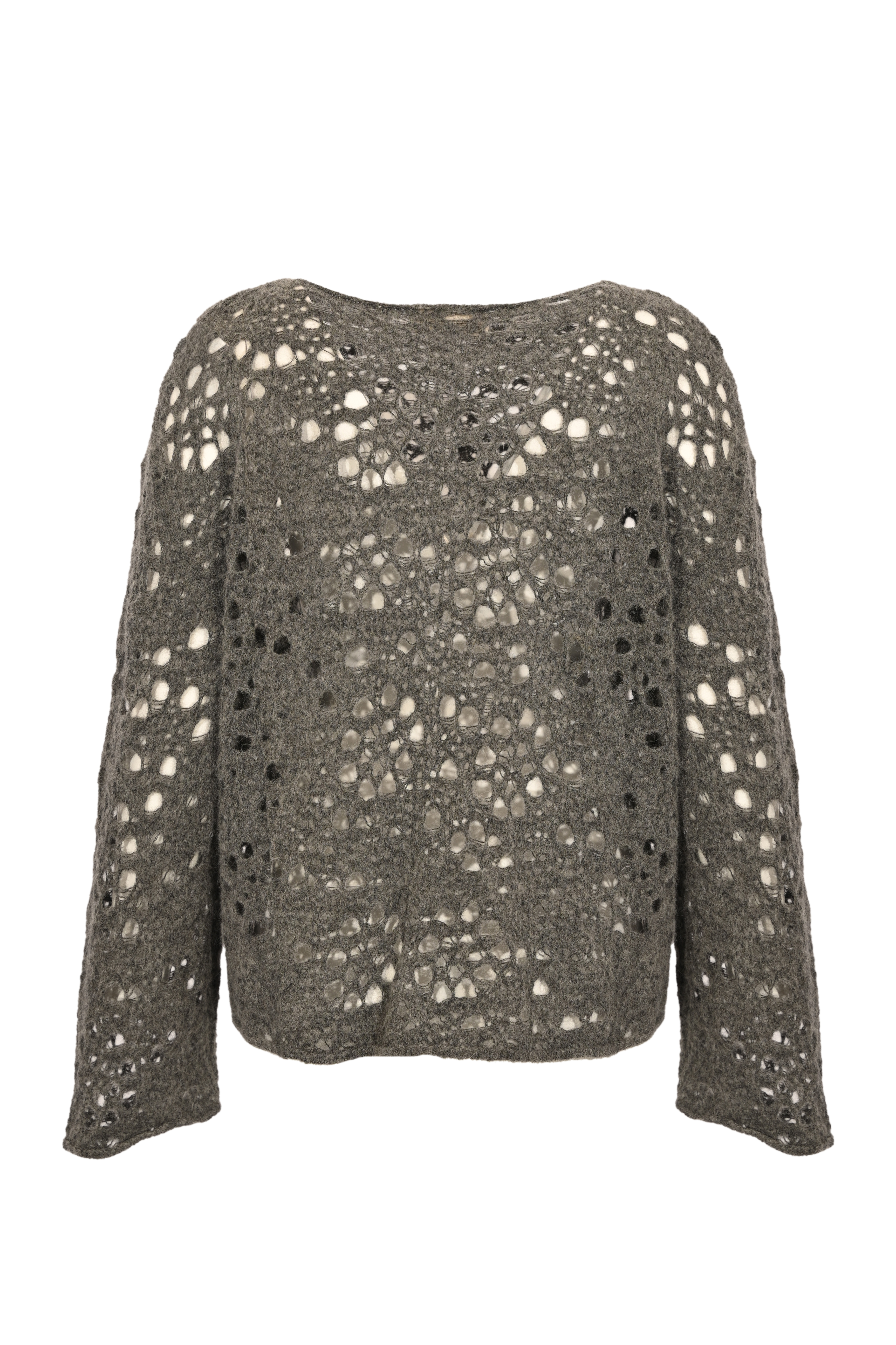 - Dettagli: Lavorazione traforata alluncinetto che crea un effetto leggero e arioso, bordo dritto e maniche rifinite