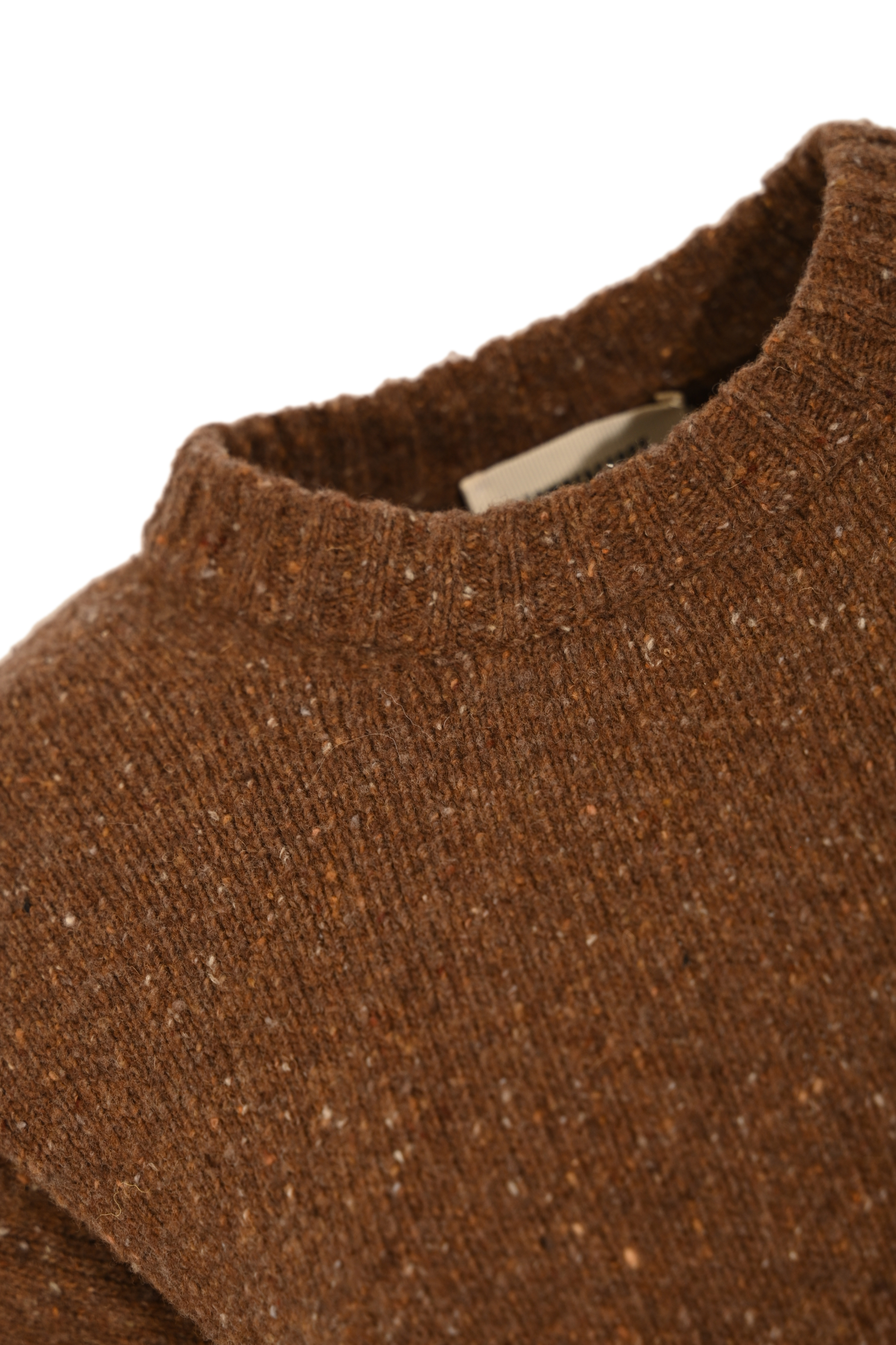 - Dettagli: Maglia dalla texture morbida e calda, con lavorazione melange e particolare apertura tonda sulla schiena, bordi rifiniti a coste