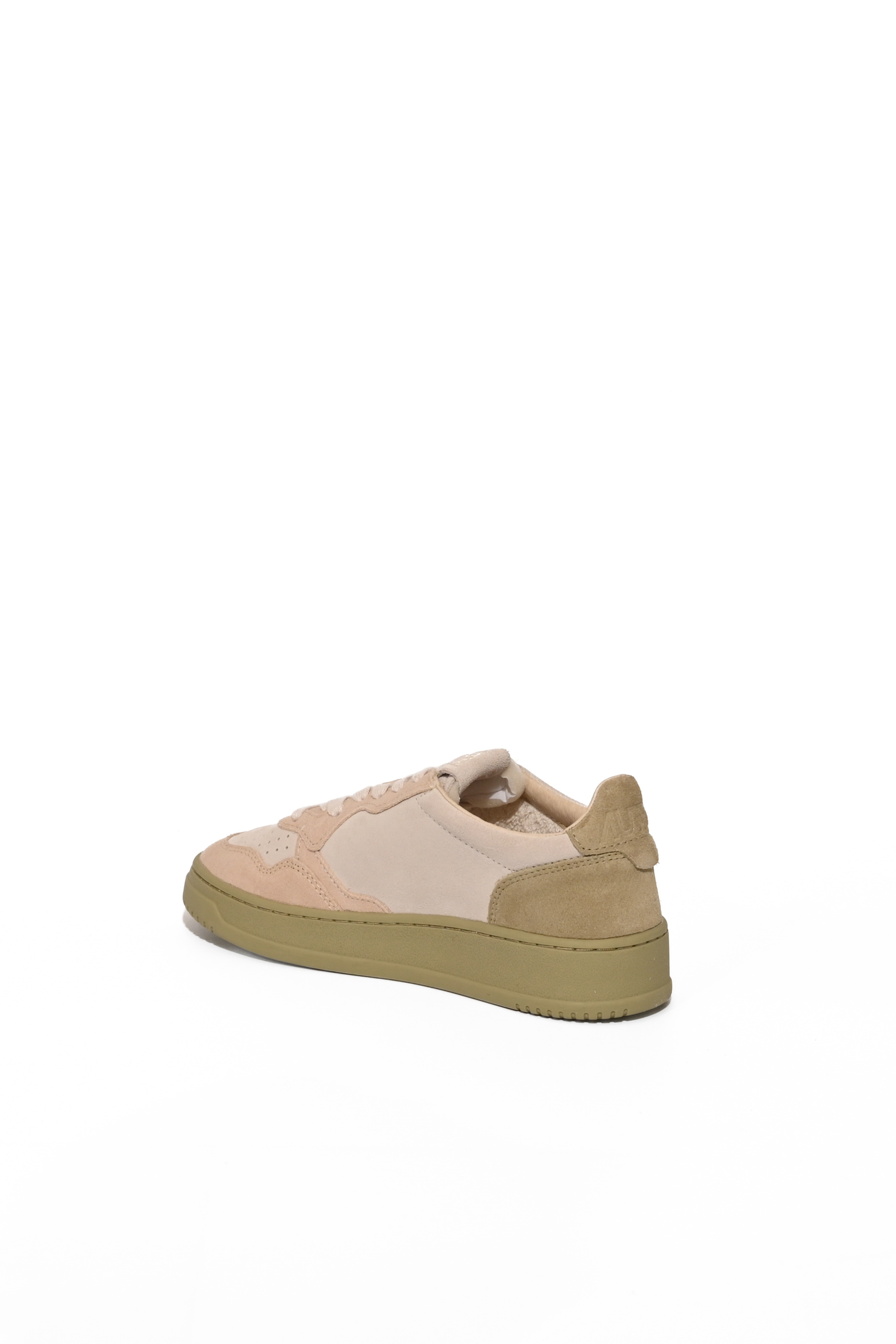 Sneakers Autry Medalist Low Tricolor in suede Sabbia/Grigio/Rosa