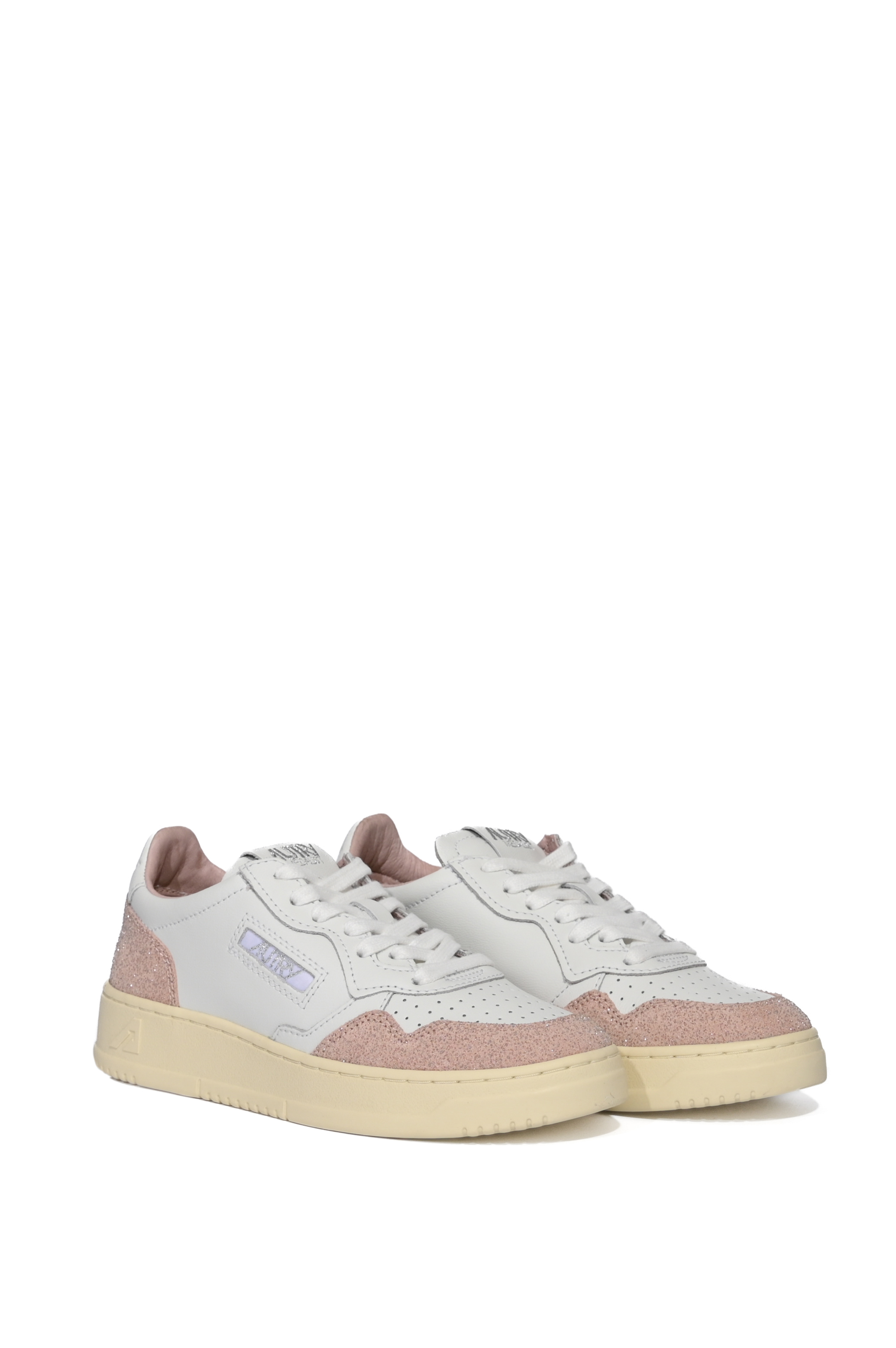 Sneakers Medalist Low in pelle e suede glitterato Bianco/Rosa
