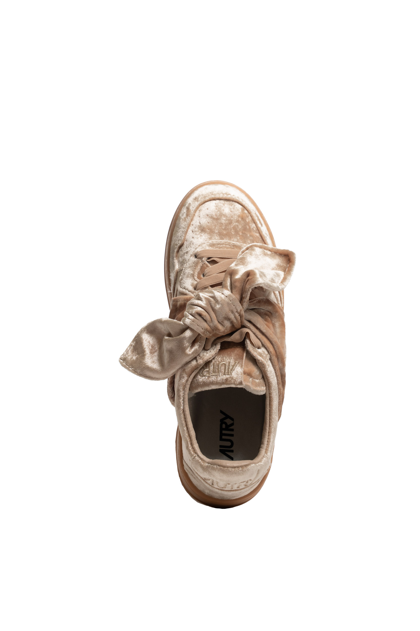 - Tomaia: In morbido velluto con maxi fiocco decorativo tono su tono; logo Autry ricamato lateralmente.