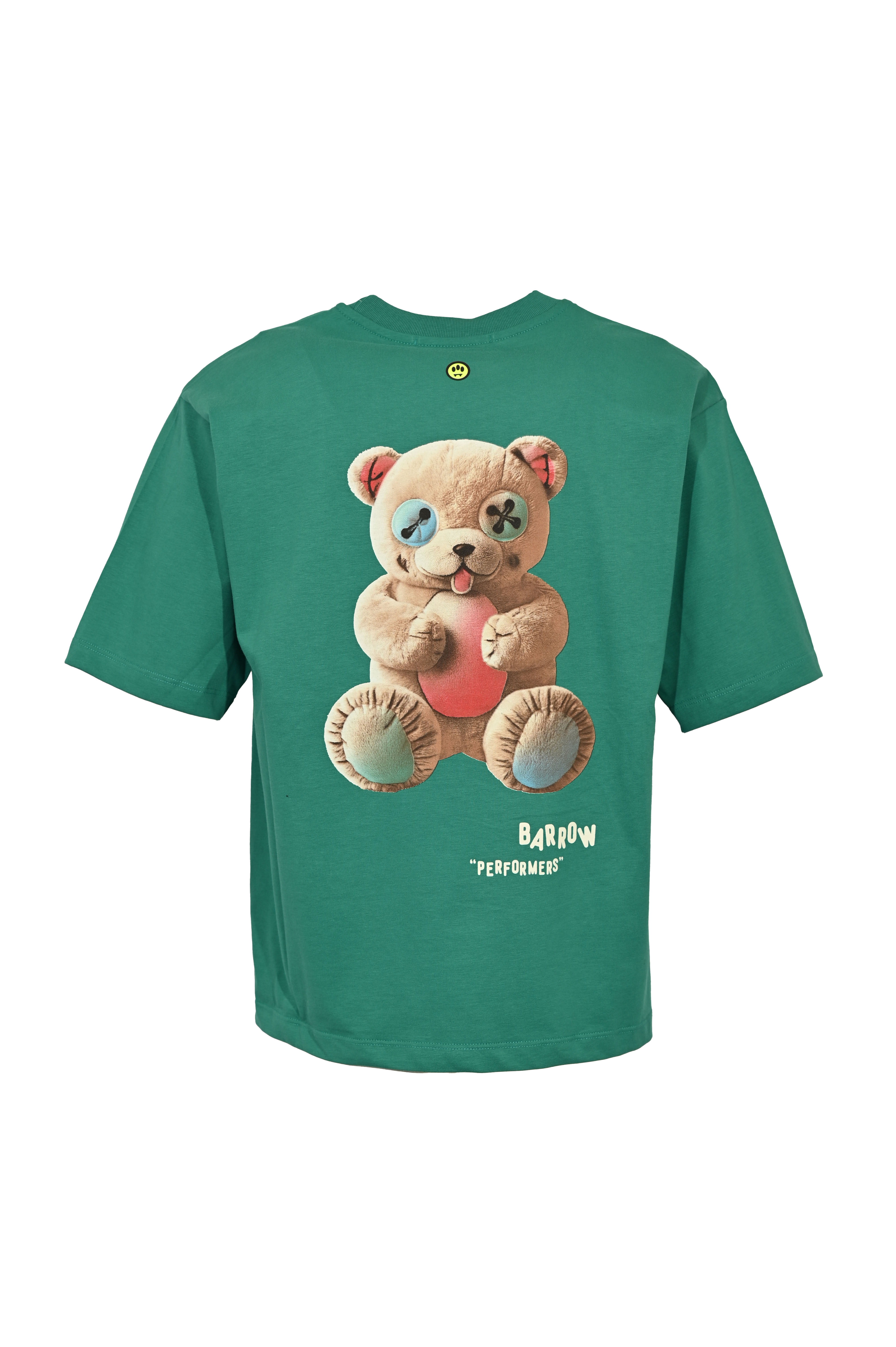 T-shirt in jersey di cotone con stampa Teddy Verde