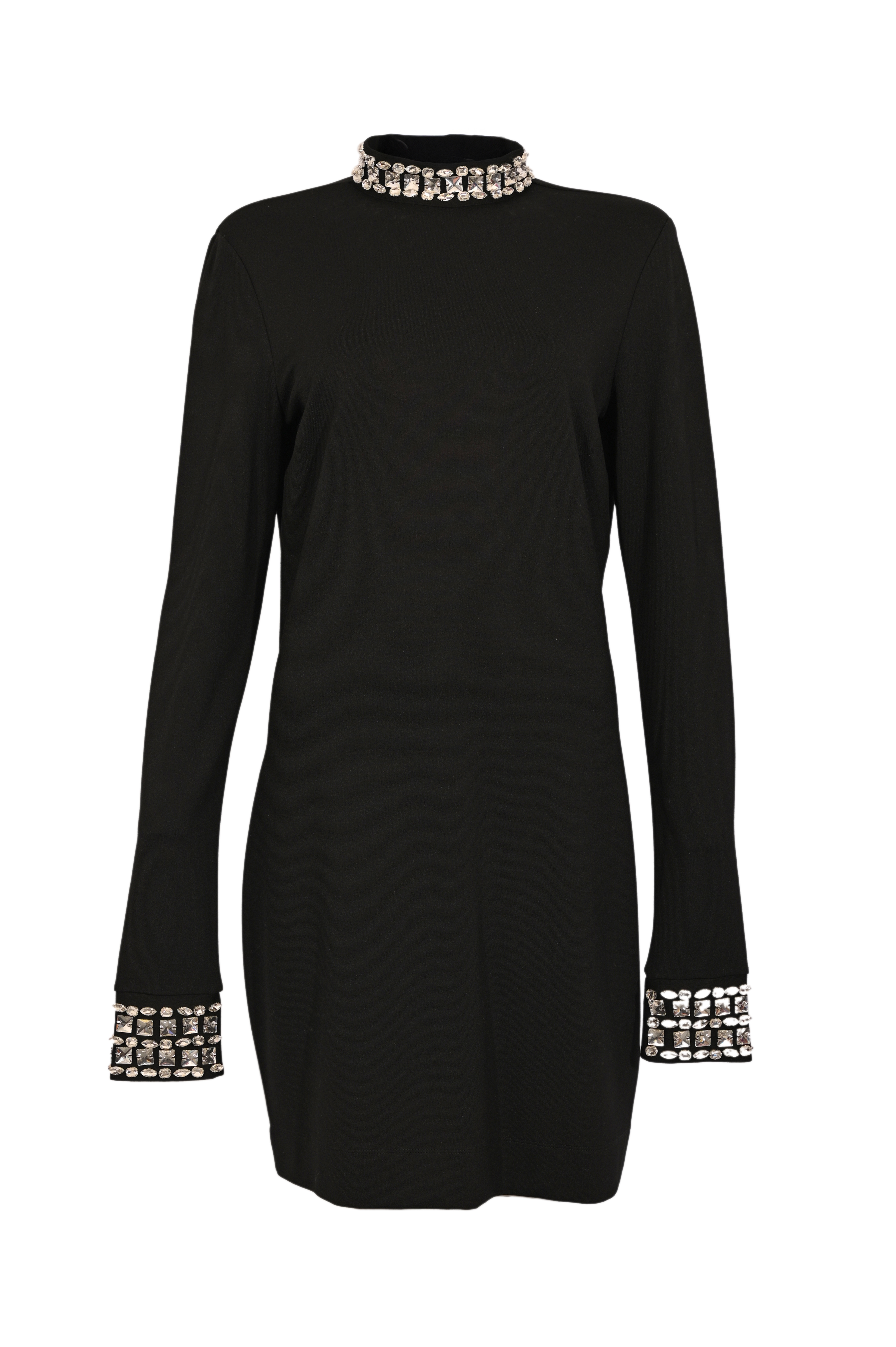 Abito in jersey di viscosa con ricamo gioiello Nero