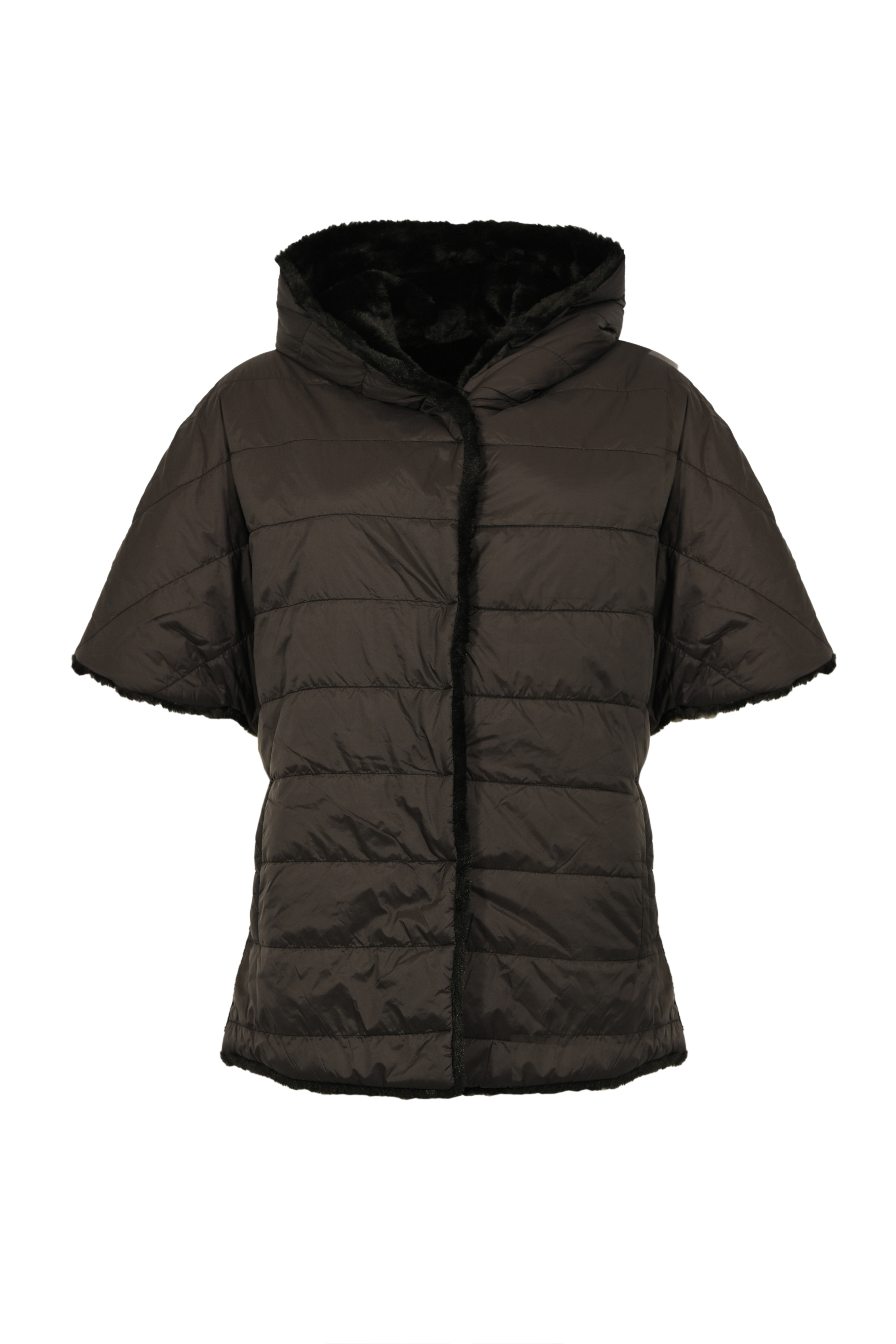 Cappa reversibile in faux fur e nylon trapuntato