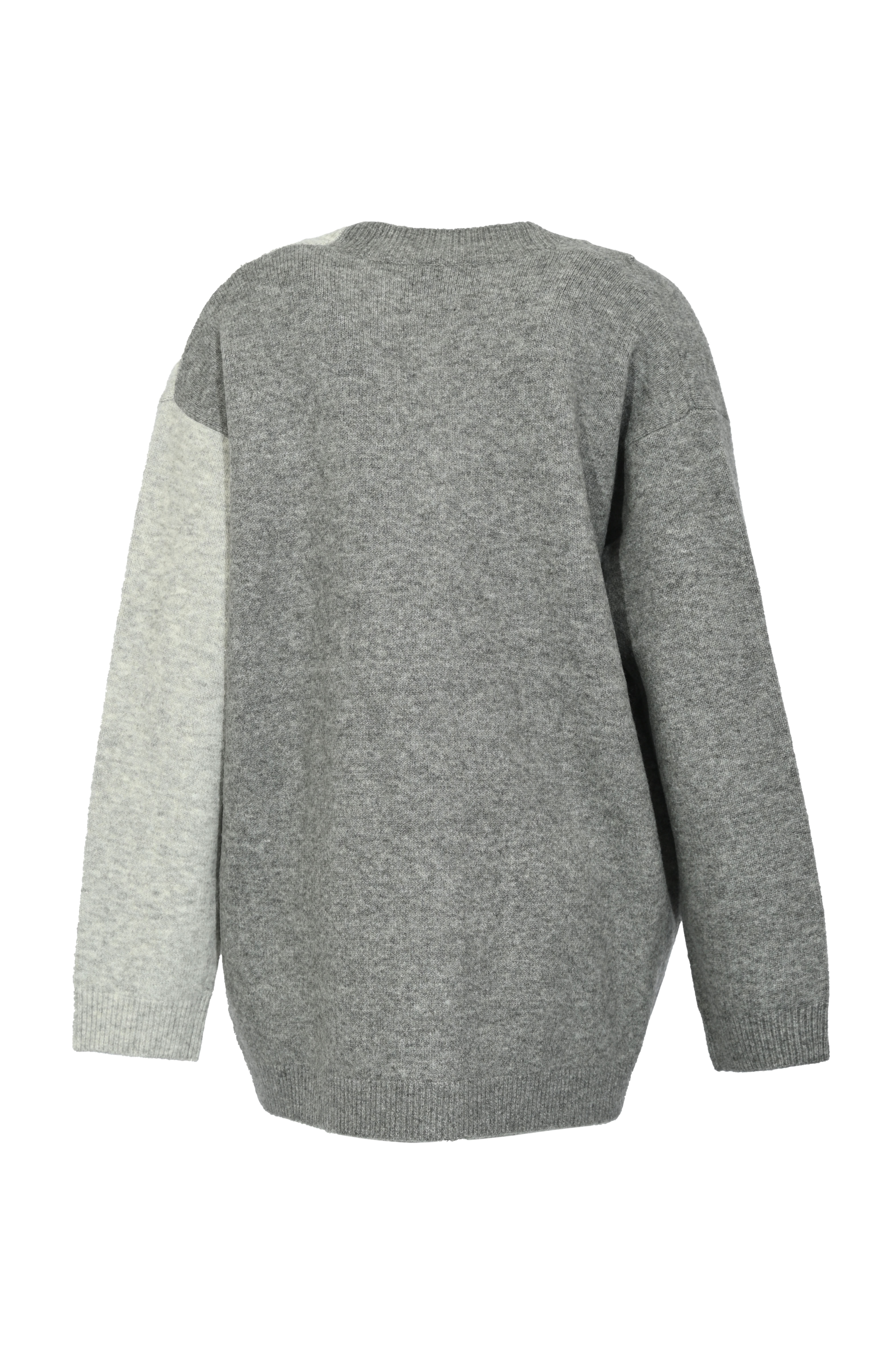 - Dettagli: lavorazione jacquard a contrasto nei toni del grigio, finiture a costine su collo, polsini e fondo