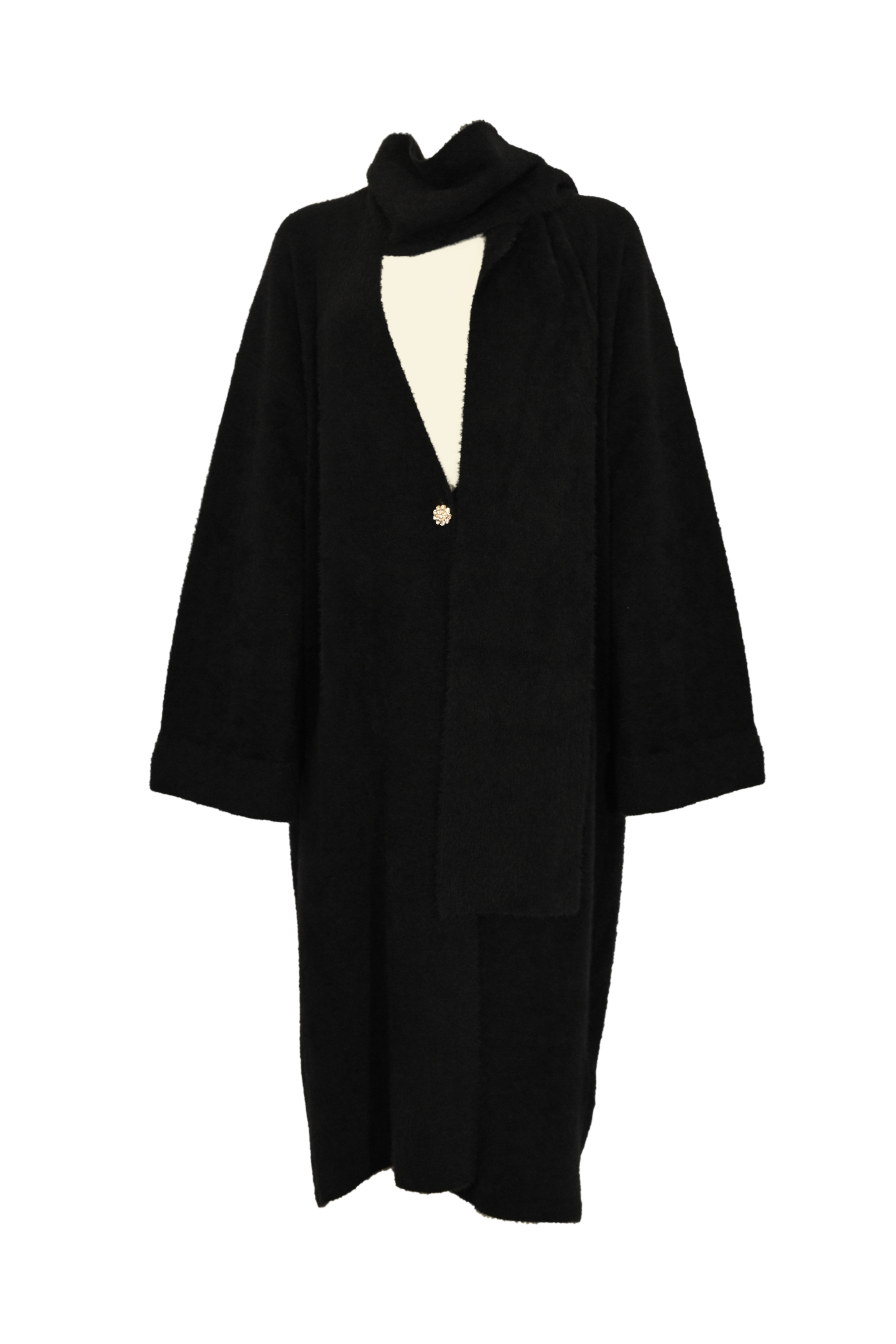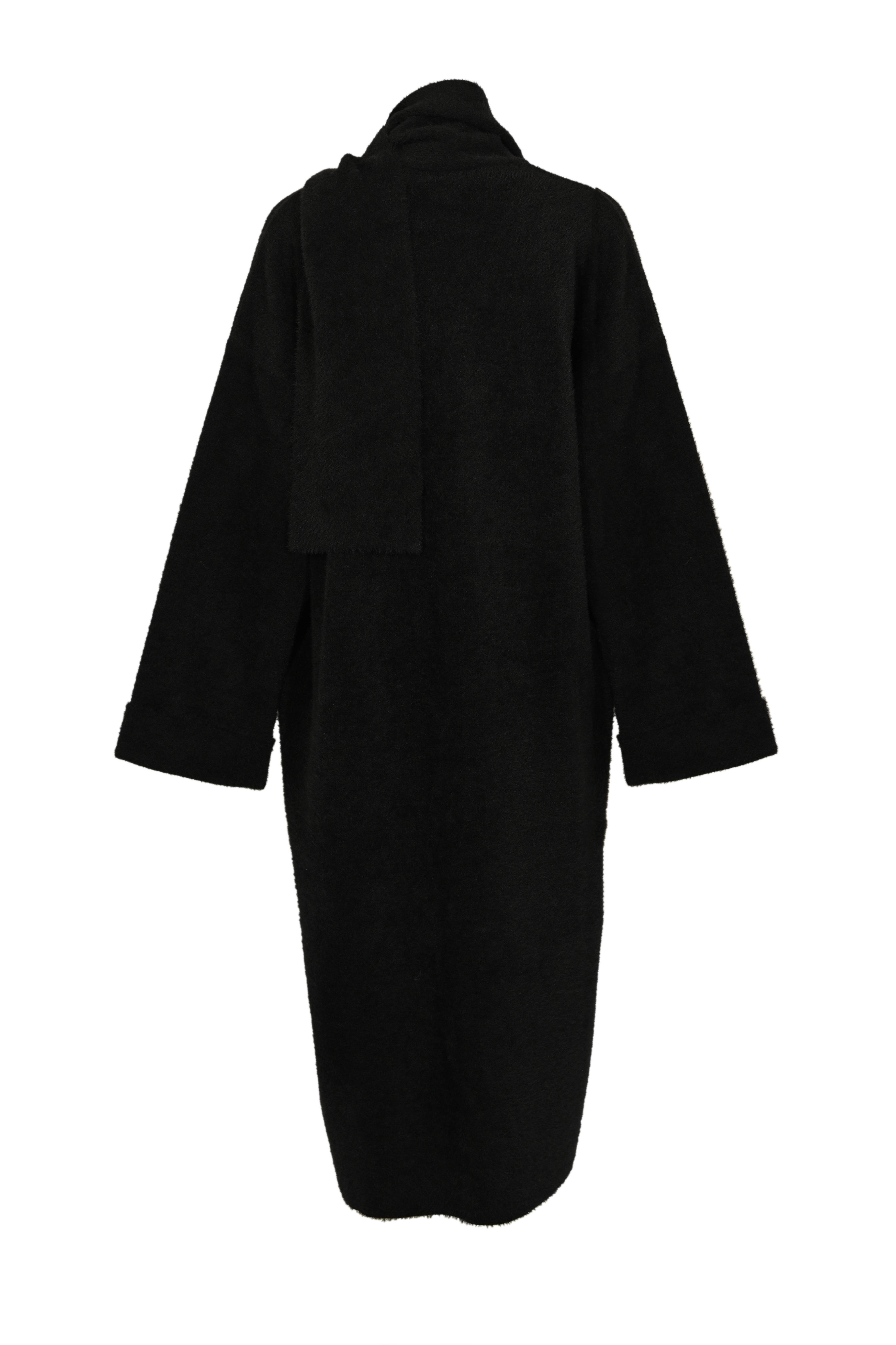 - Collo: ampio scialle integrato che si avvolge sul davanti