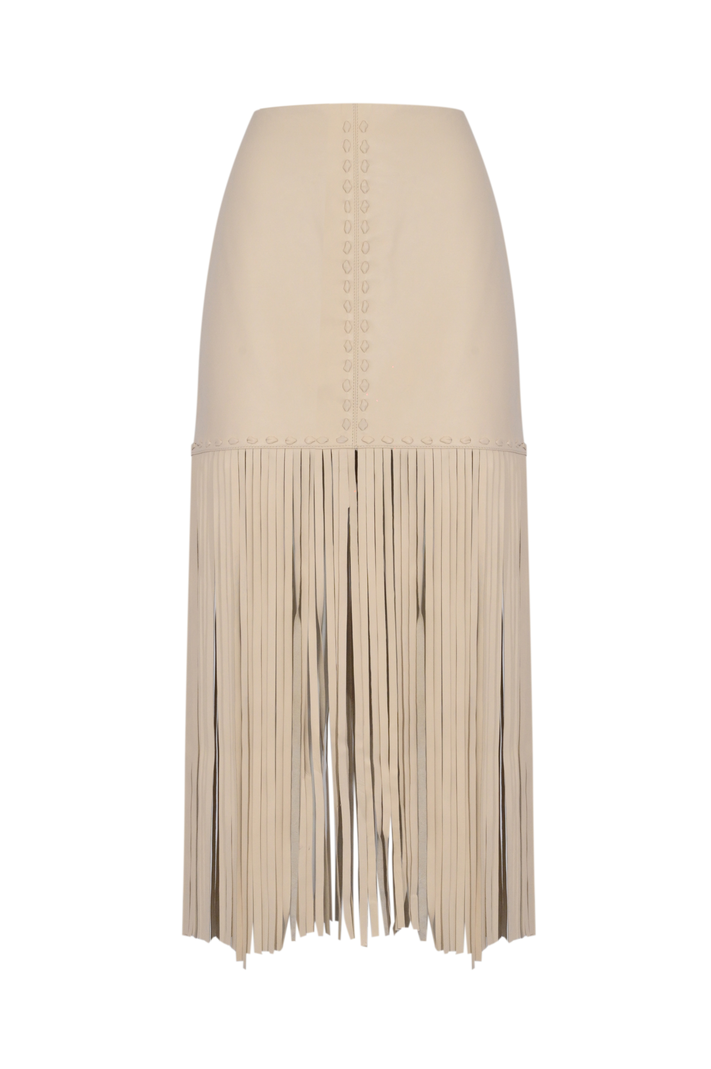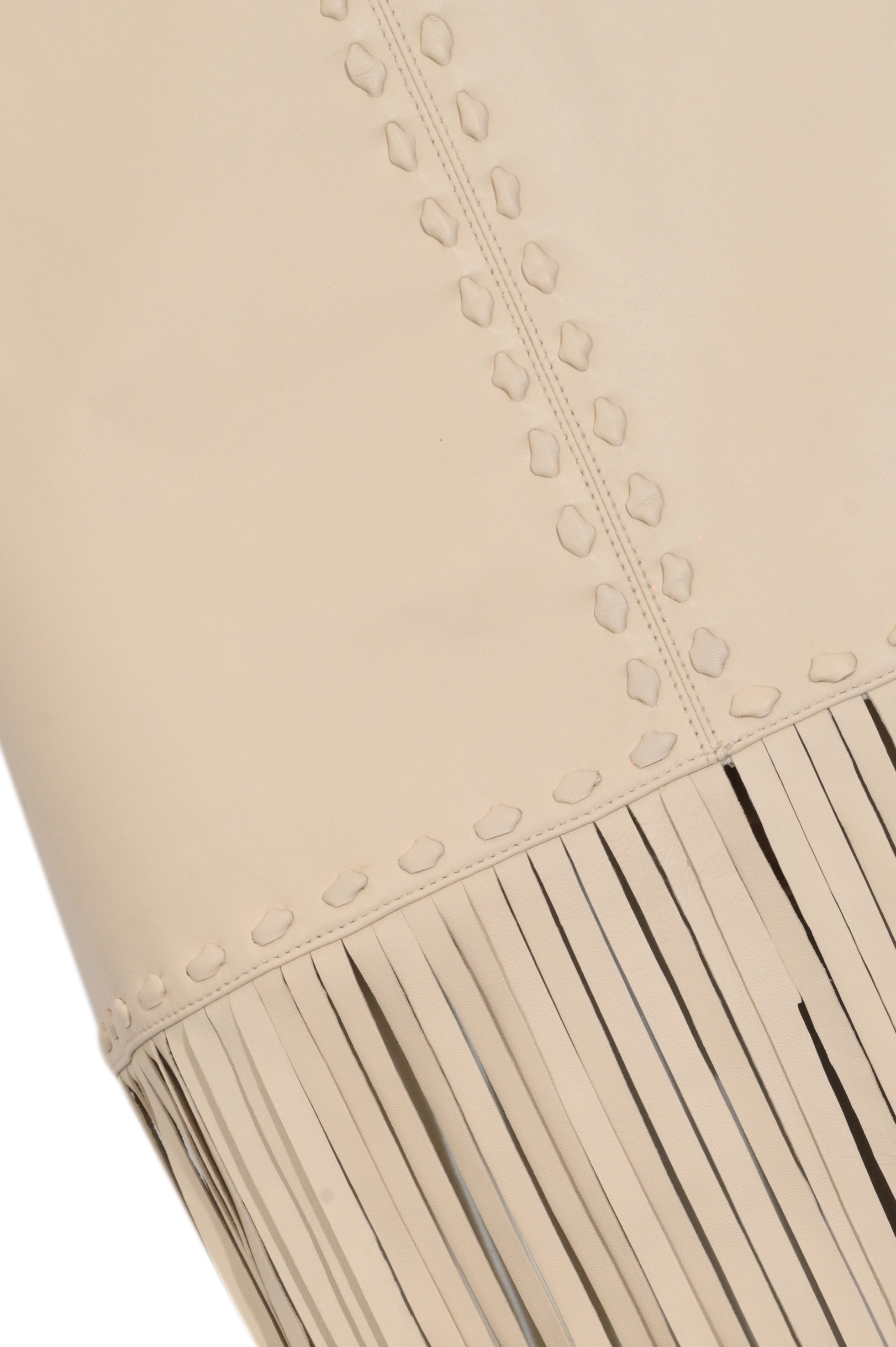 - Dettagli: inserto con frange lunghe, cuciture decorative a rilievo