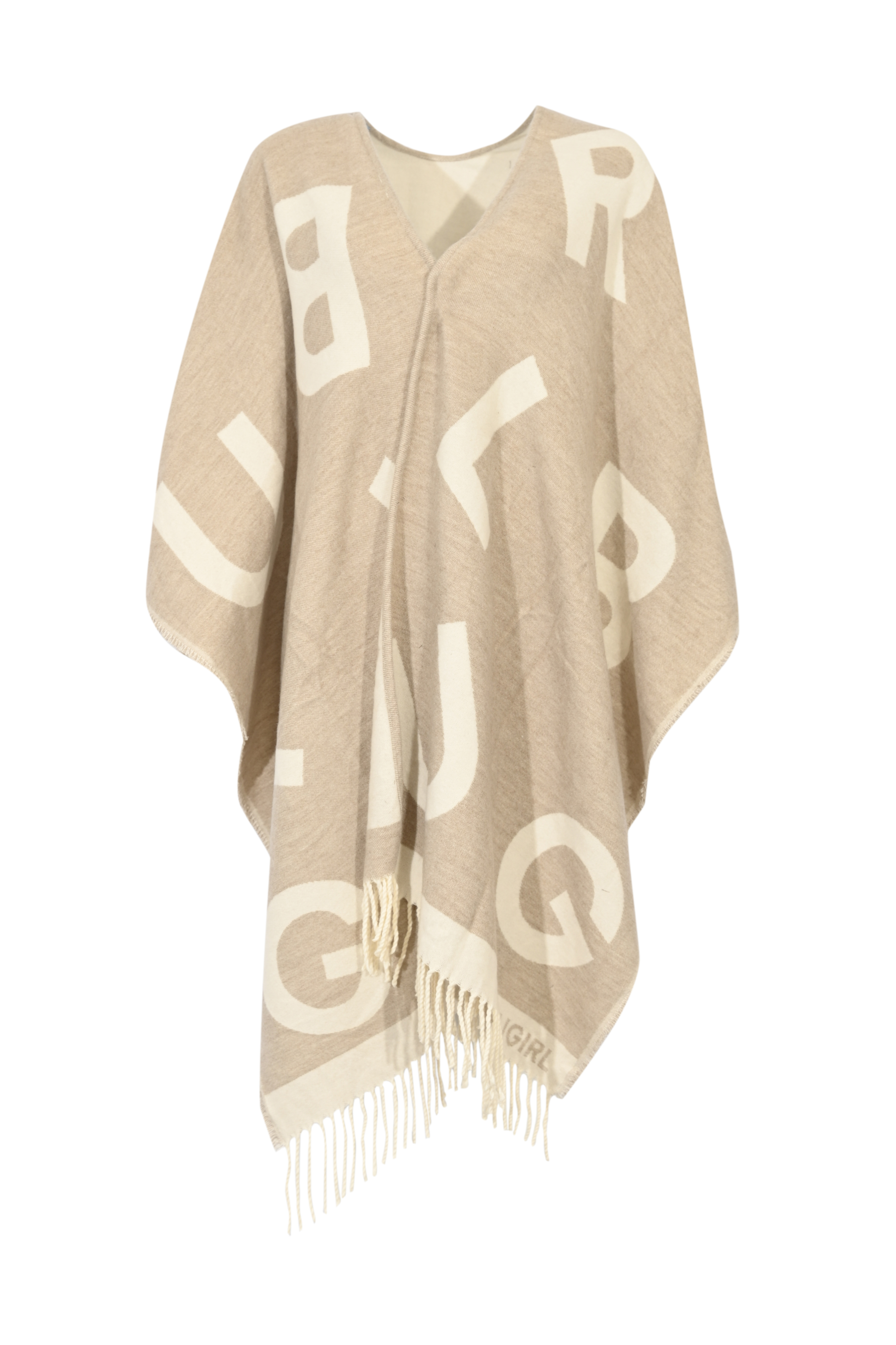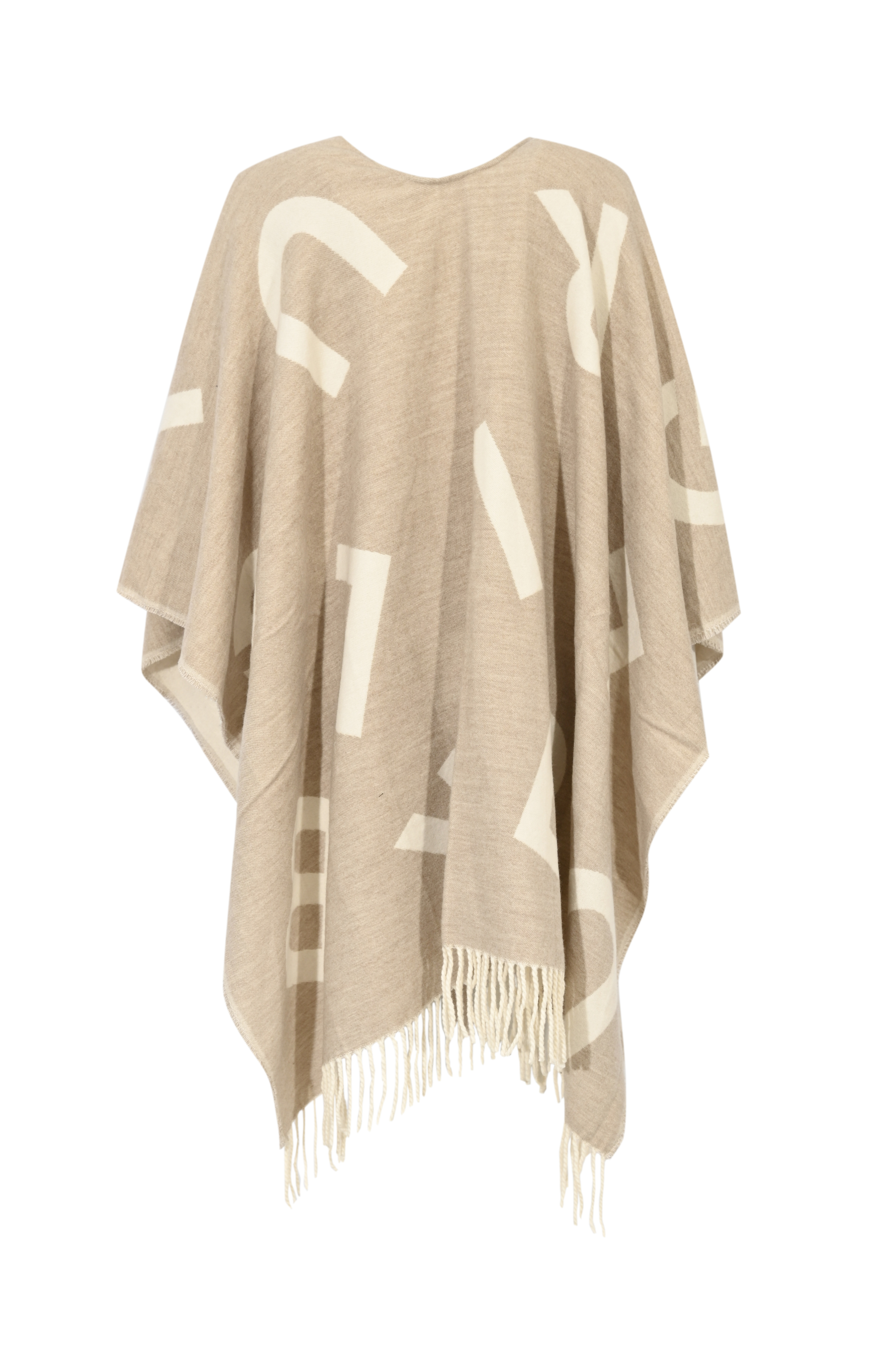 Poncho in misto lana con lettering Naturale