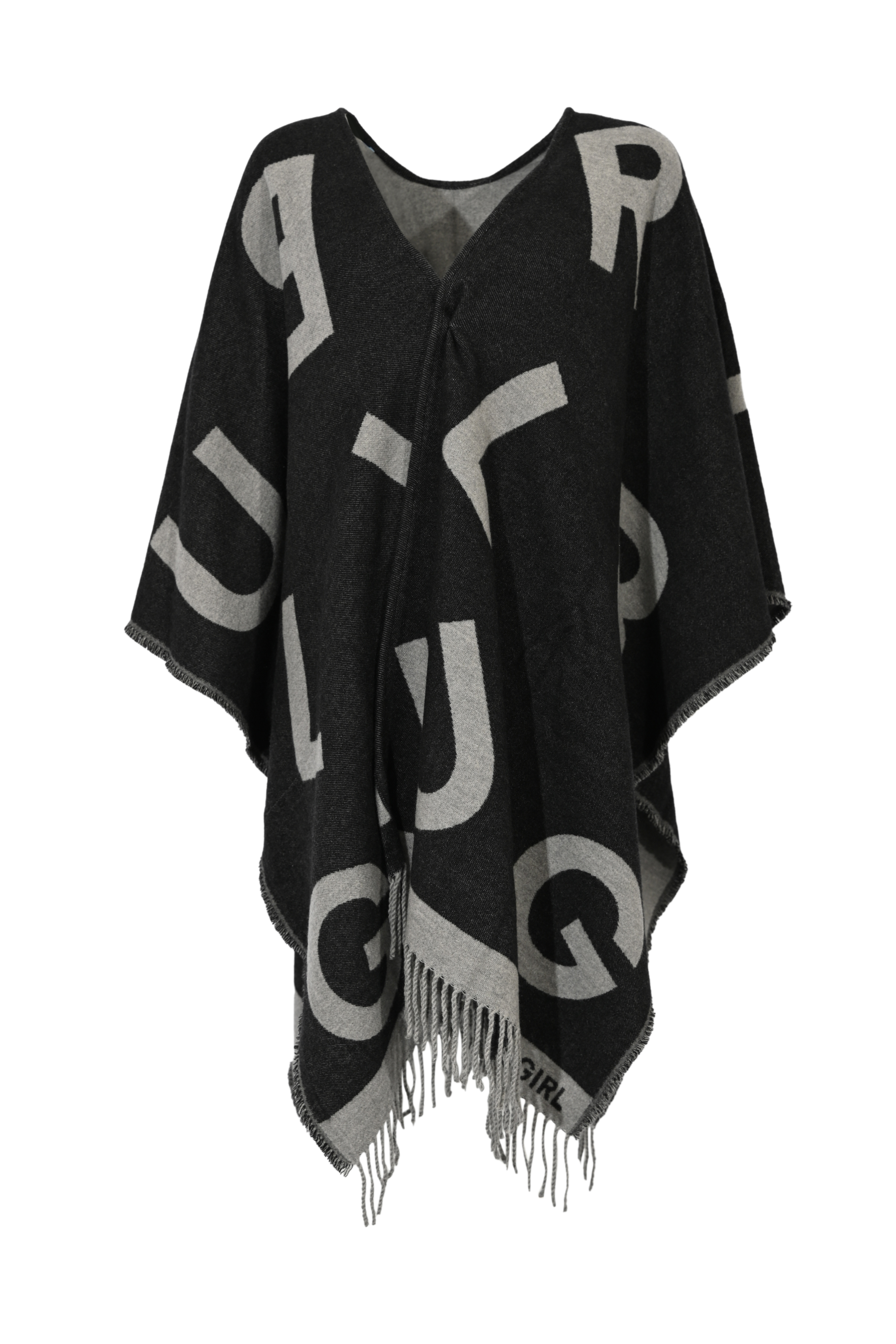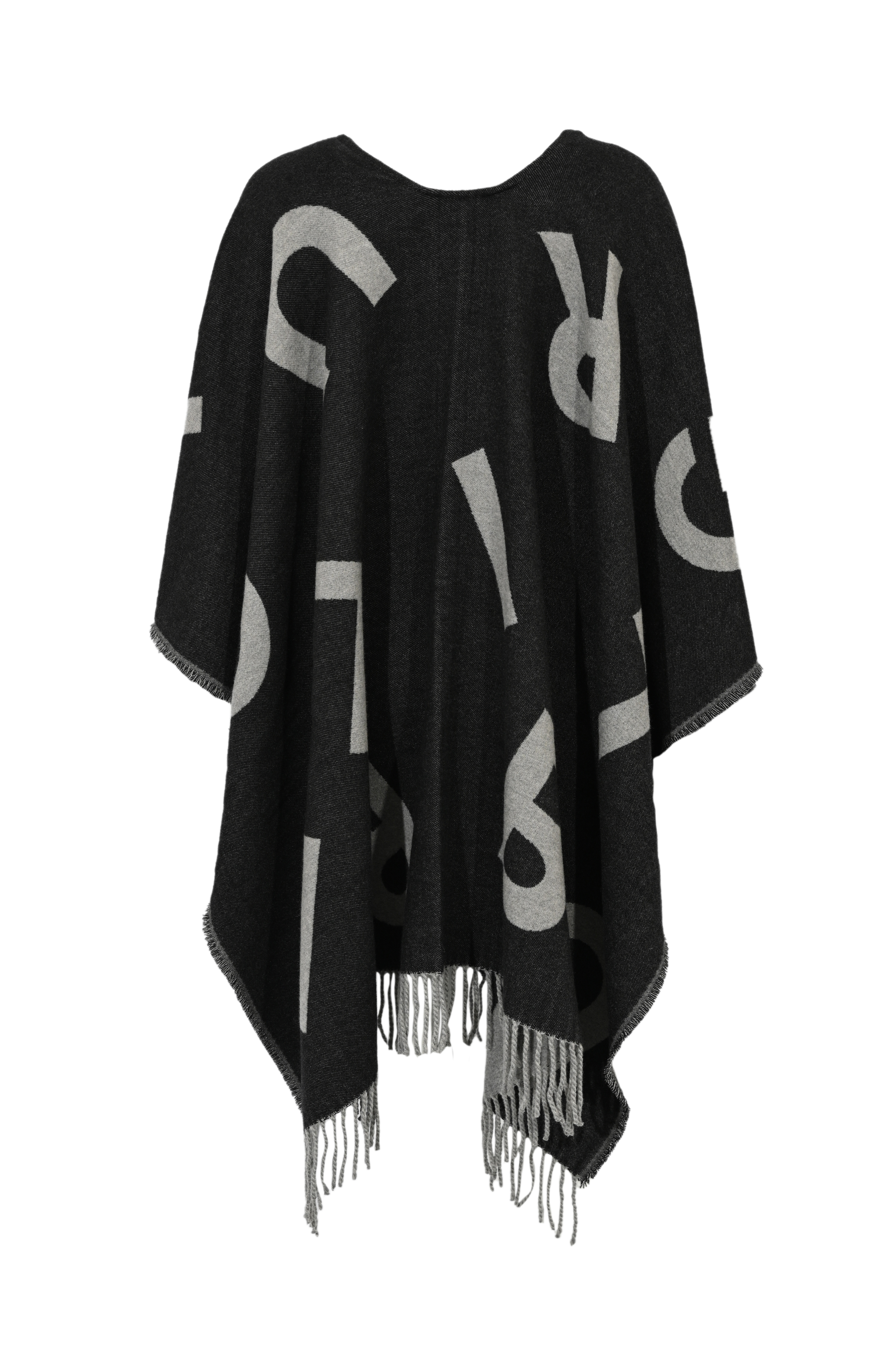Poncho in misto lana con lettering Nero