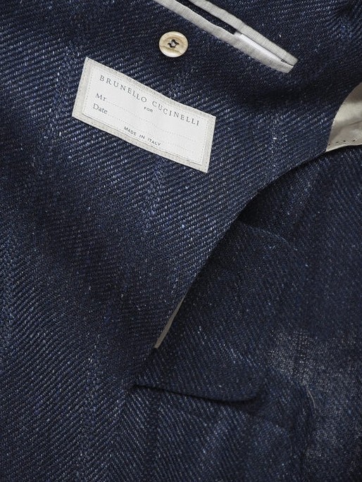 Giacca da uomo in misto lino, lana, seta e cotone, Brunello Cucinelli, modello effetto denim