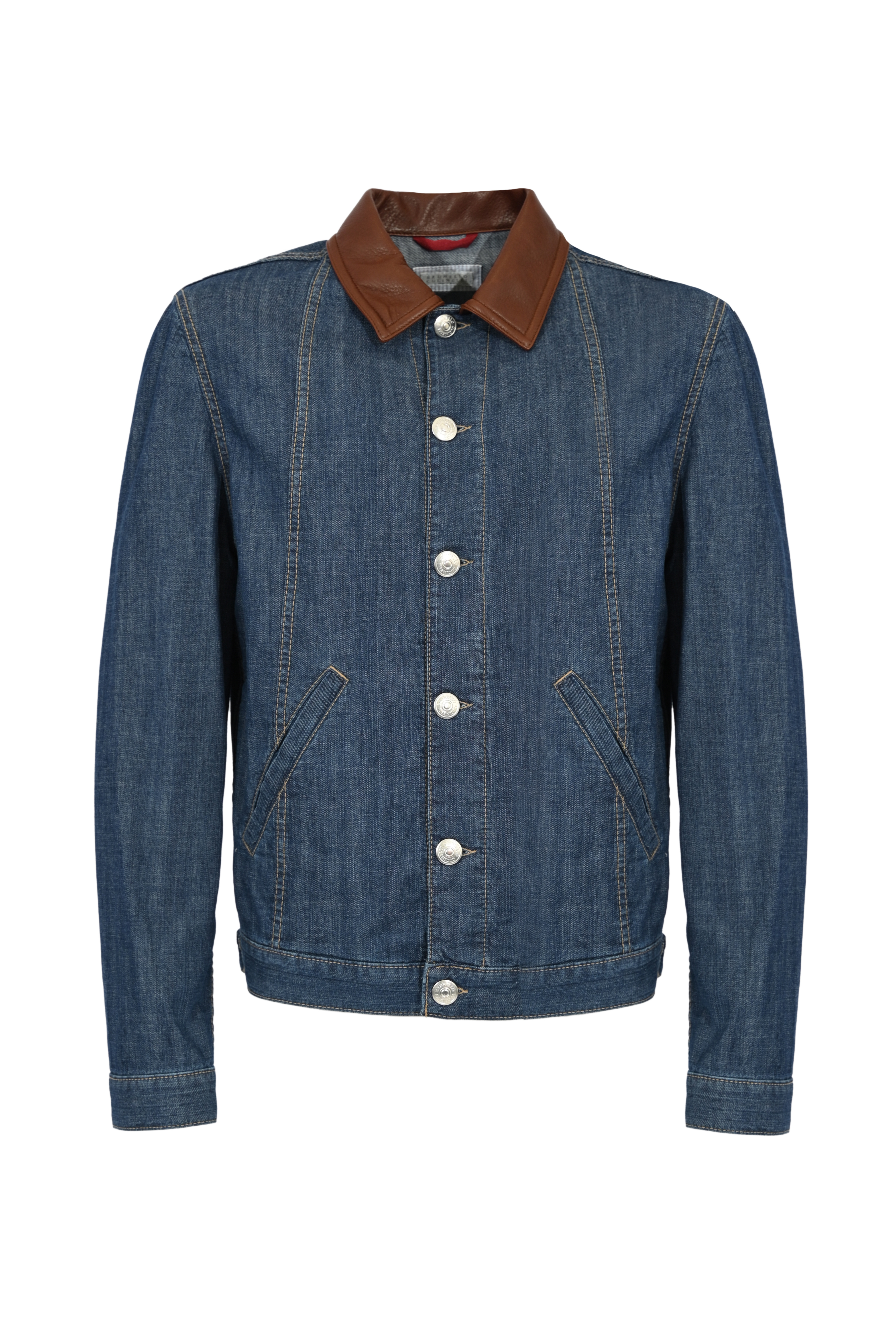 Giubbotto da uomo in denim con collo in pelle, Brunello Cucinelli, modello bomber