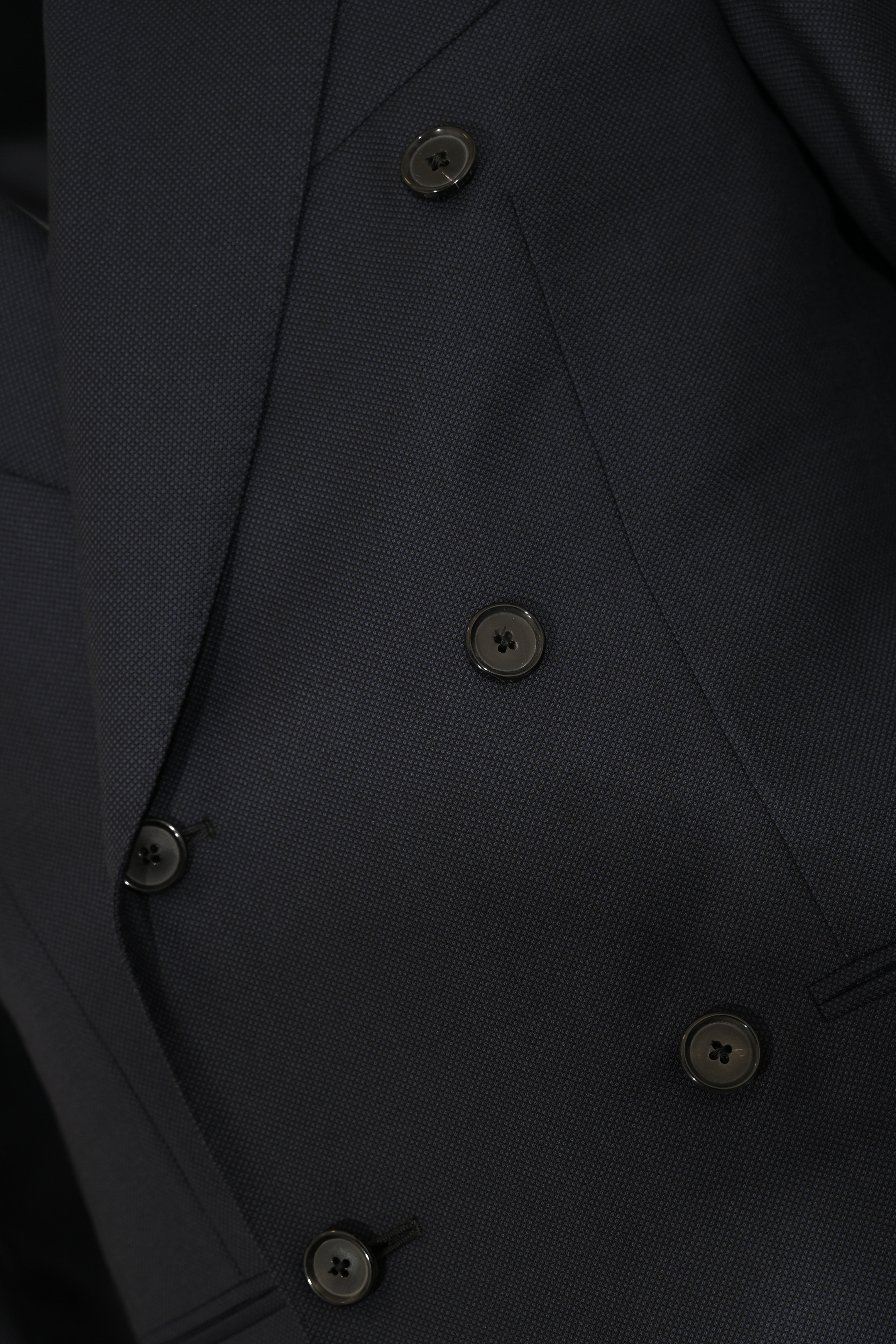 - Chiusura: Giacca doppiopetto a sei bottoni, pantalone con chiusura a zip e bottone