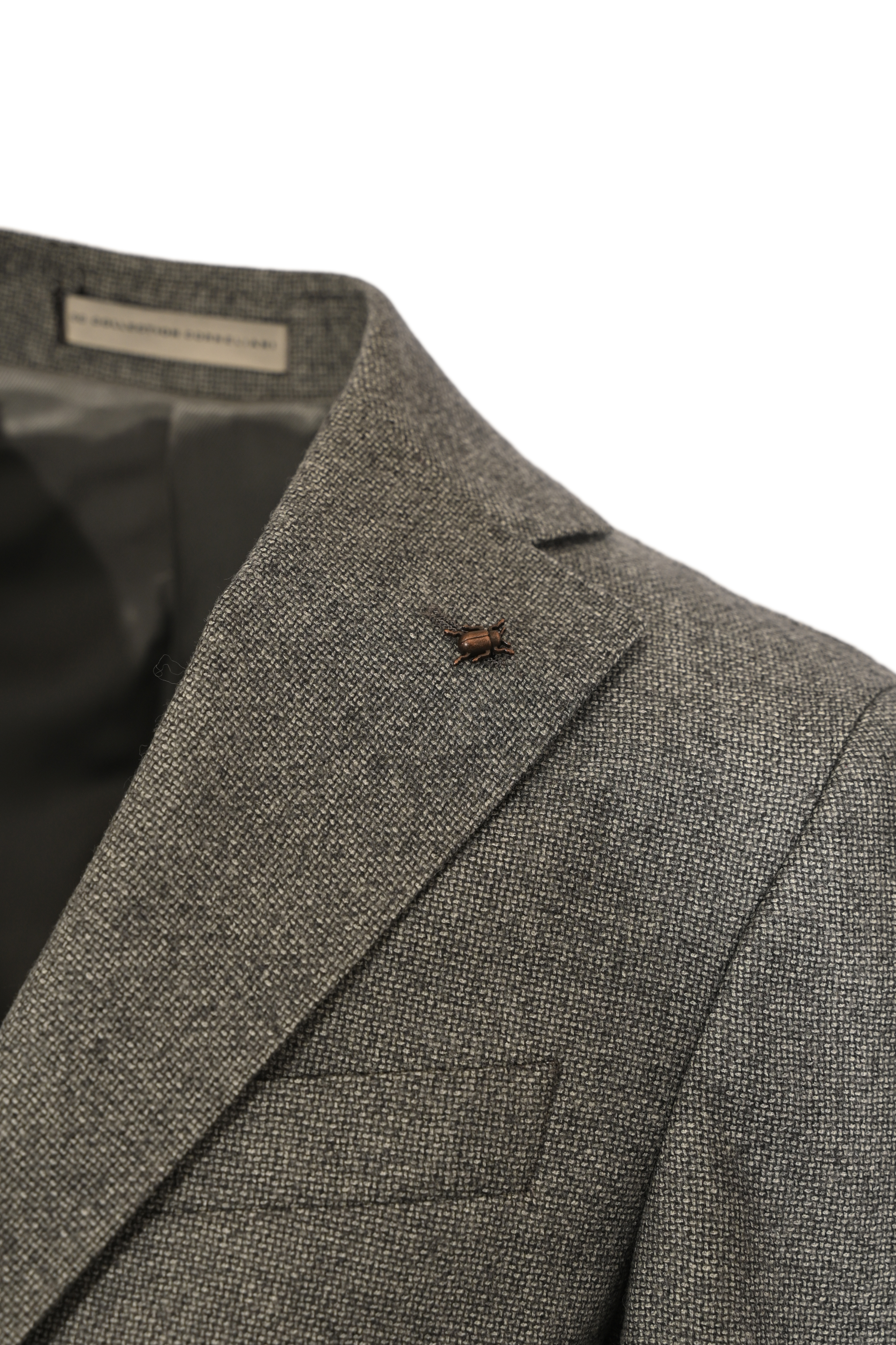 - Dettagli: Spilla decorativa metallica sul revers, cuciture sartoriali, spacchi posteriori doppi