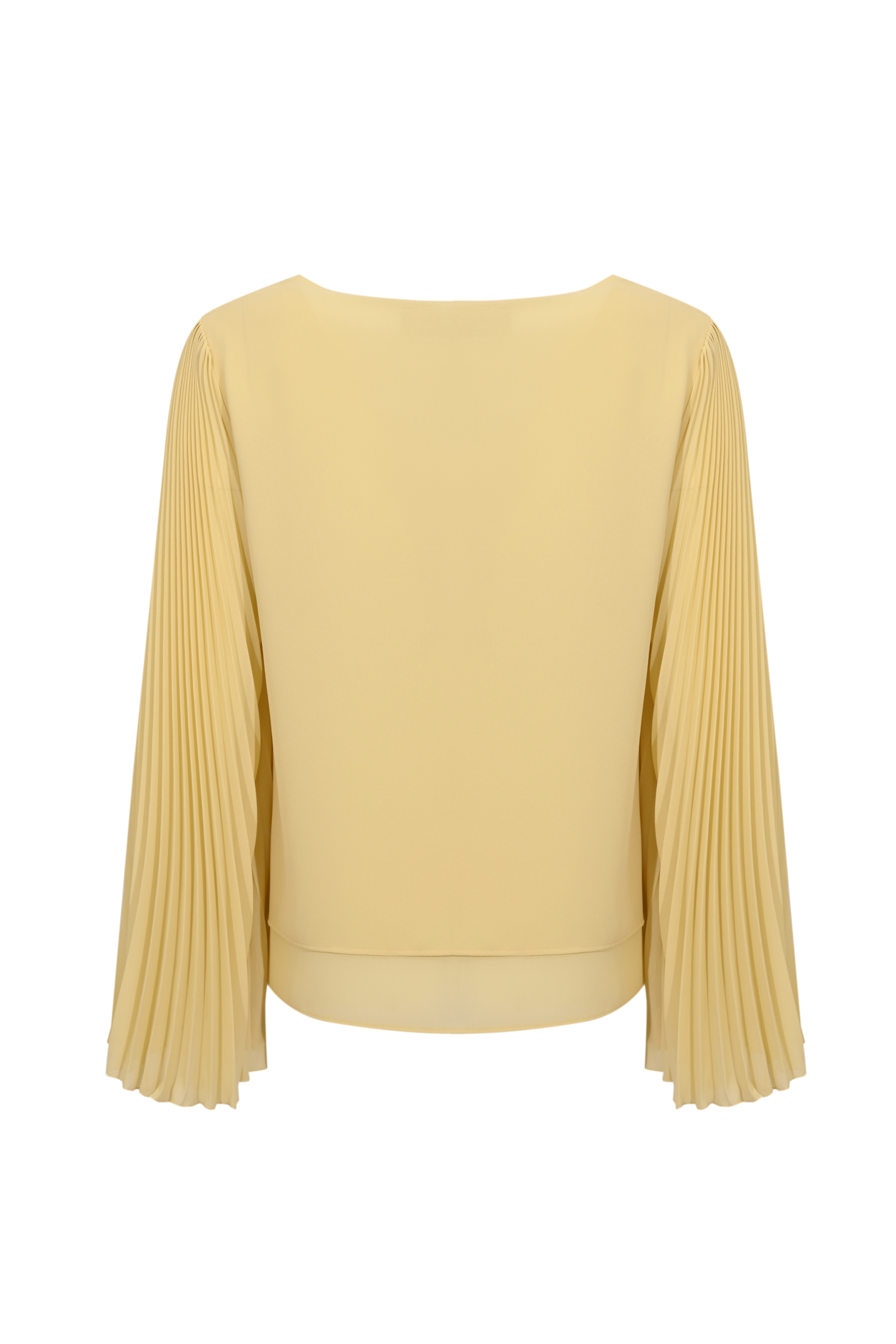 - Dettagli: design a tunica con fondo leggermente arrotondato e maniche ampie plissettate