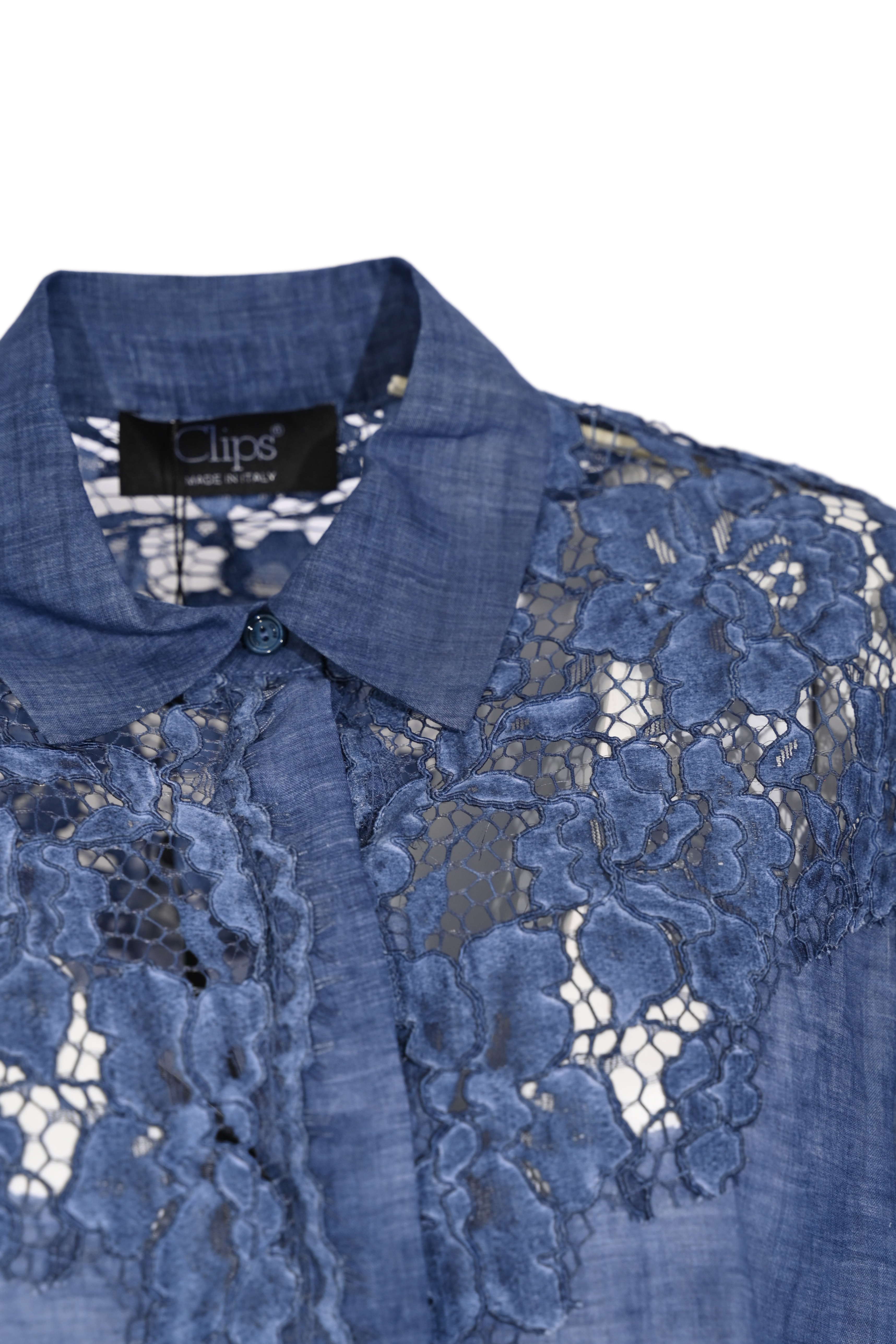 - Dettagli: inserti in pizzo floreale traforato su spalle e parte superiore, effetto semi trasparente