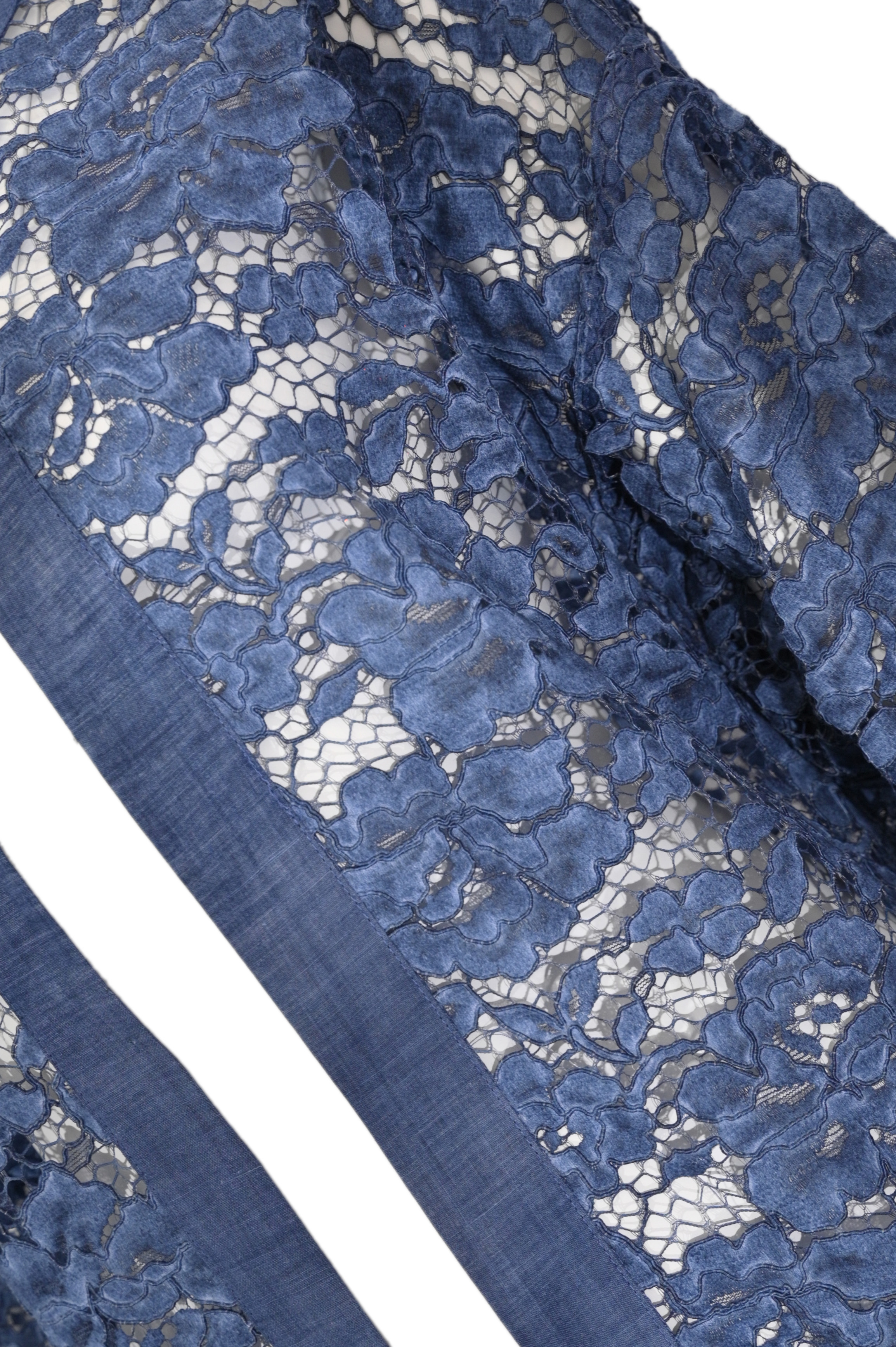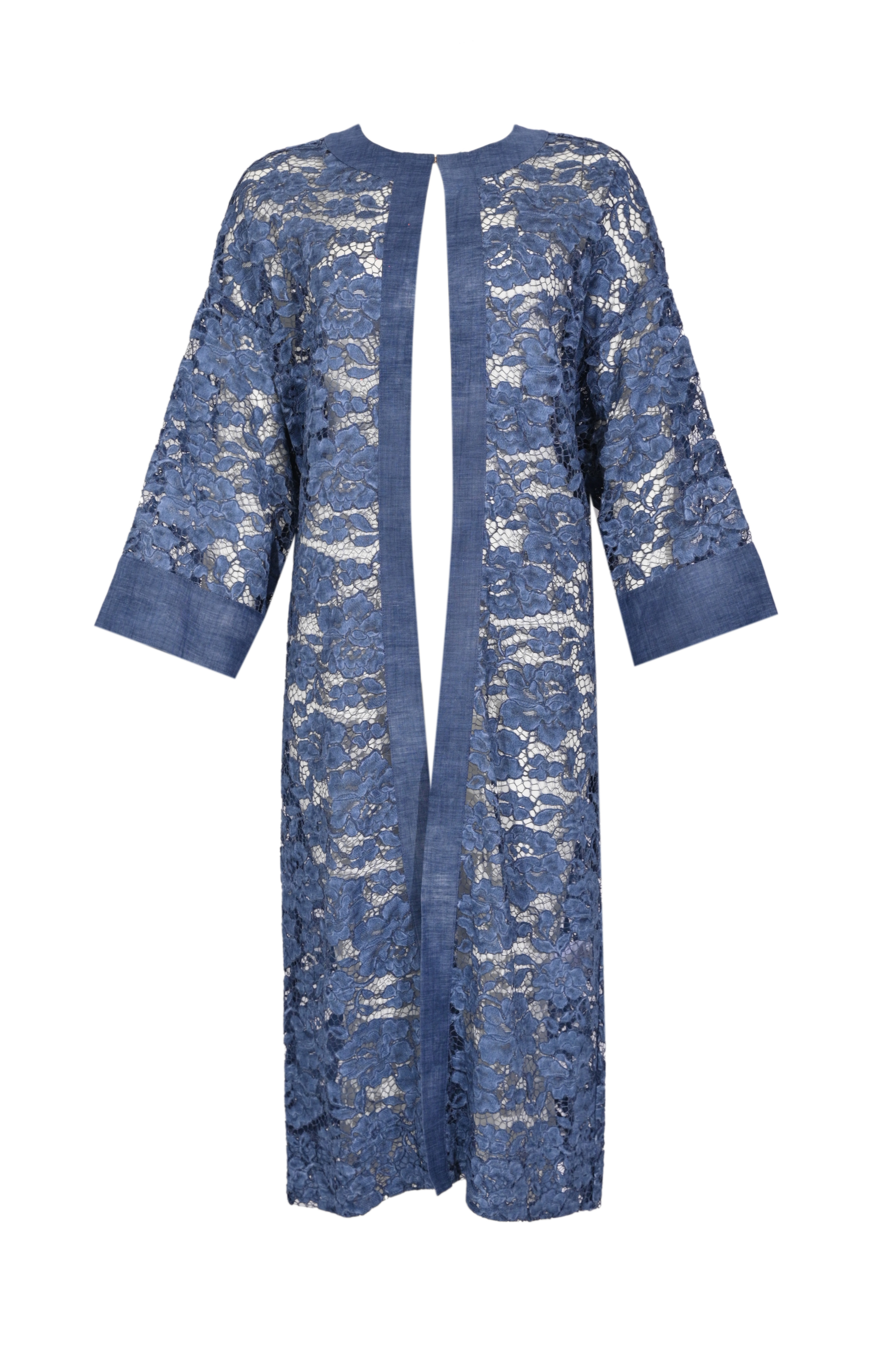 - Dettagli: lavorazione in pizzo floreale trasparente con disegno materico, profili e bordi rifiniti in tessuto a contrasto effetto lino, apertura frontale lineare che dona fluidità al capo, lunghezza midi versatile, struttura leggera ideale per sovrapposizioni, perfetto come capospalla elegante per cerimonia o outfit estivi sofisticati