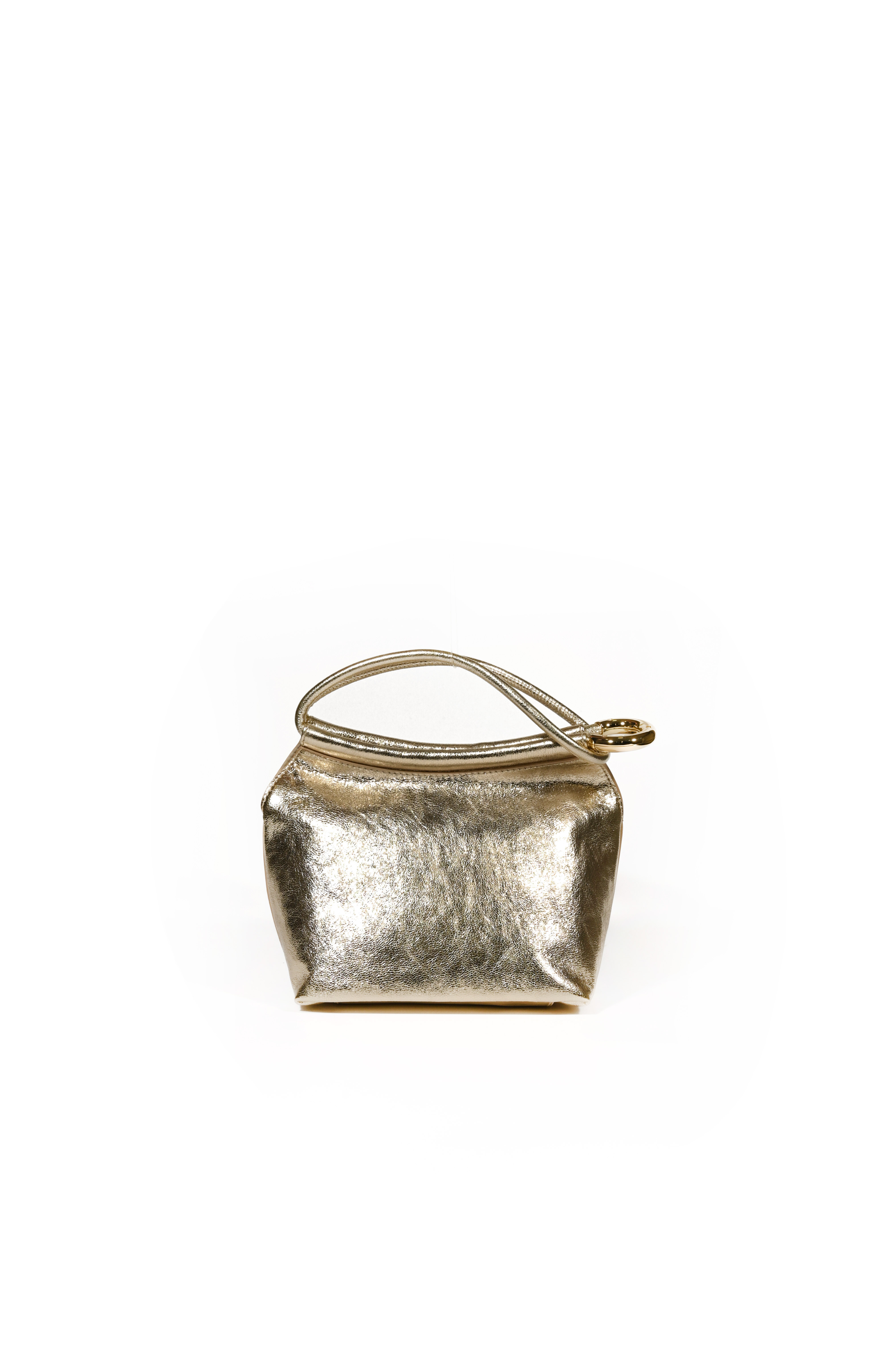 Borsa a mano Finn Pouch Small in pelle Pale gold