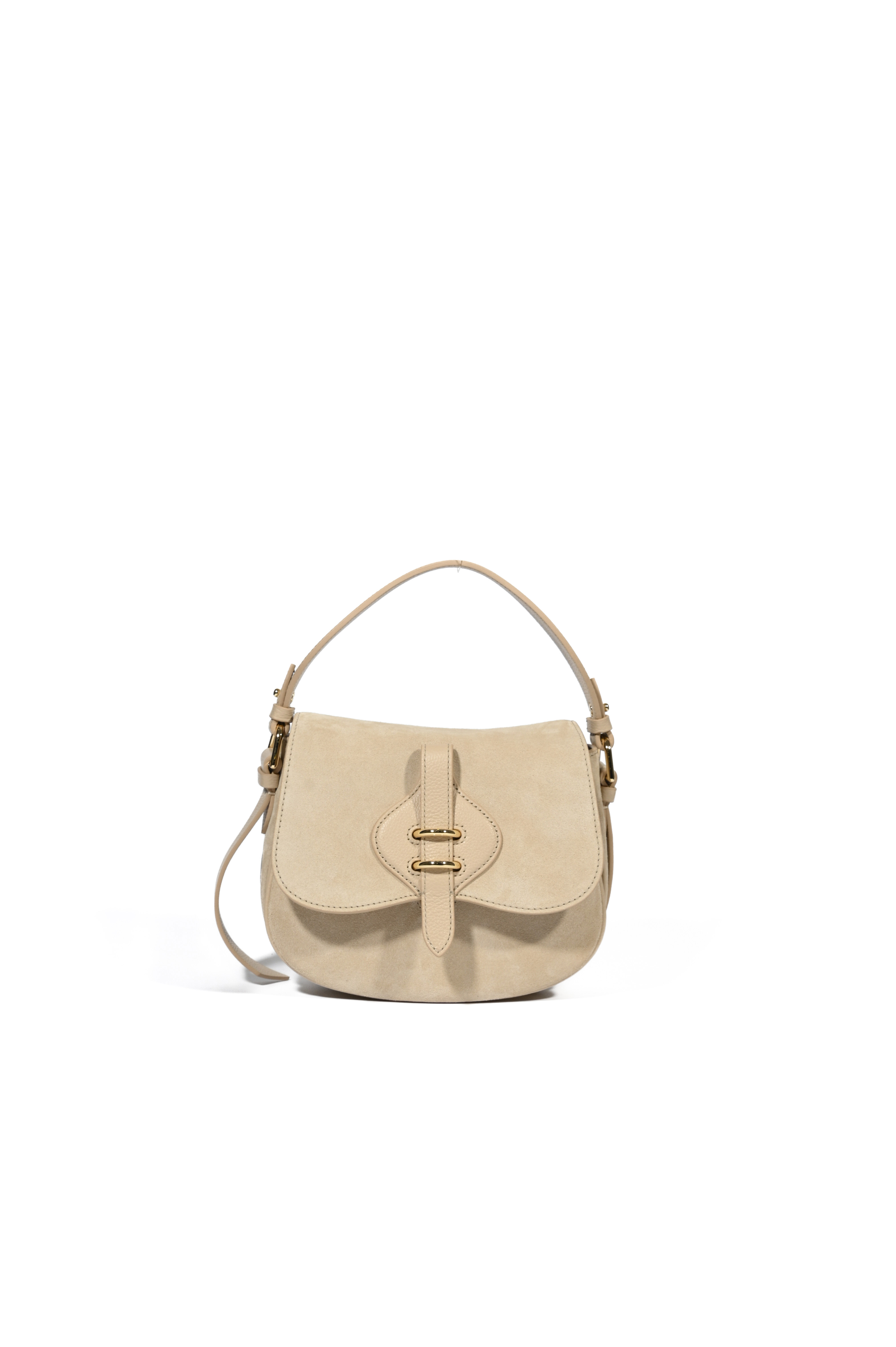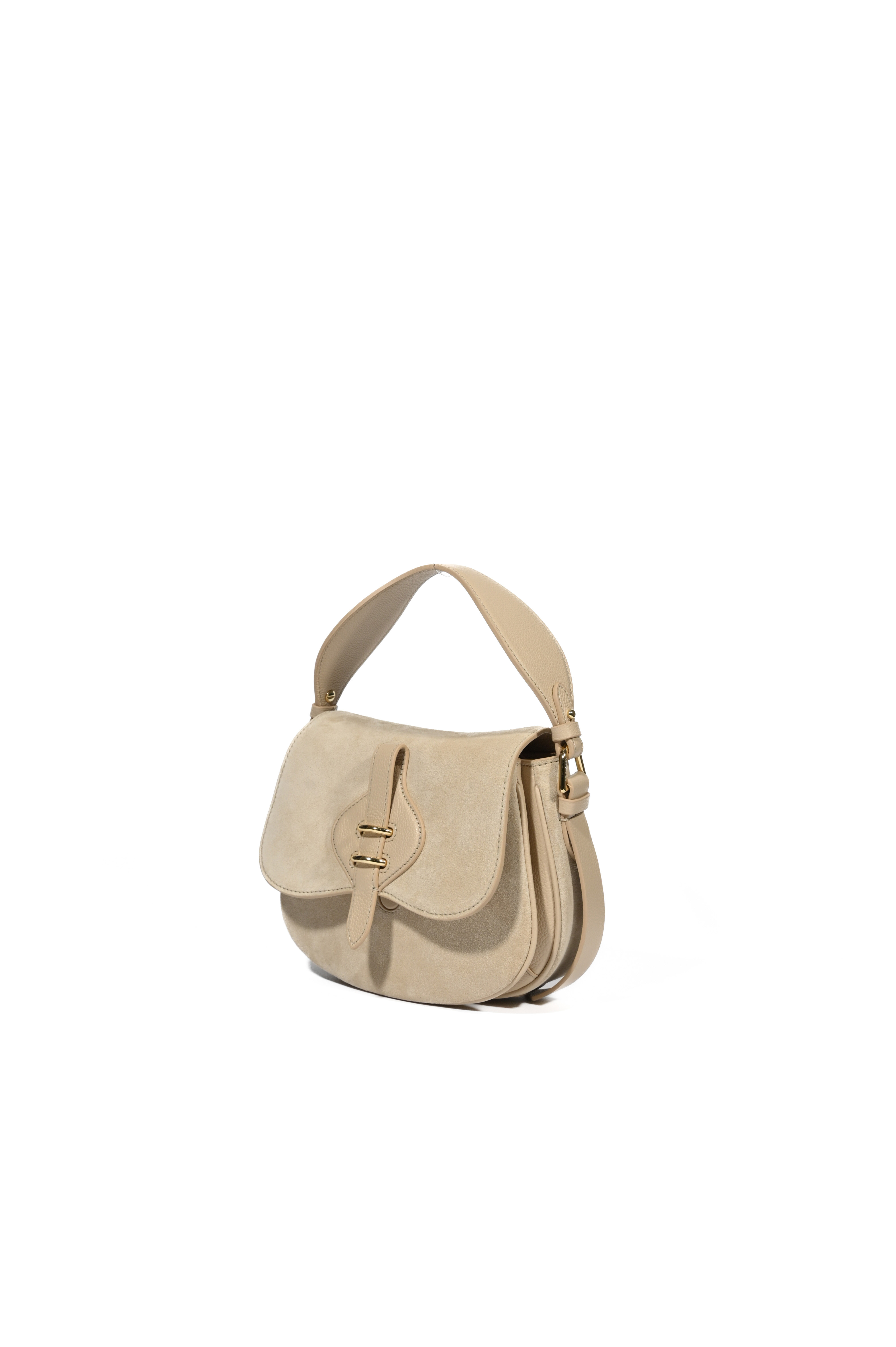 Borsa a spalla Mavery Small in suede Sandshell