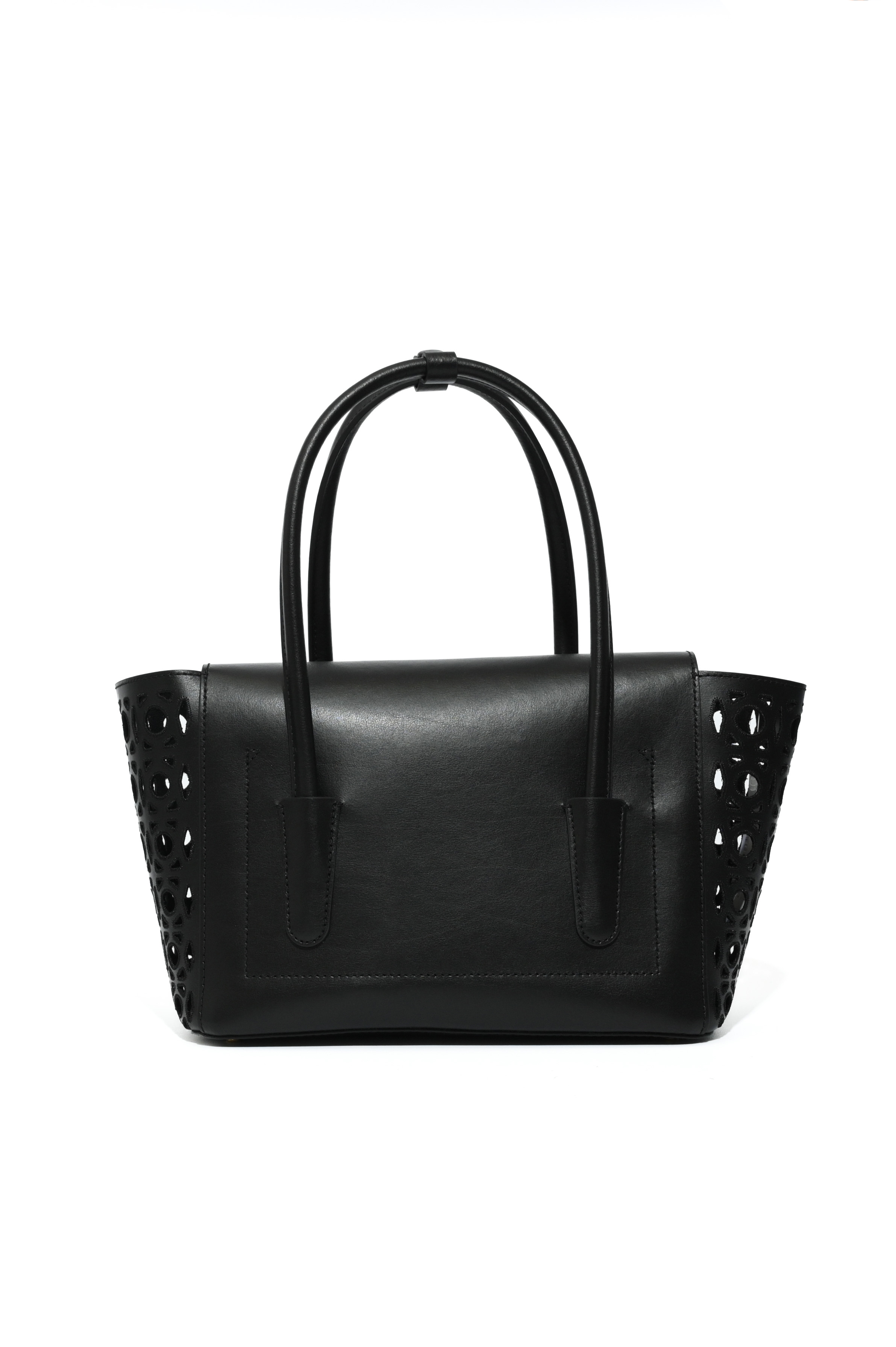 Borsa Beat Double Monogram Medium in pelle traforata Nero